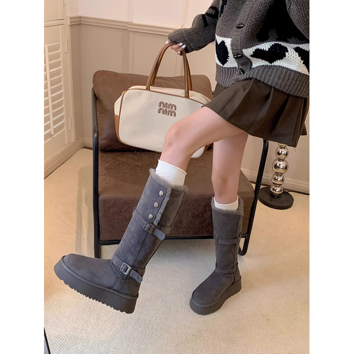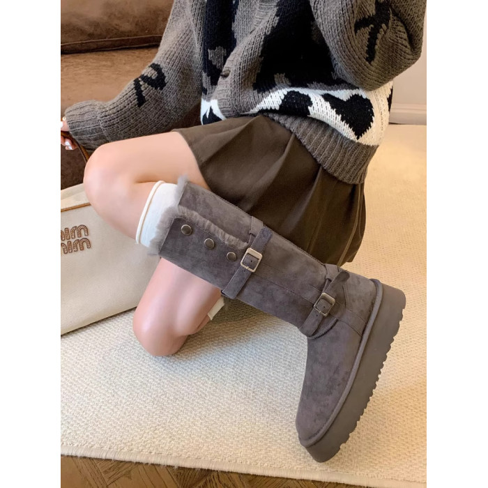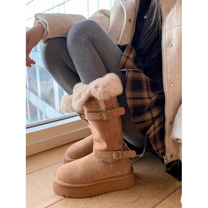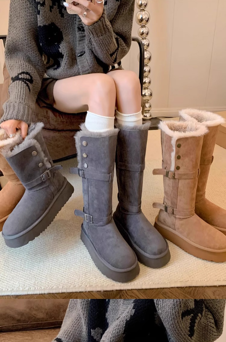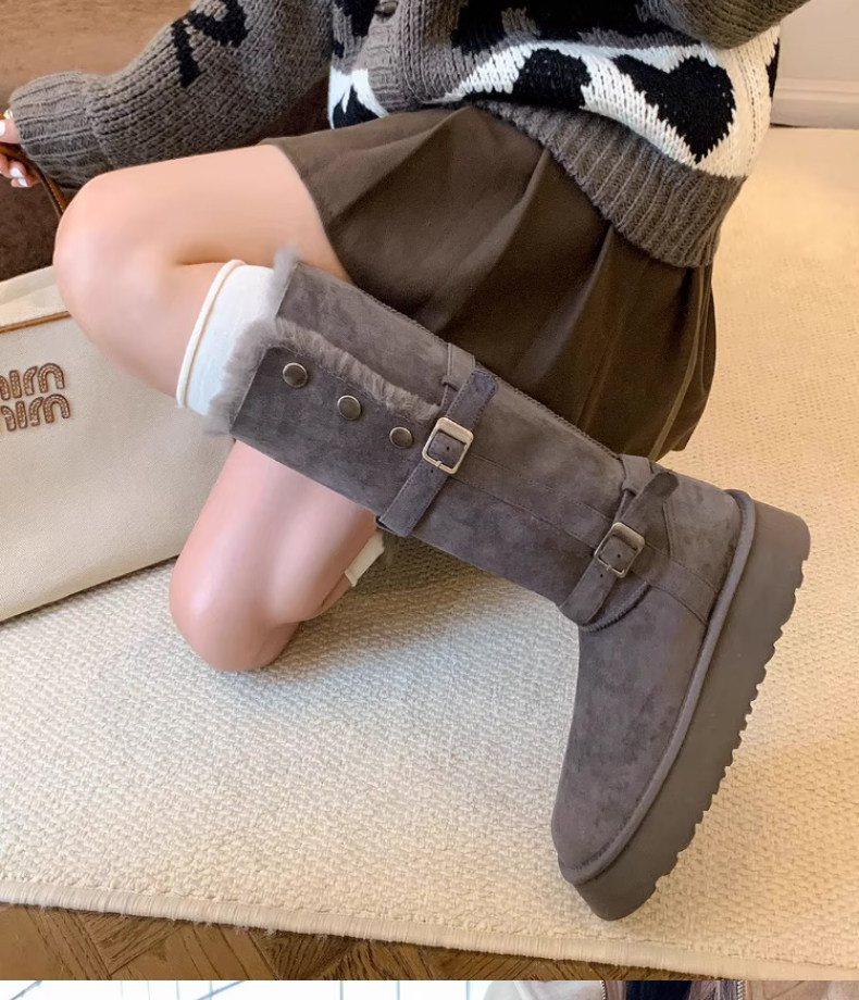 高筒加絨加厚雪地靴女款2026冬季新款厚底保暖中長筒雪地棉靴棉鞋