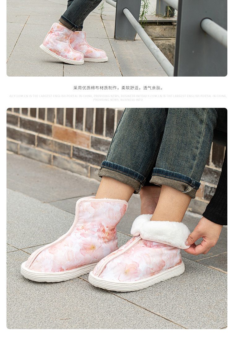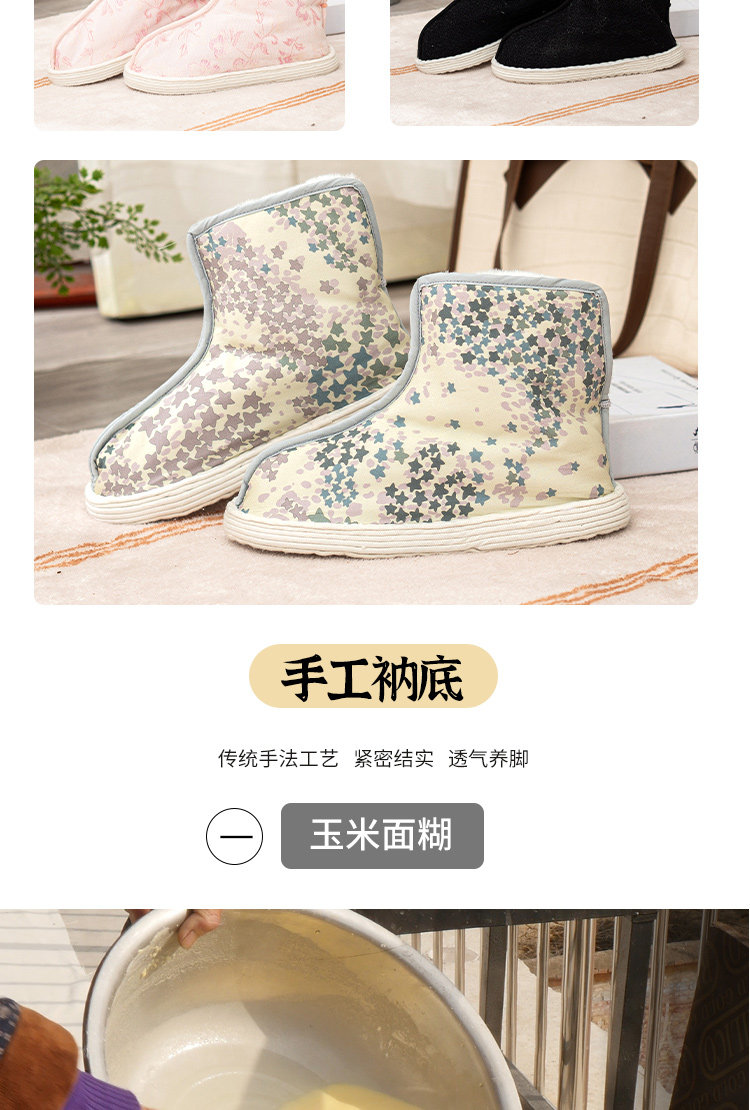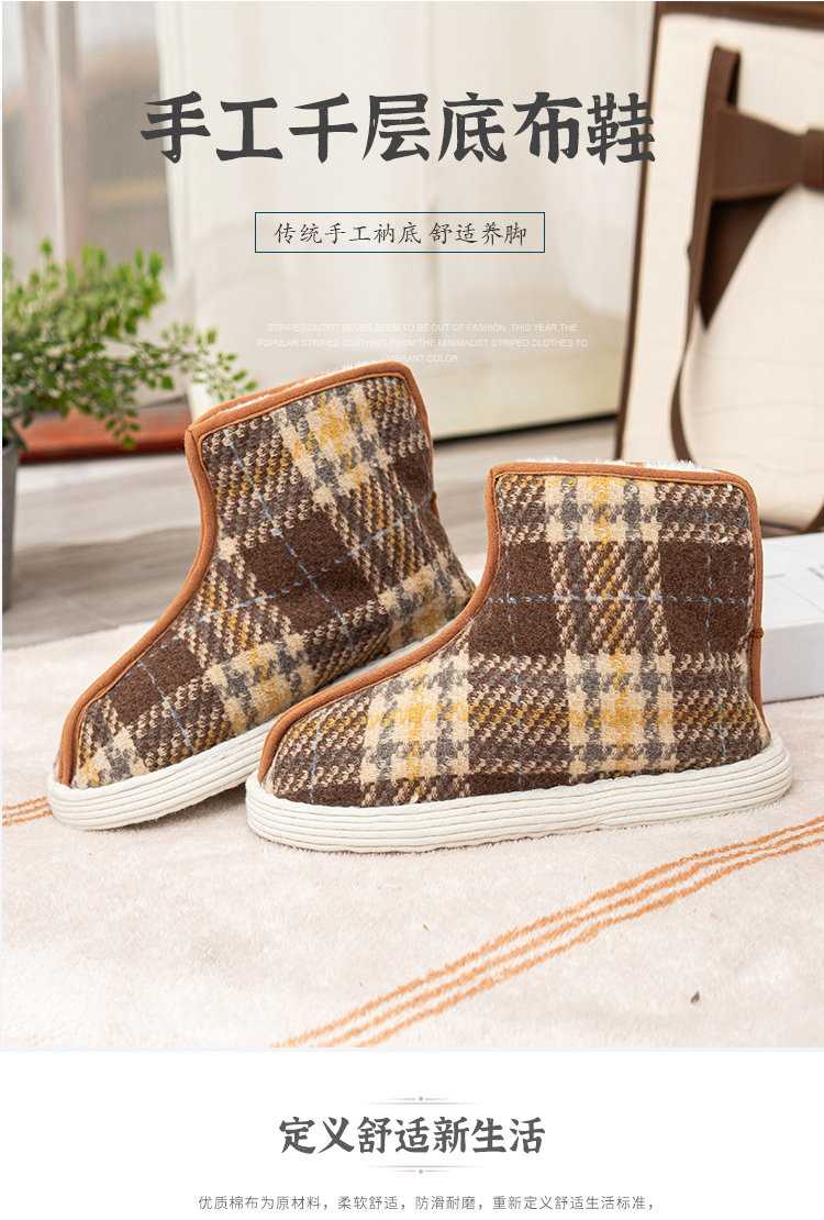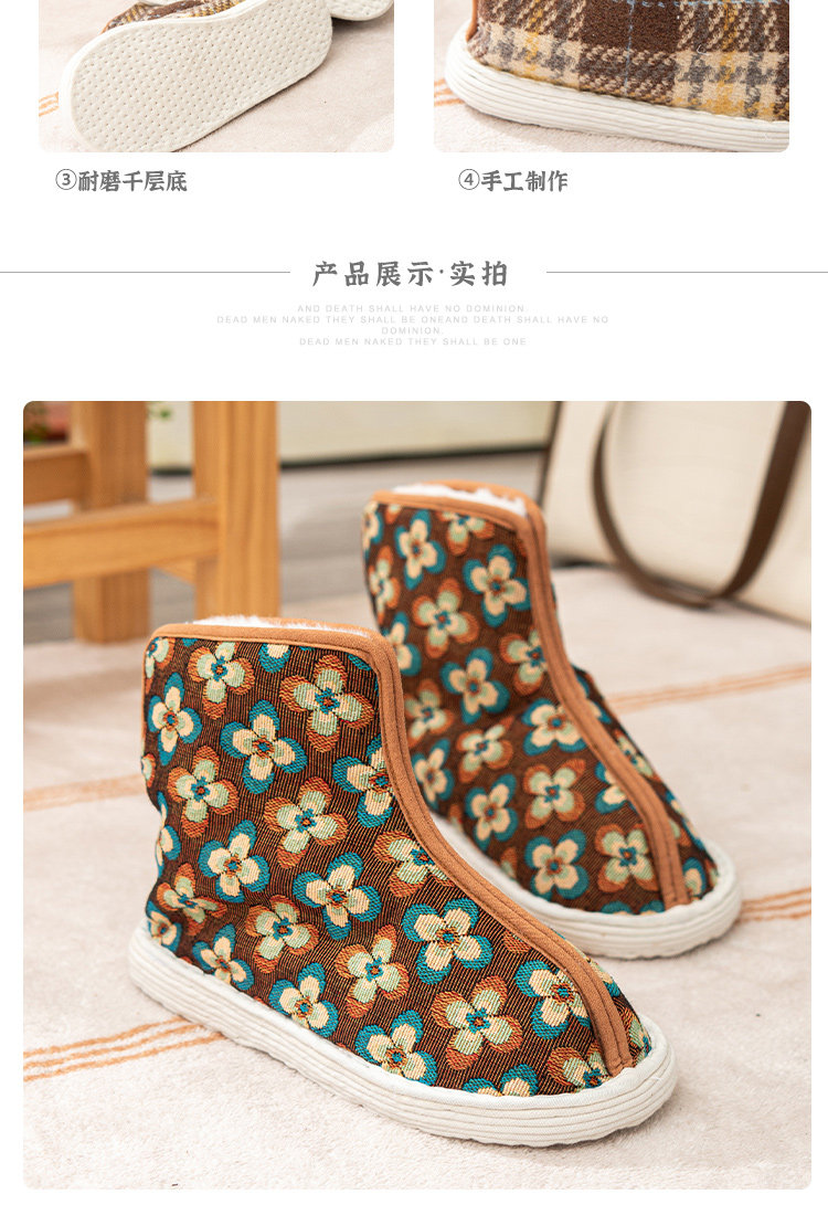 老北京手工布鞋女冬季加厚保暖媽媽棉花鞋軟底時尚棉靴高幫雪地靴