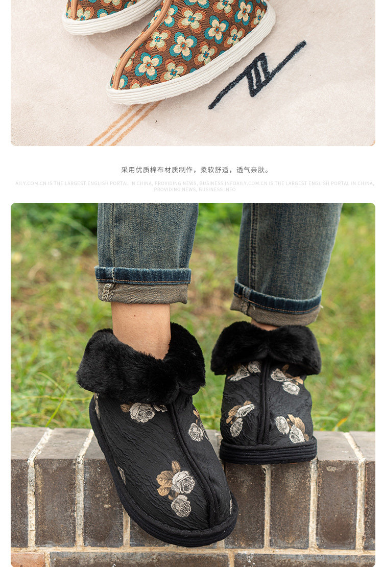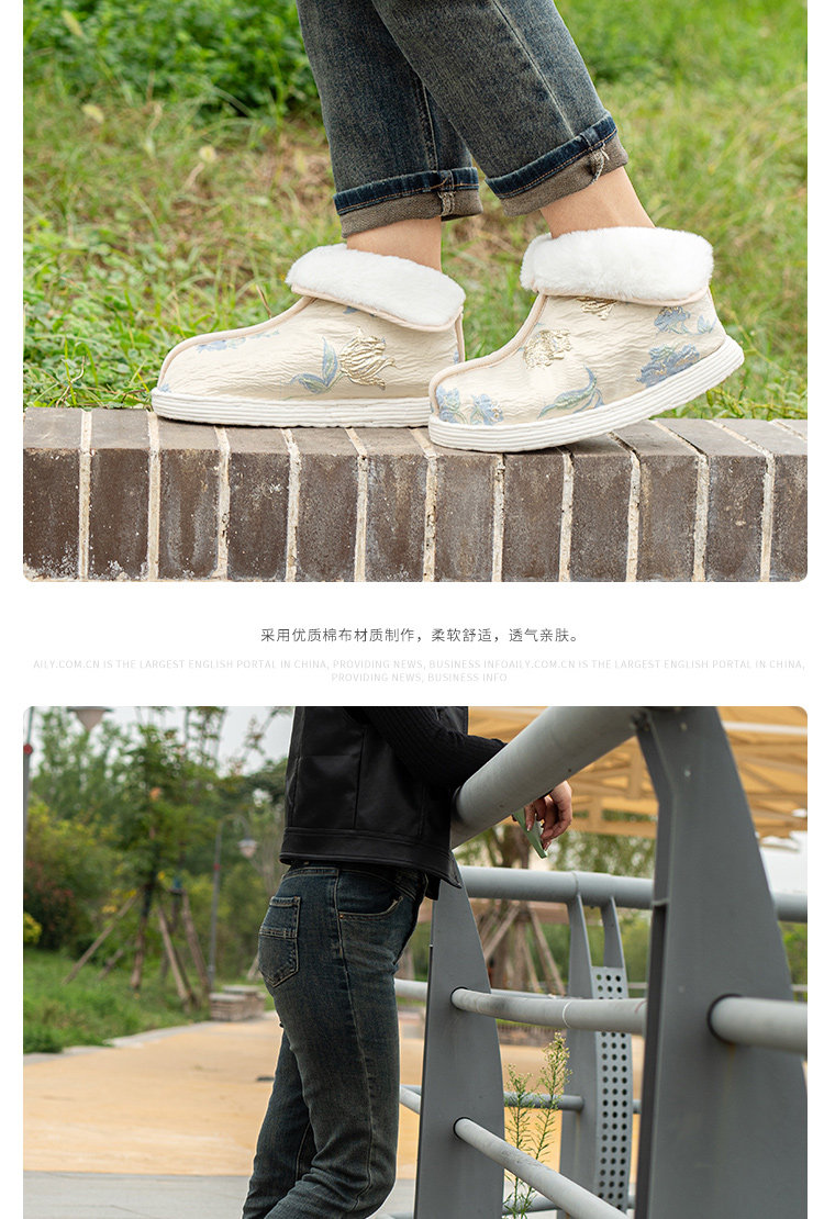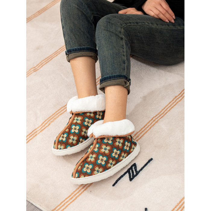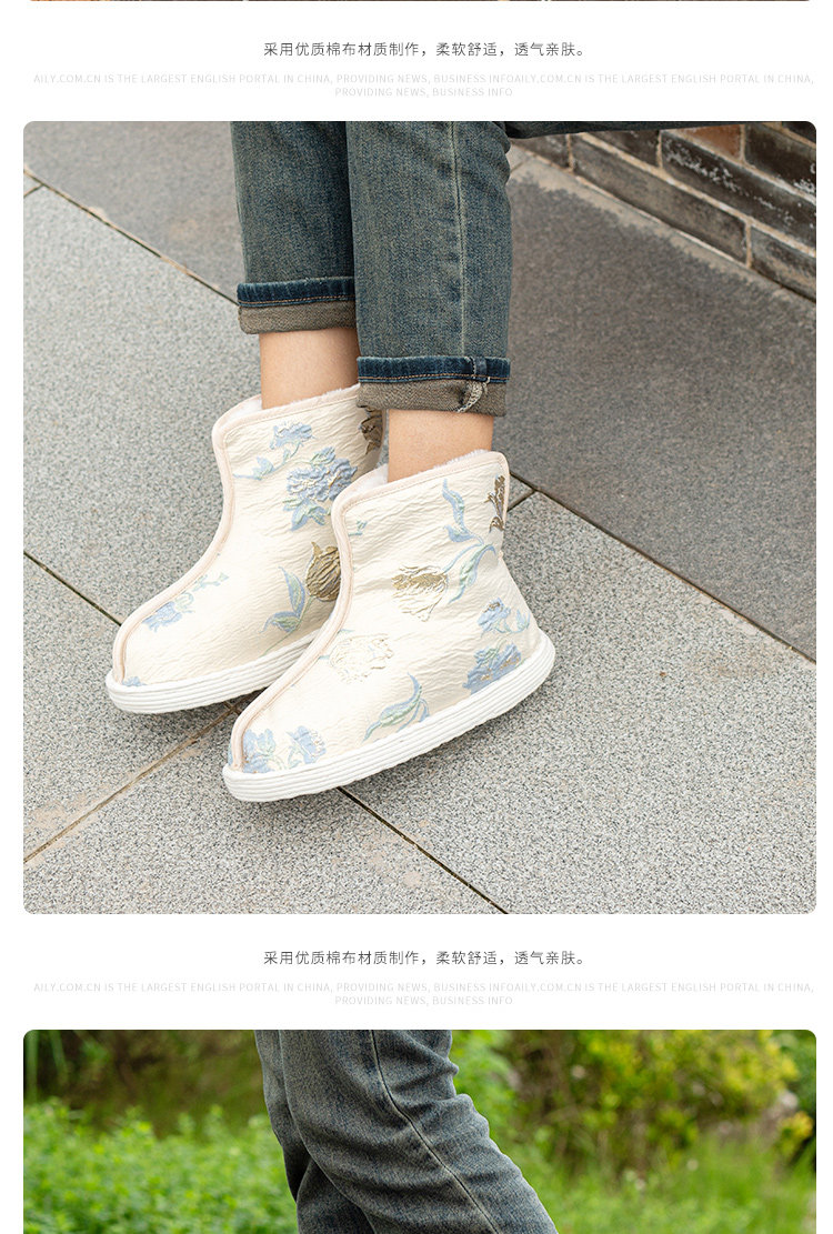 老北京手工布鞋女冬季加厚保暖媽媽棉花鞋軟底時尚棉靴高幫雪地靴