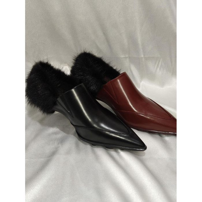 正版真皮-4cm高2026秋季新款氣質水貂毛小衆設計極簡尖頭百搭女鞋