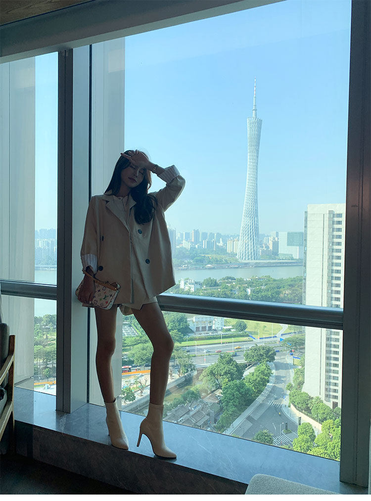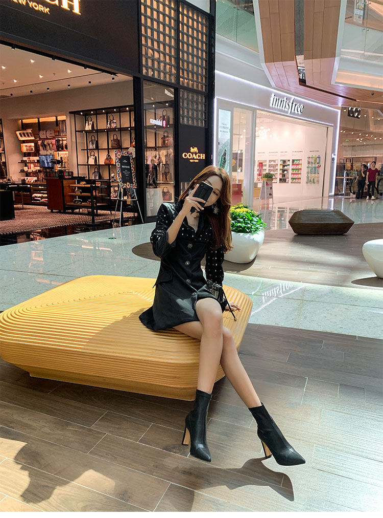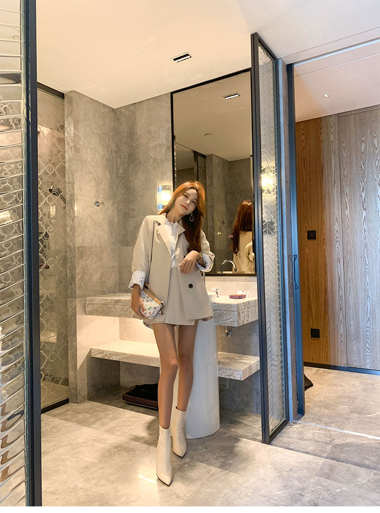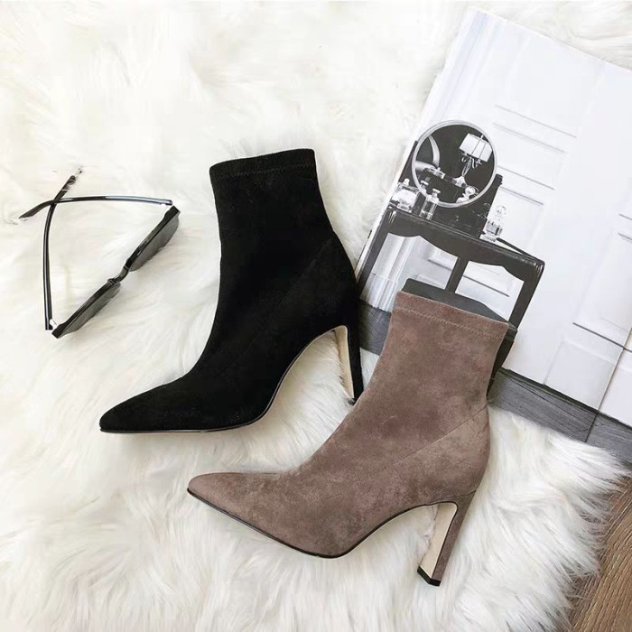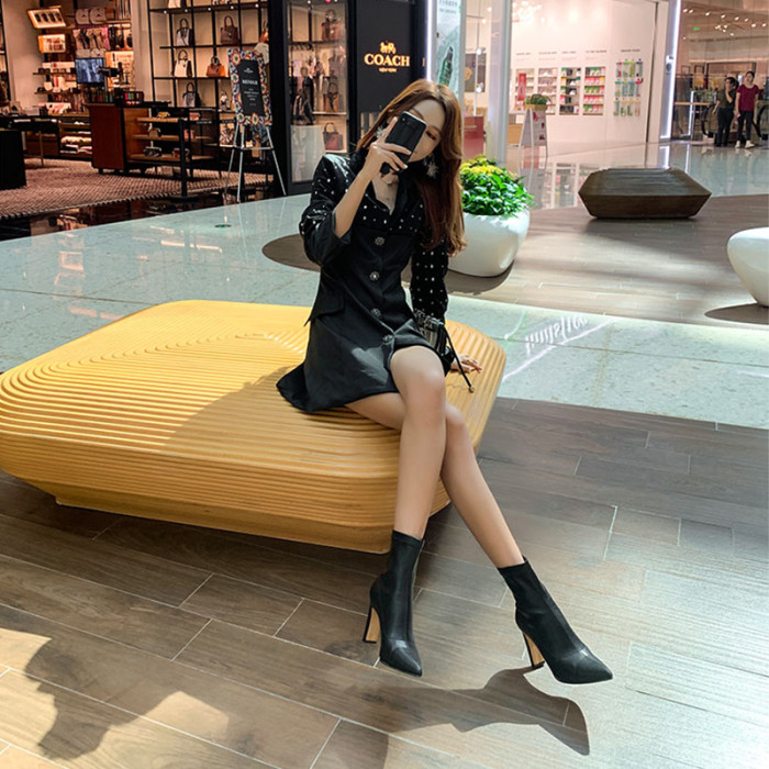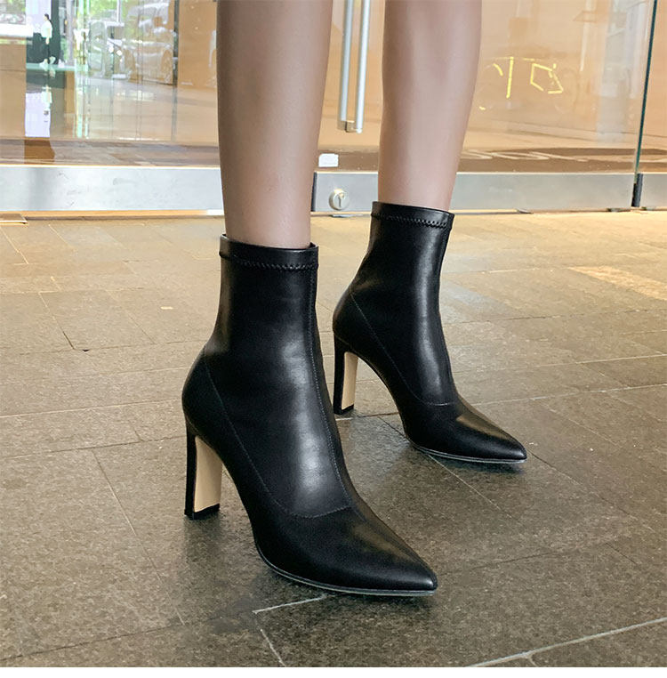 白色短靴女高跟粗跟尖頭2025新款秋冬百搭皮面ins網紅瘦瘦靴裸靴