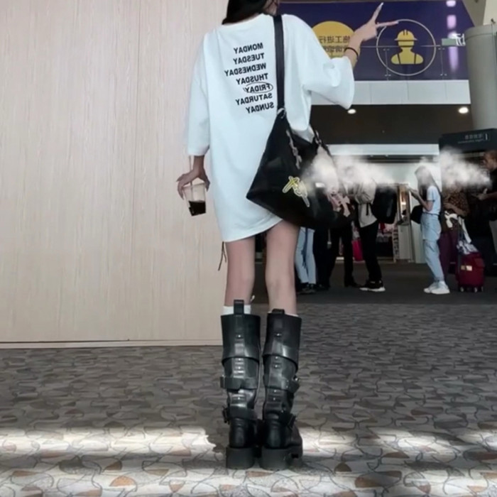 牛皮版~男女款巴黎毒液馬丁靴暗黑翹頭騎士靴復古高筒大頭工裝靴