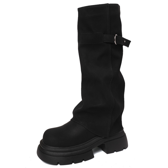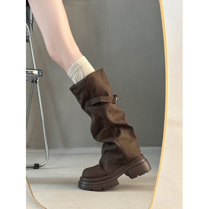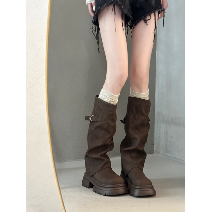 復古百搭美拉德褲琯靴女2025秋冬新款帥氣時尚氣質厚底炸街長筒靴