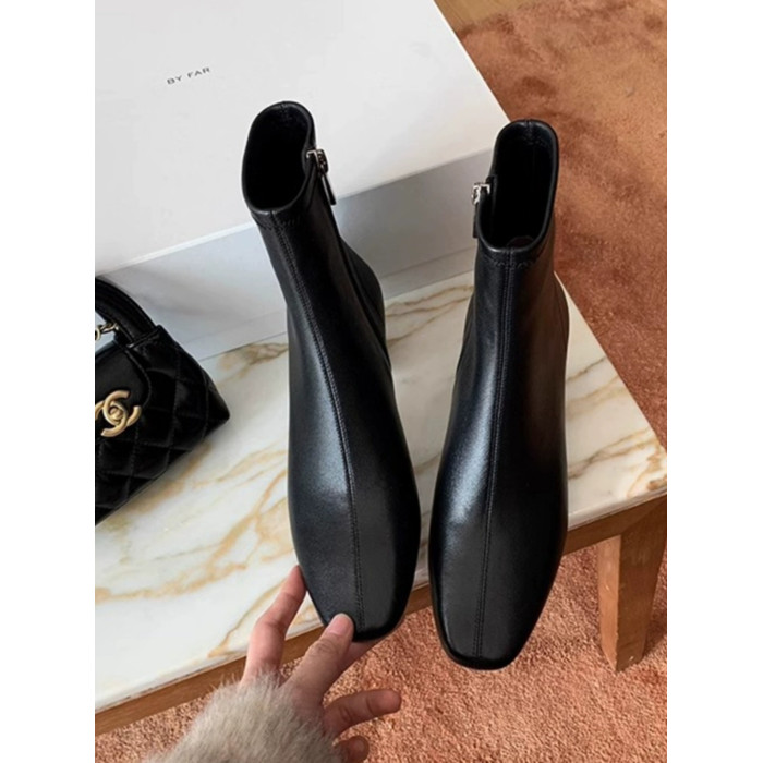 羊皮版~真皮馬丁靴女秋冬韓國百搭方頭瘦瘦靴包腿靴高跟短靴單靴