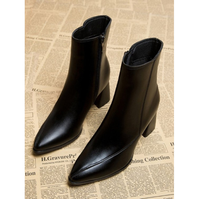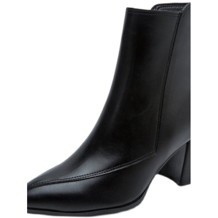 氣質小個子馬丁靴女潮2025秋季新款尖頭上班時尚粗跟瘦瘦靴設計感