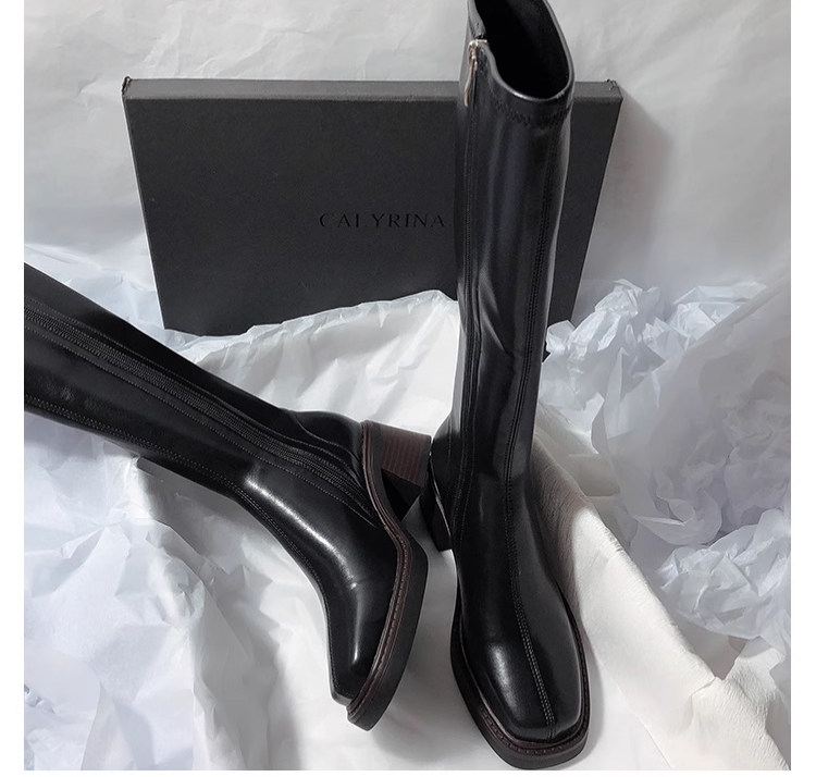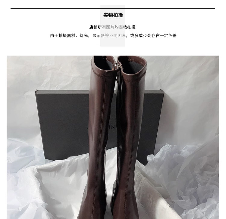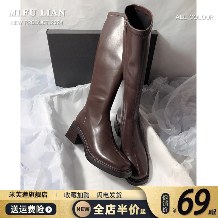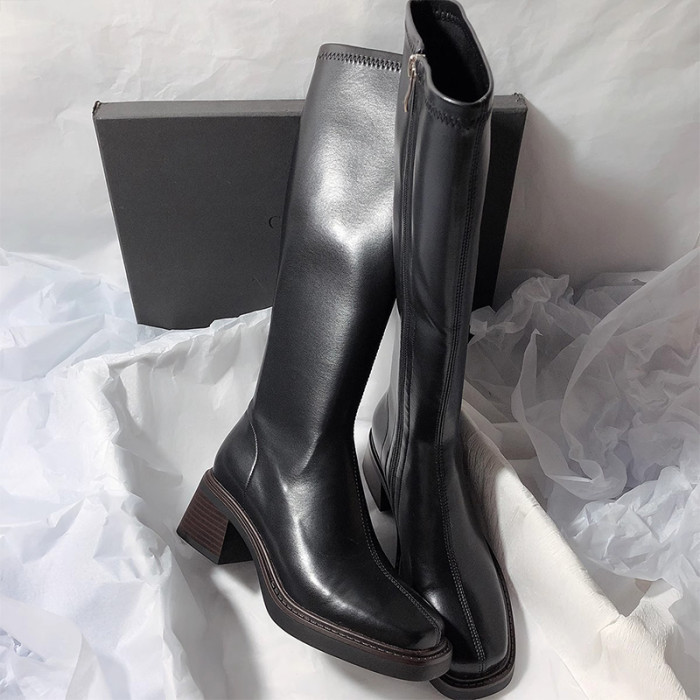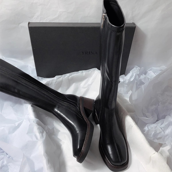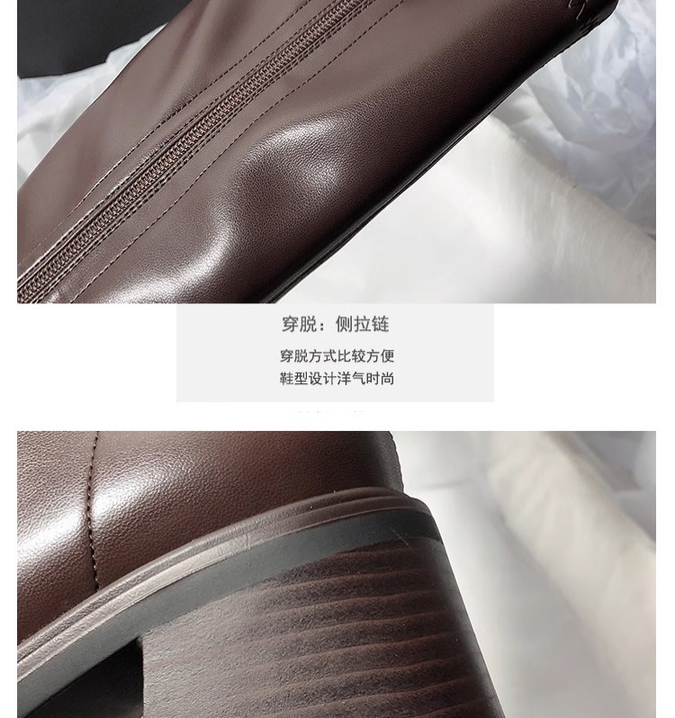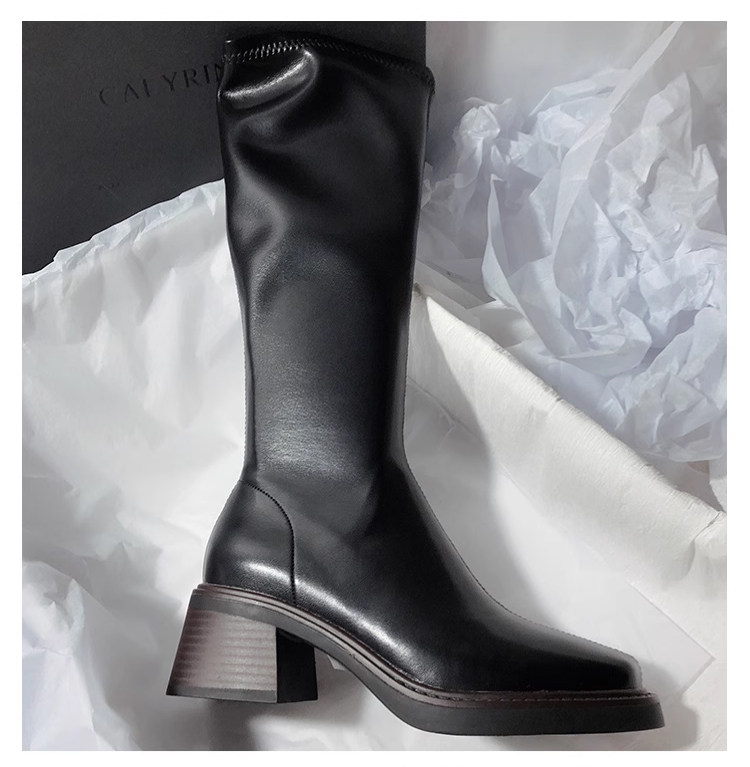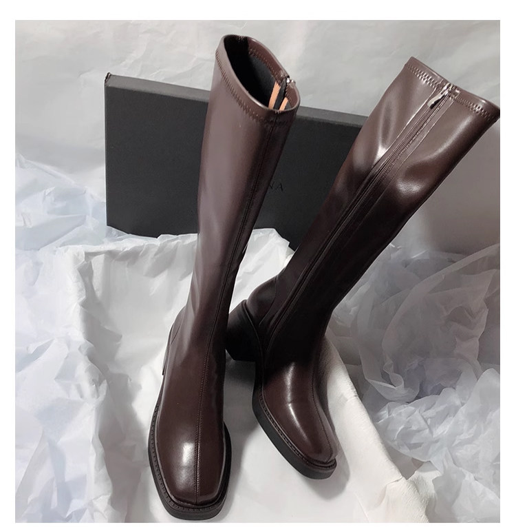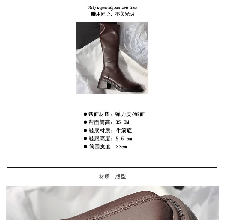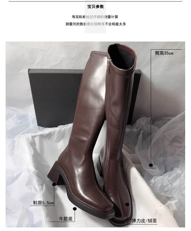 復古粗跟靴子女不過膝長筒靴2026秋季新款高筒V口側拉鍊顯瘦長靴