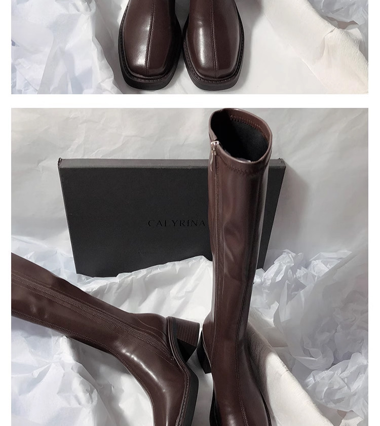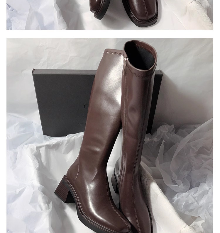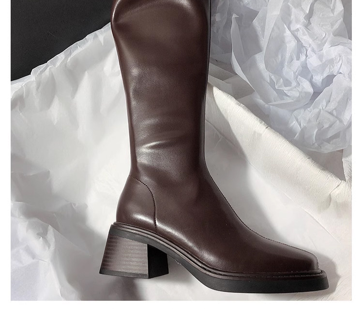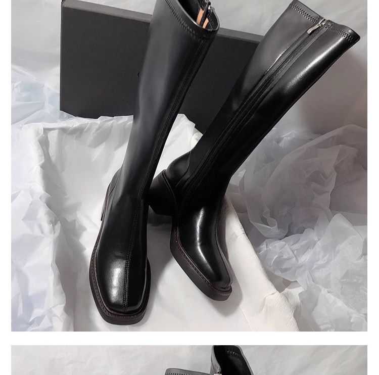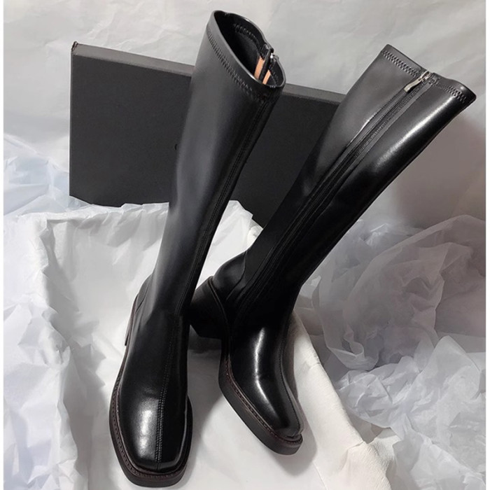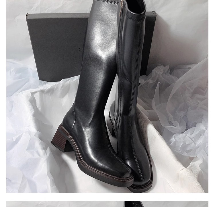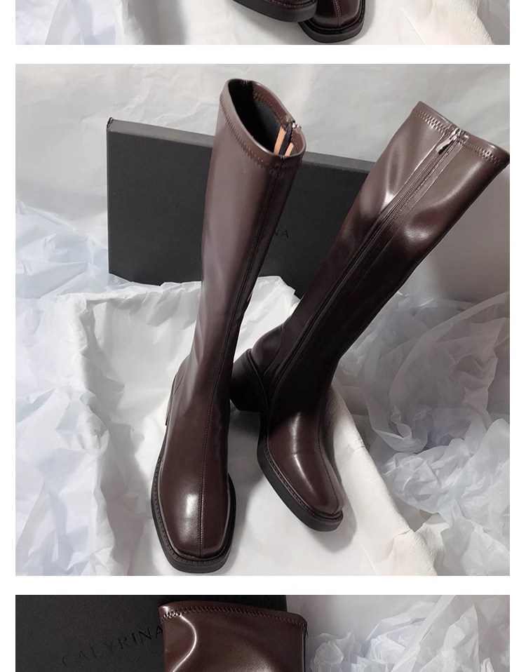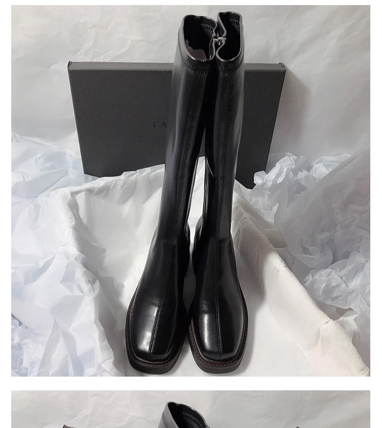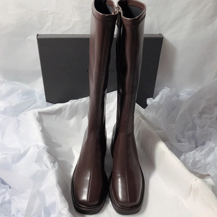 復古粗跟靴子女不過膝長筒靴2026秋季新款高筒V口側拉鍊顯瘦長靴
