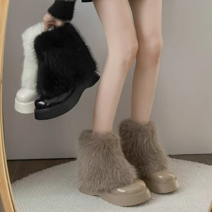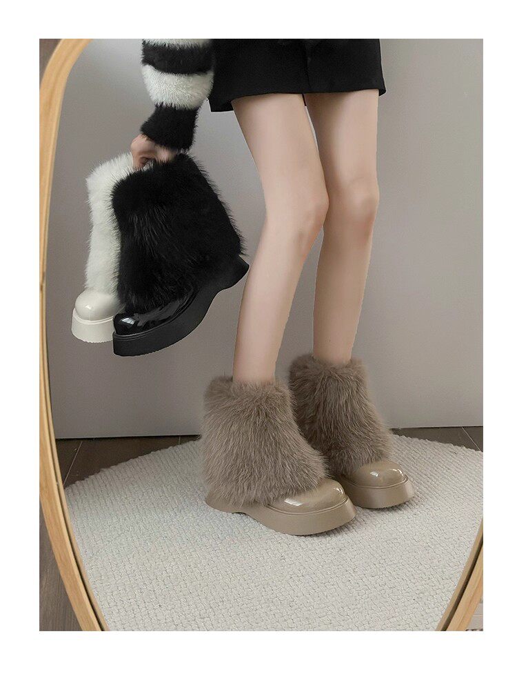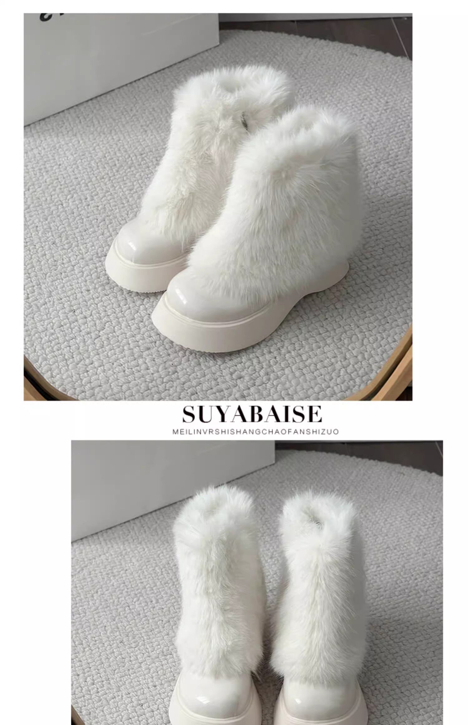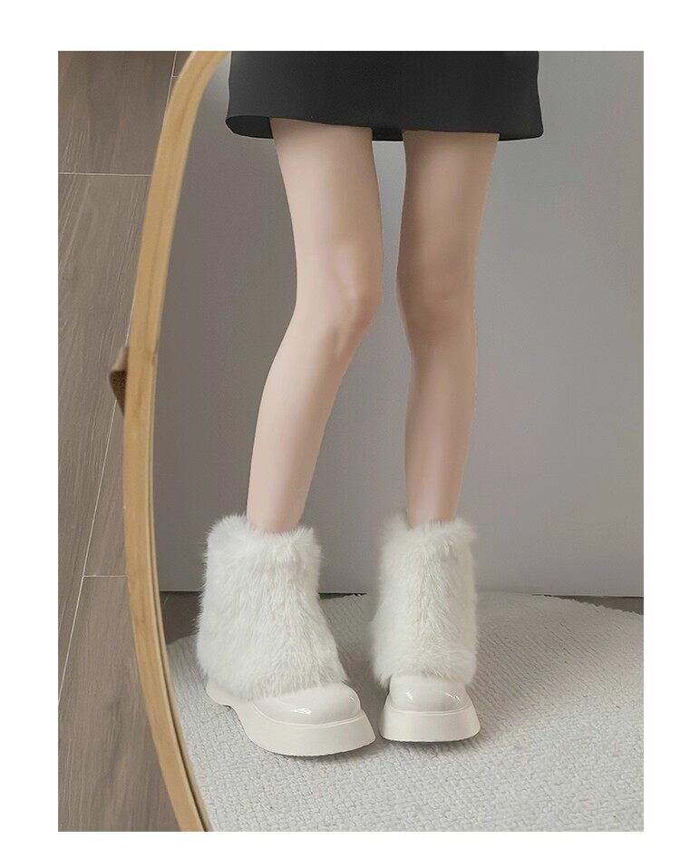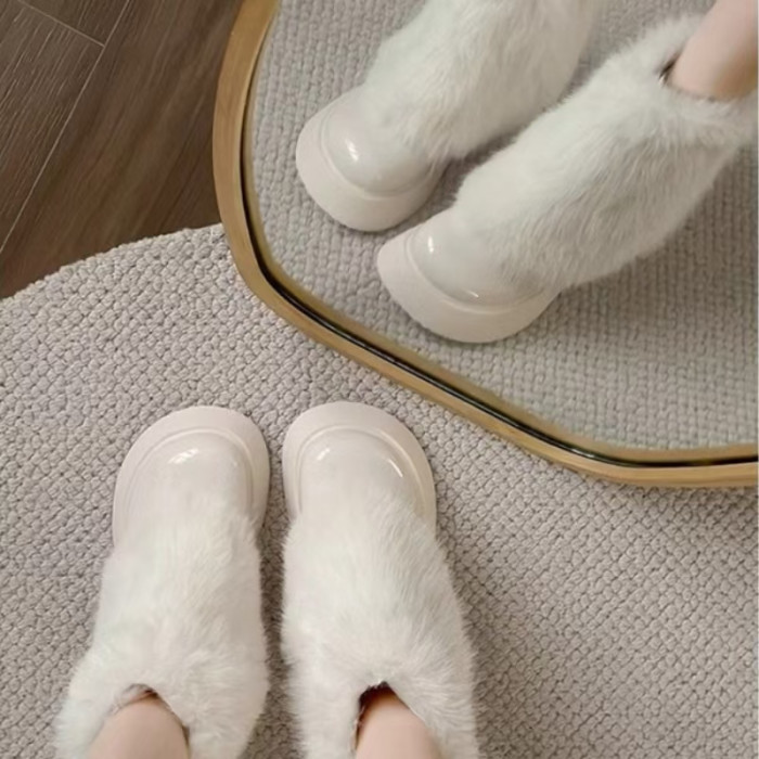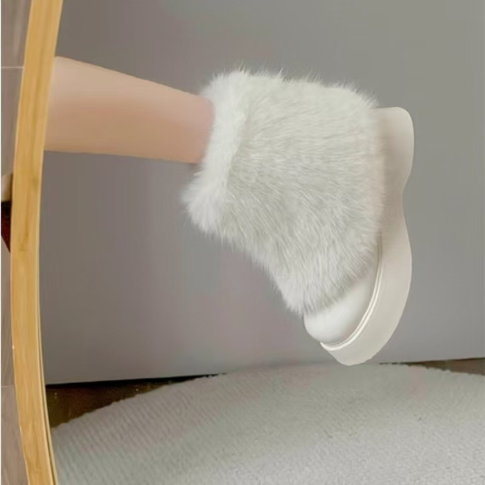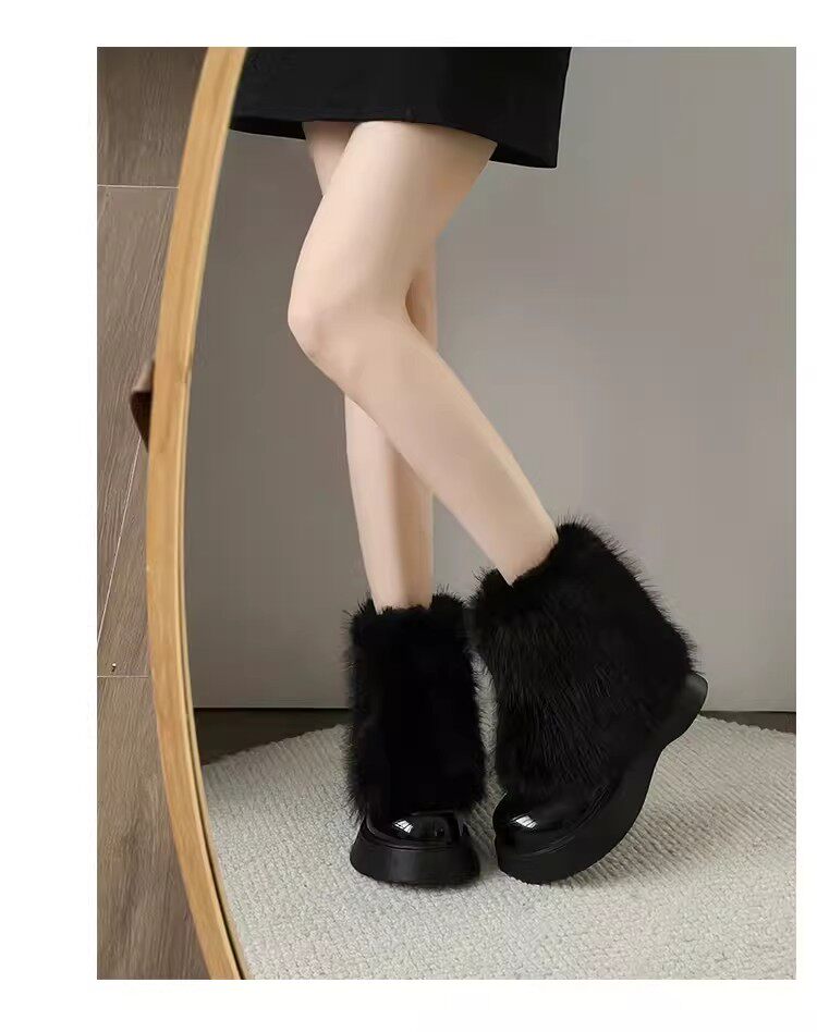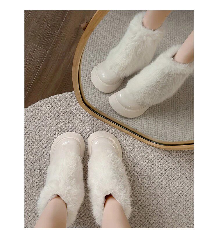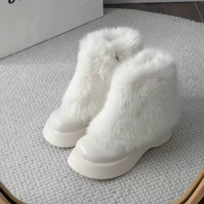 網紅爆款白色毛毛靴女2025年冬季新款時尚百搭雪地靴增高厚底短靴