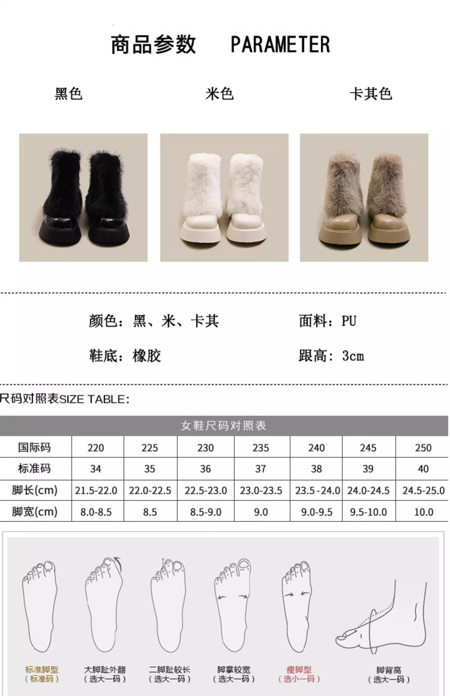 | 後跟高 | 中跟(3-5cm) |