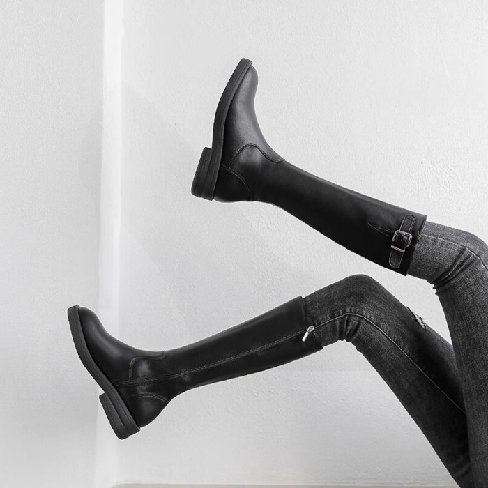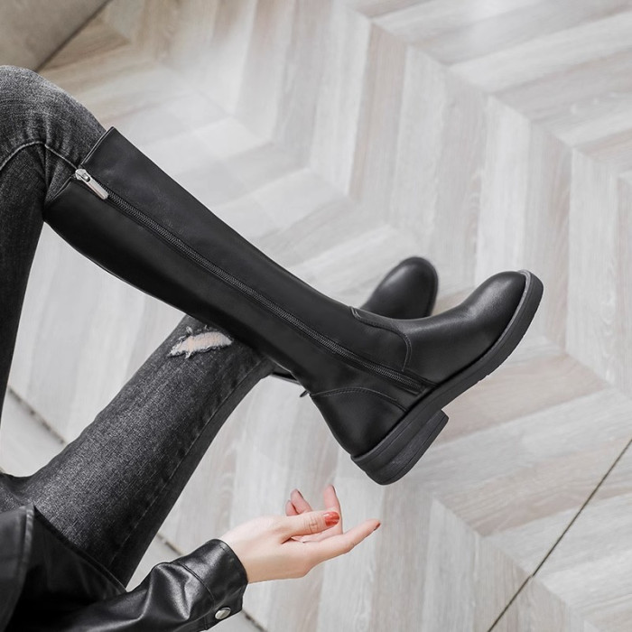 品牌長筒靴女2025秋冬新款高筒靴小個子不過膝長靴加絨騎士靴子女