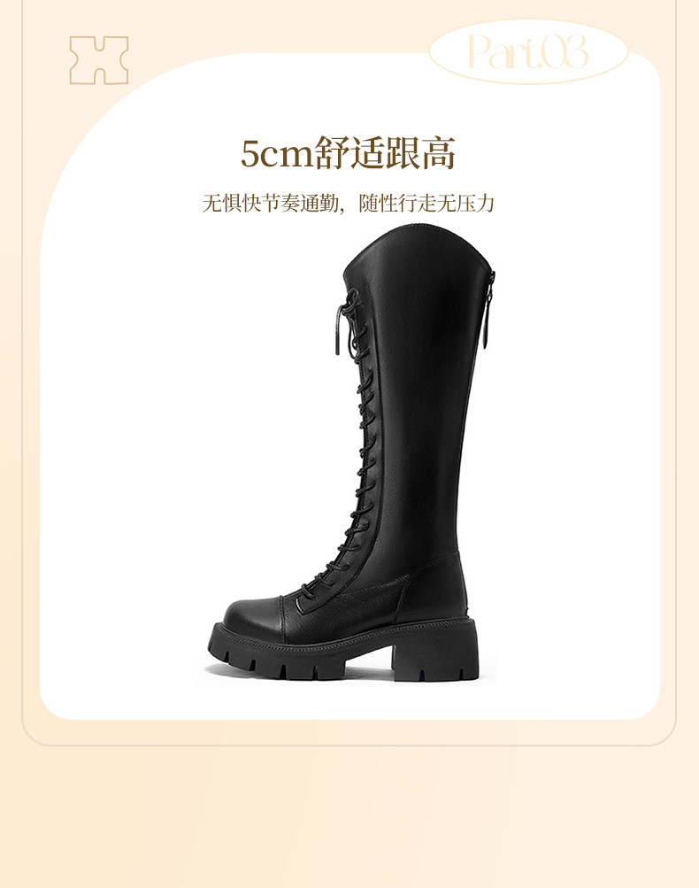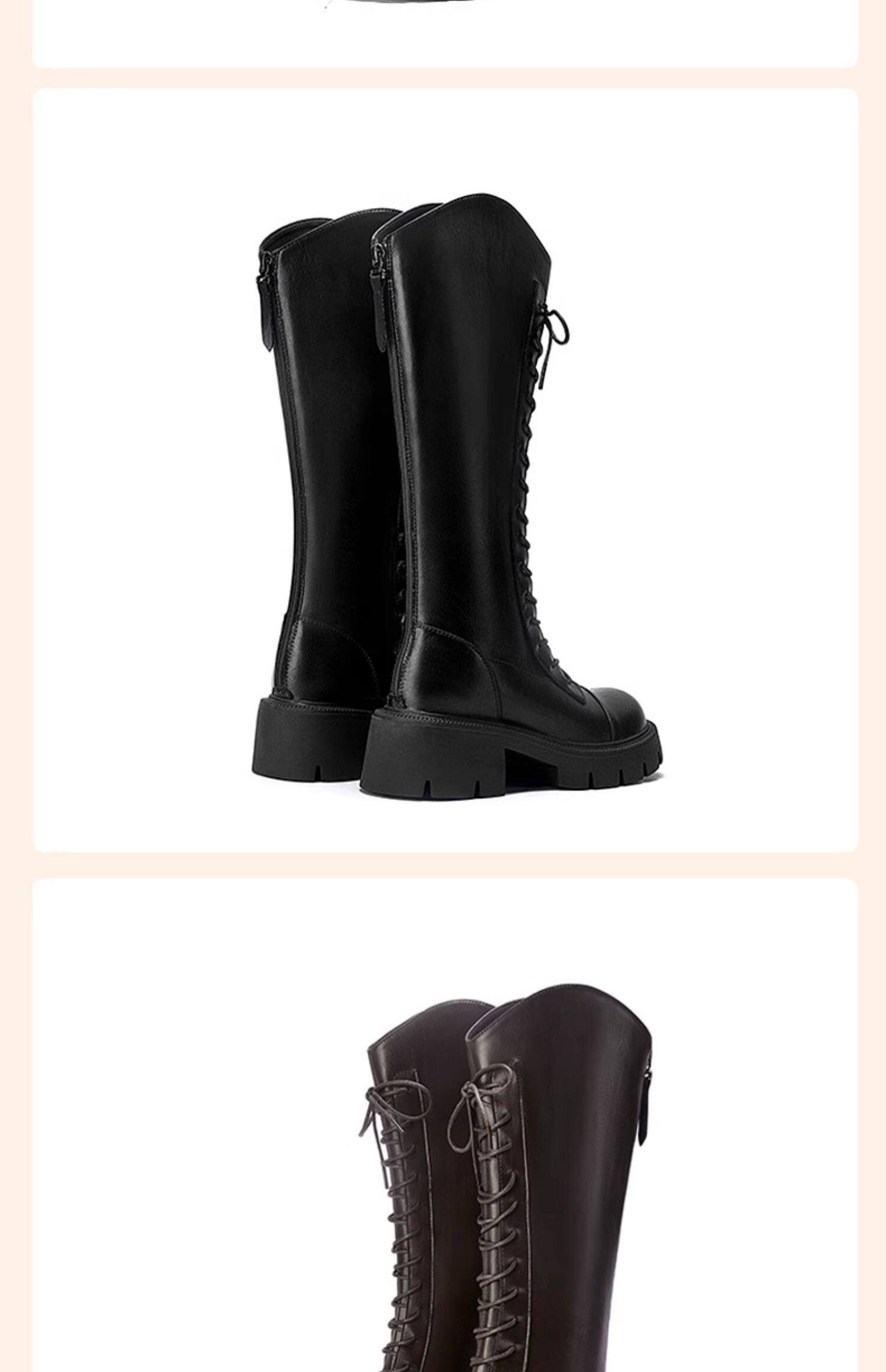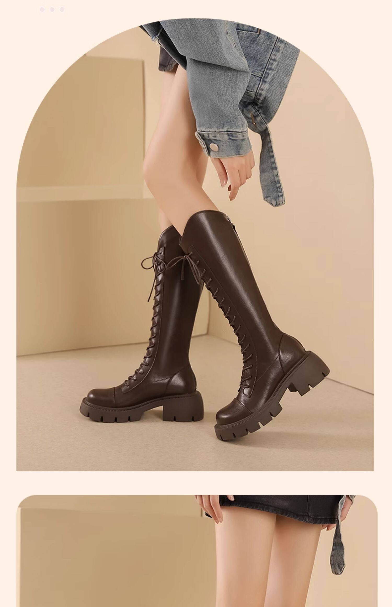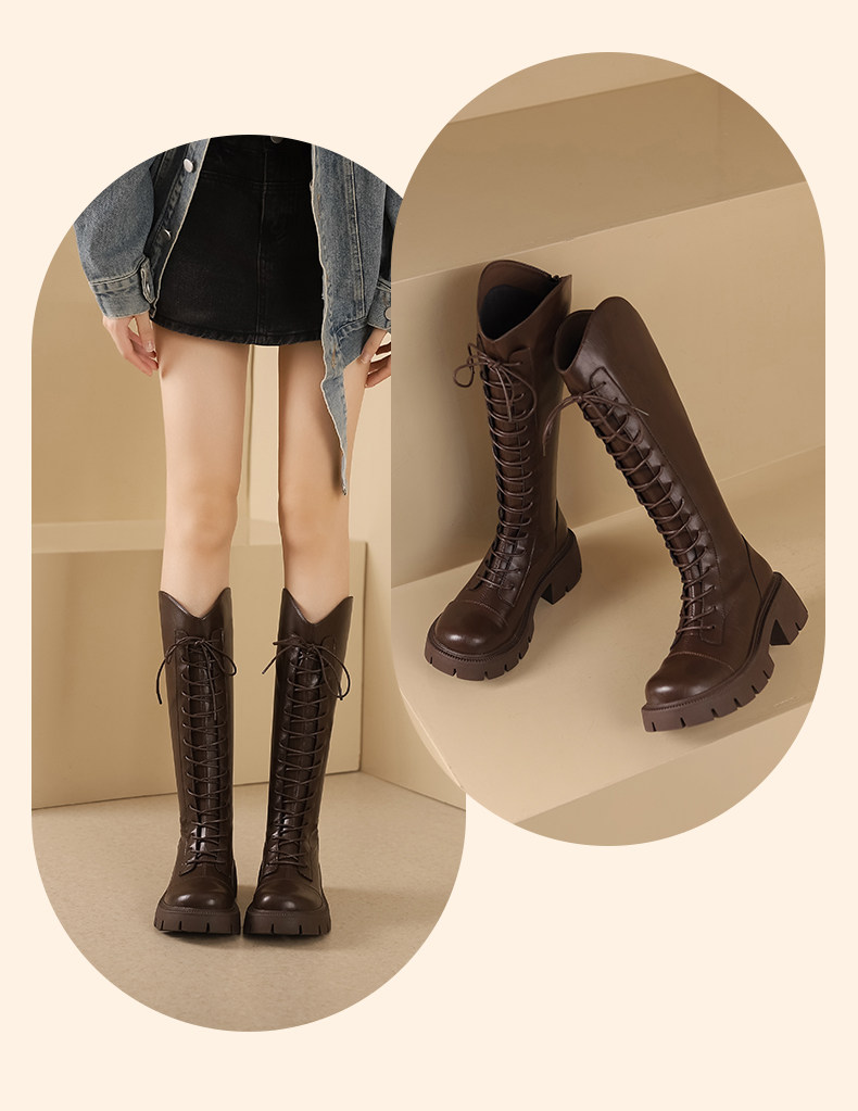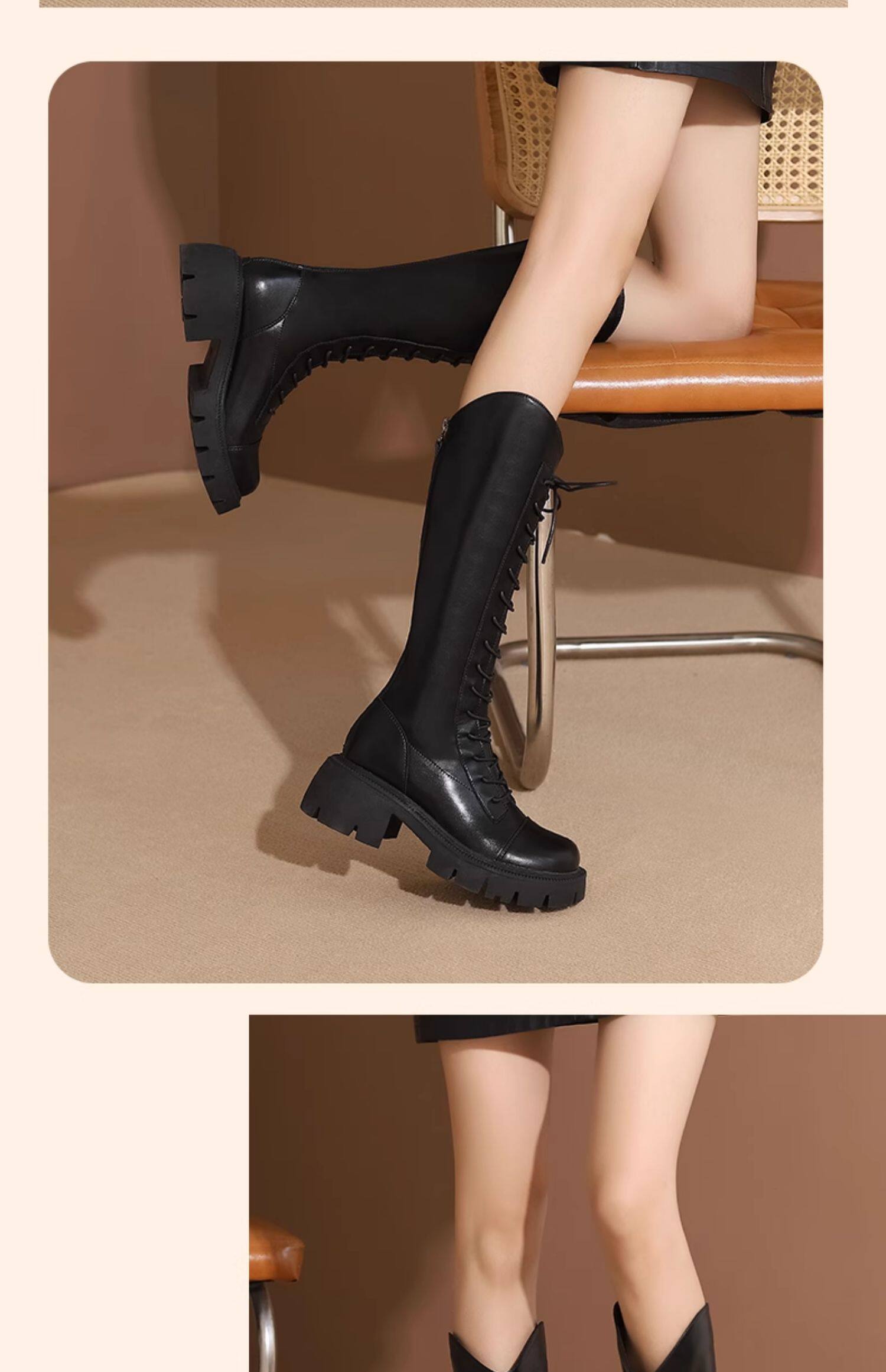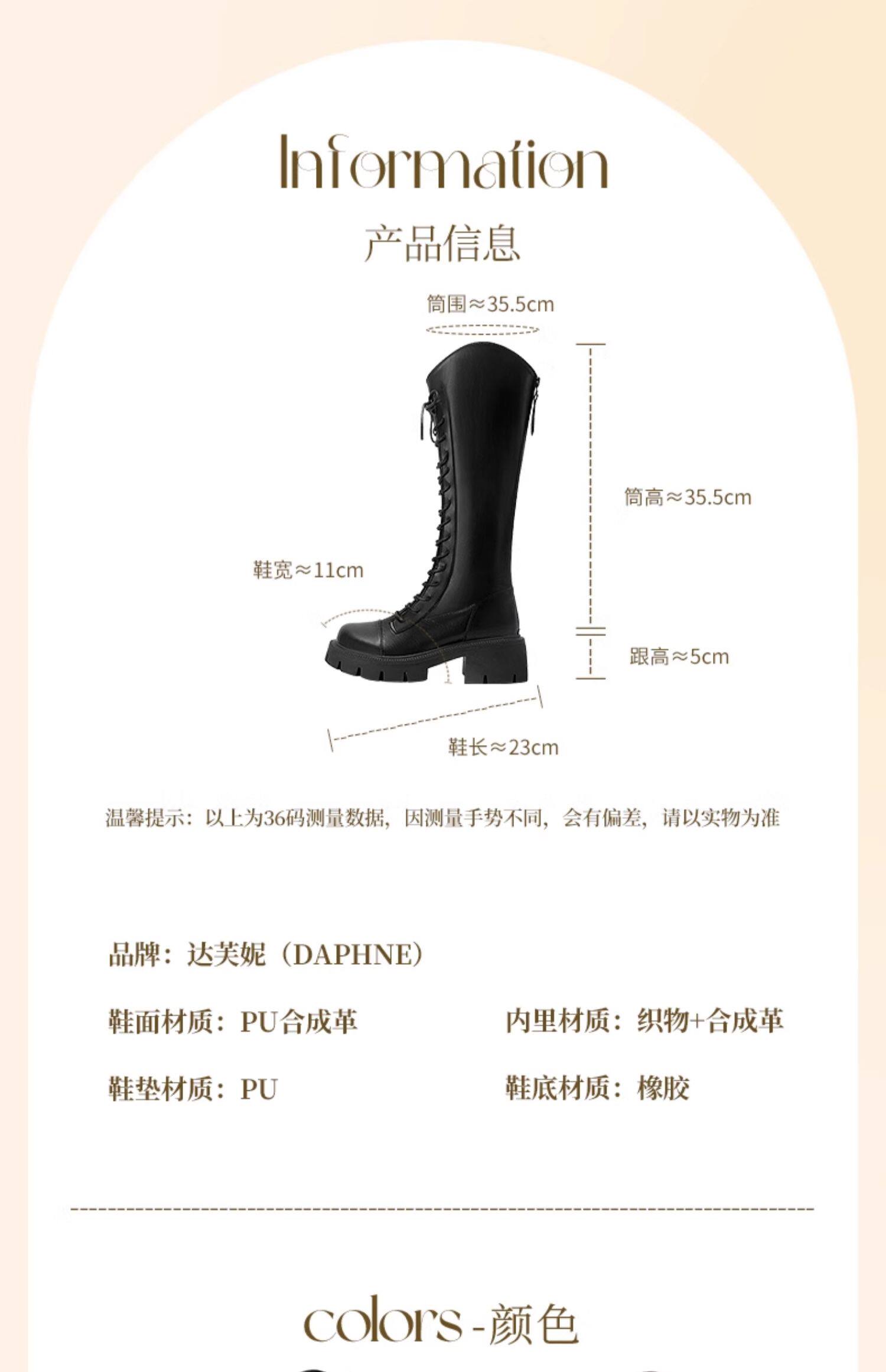 達芙妮馬丁靴女長筒靴2026新款秋冬v口系帶騎士靴厚底高筒瘦瘦靴