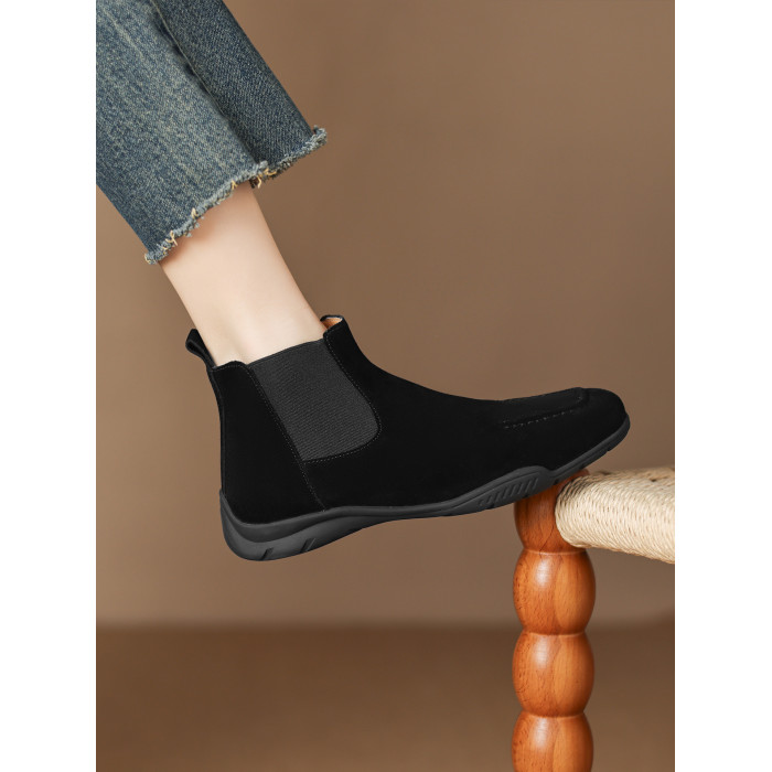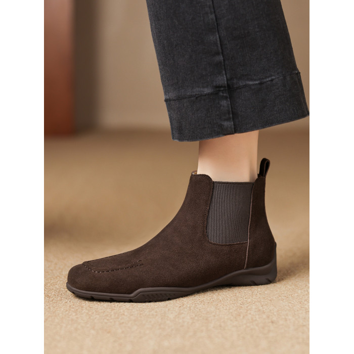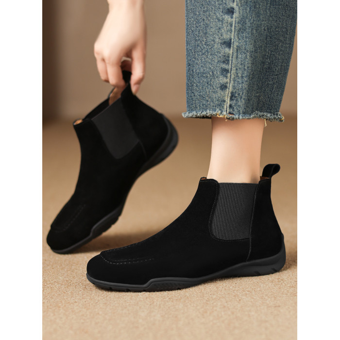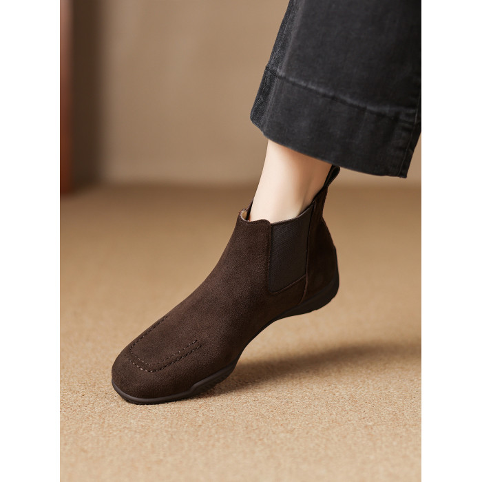 早號運動底單靴磨砂皮圓頭短靴女松緊套筒菸筒靴舒適透氣女靴春秋