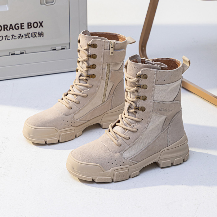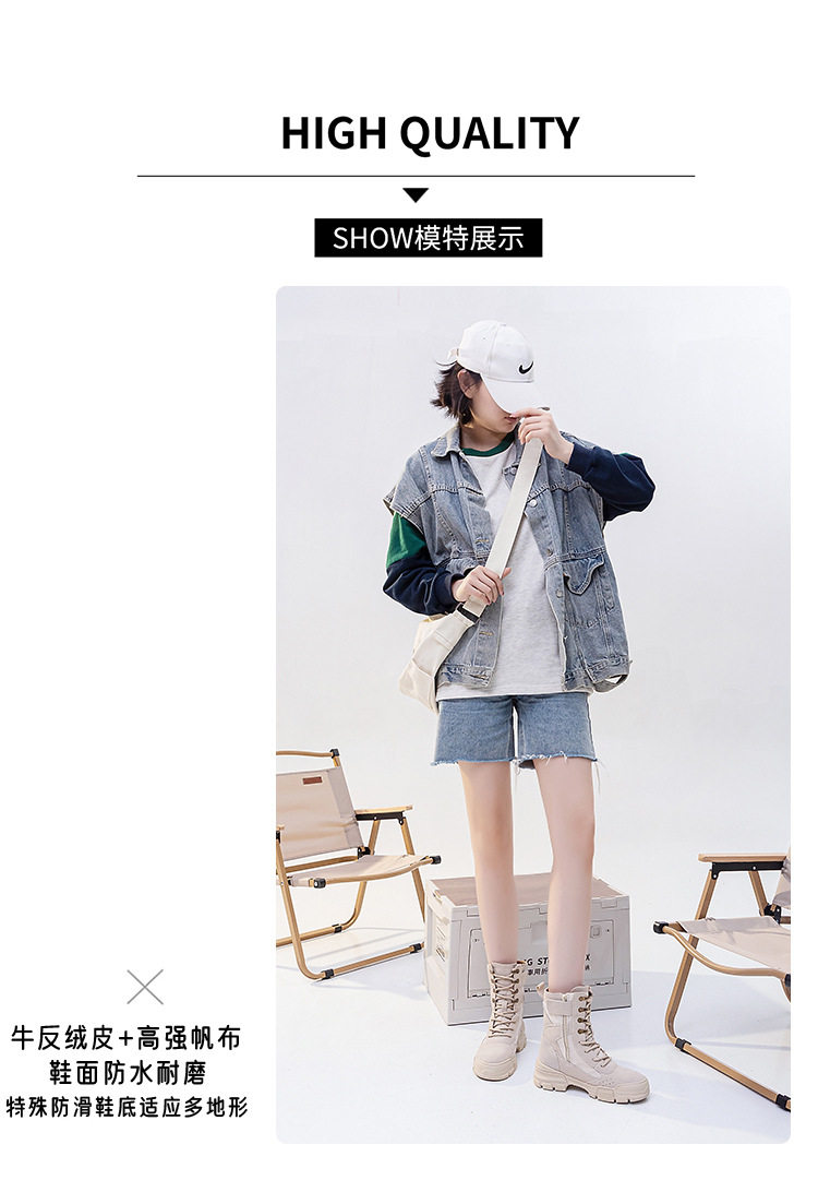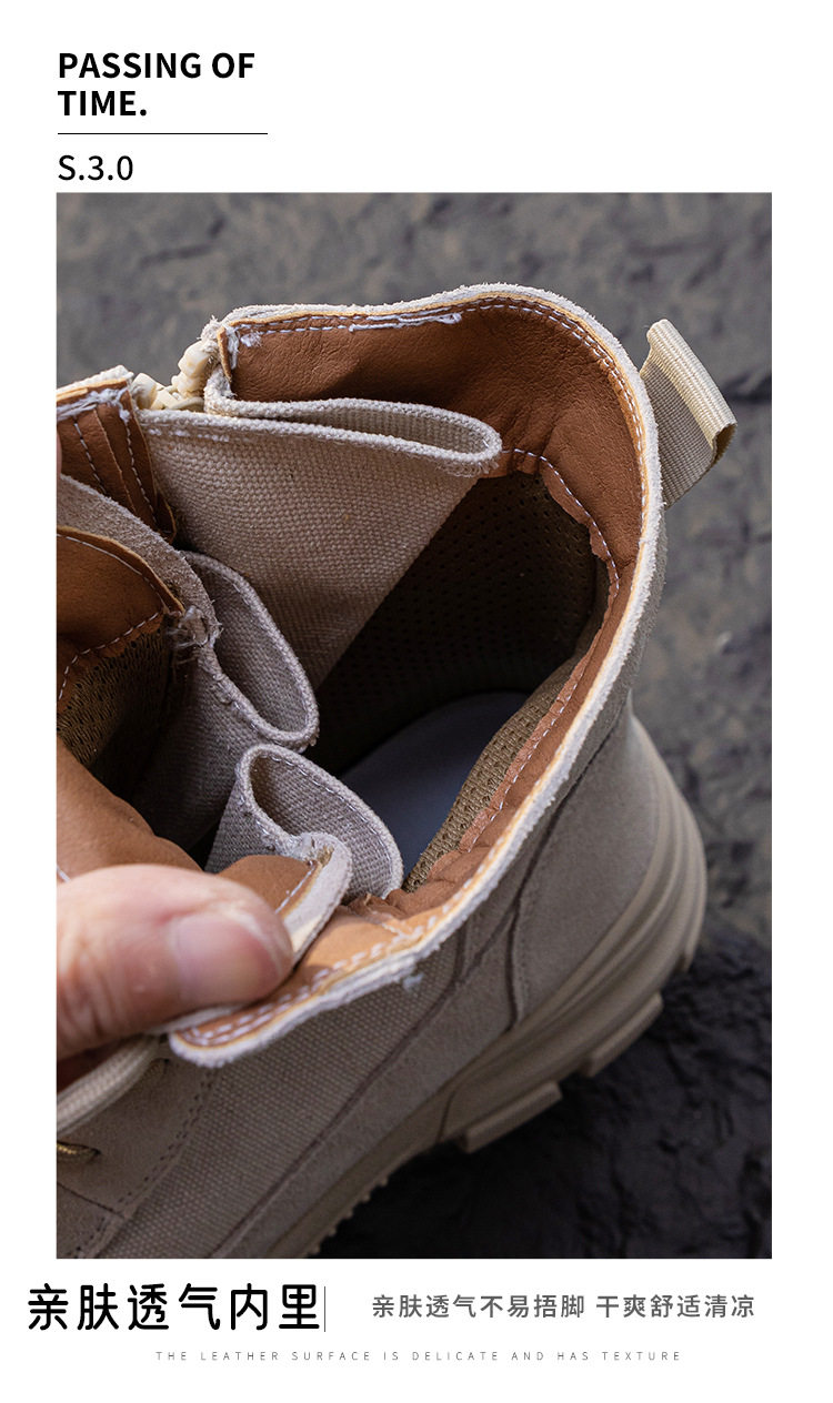 帆布馬丁靴女2026新款夏季薄款復古戶外登山鞋沙漠靴真皮厚底短靴