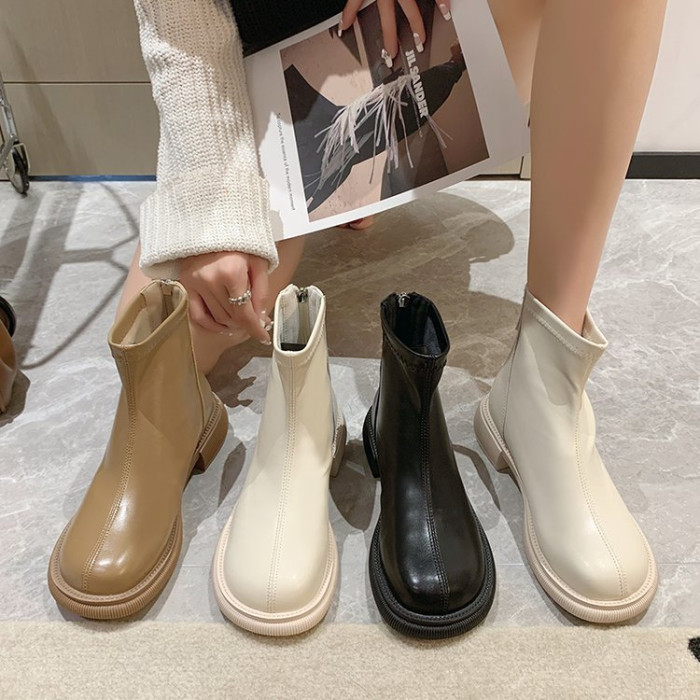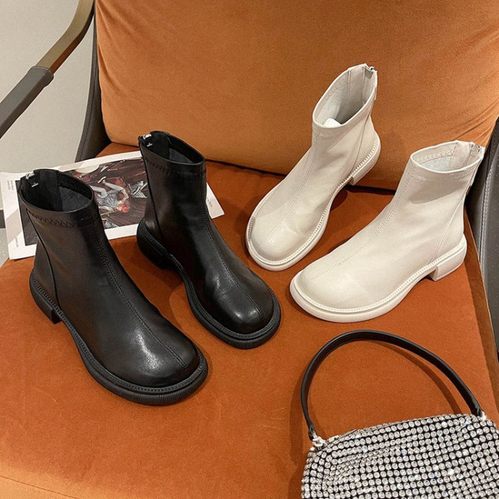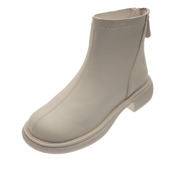 短靴女2025新款法式英倫風馬丁靴春秋單靴米白色切爾西瘦瘦靴裸靴