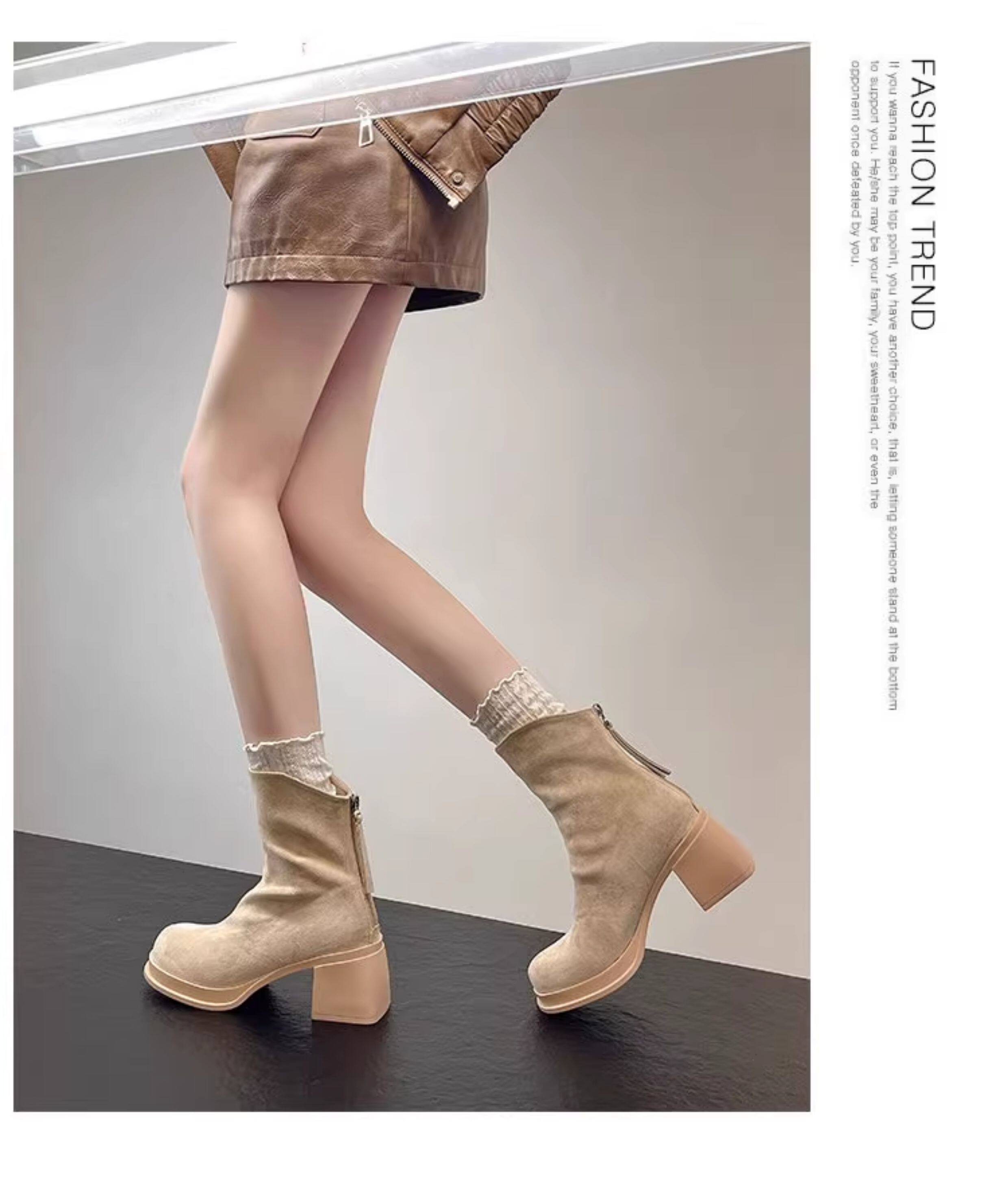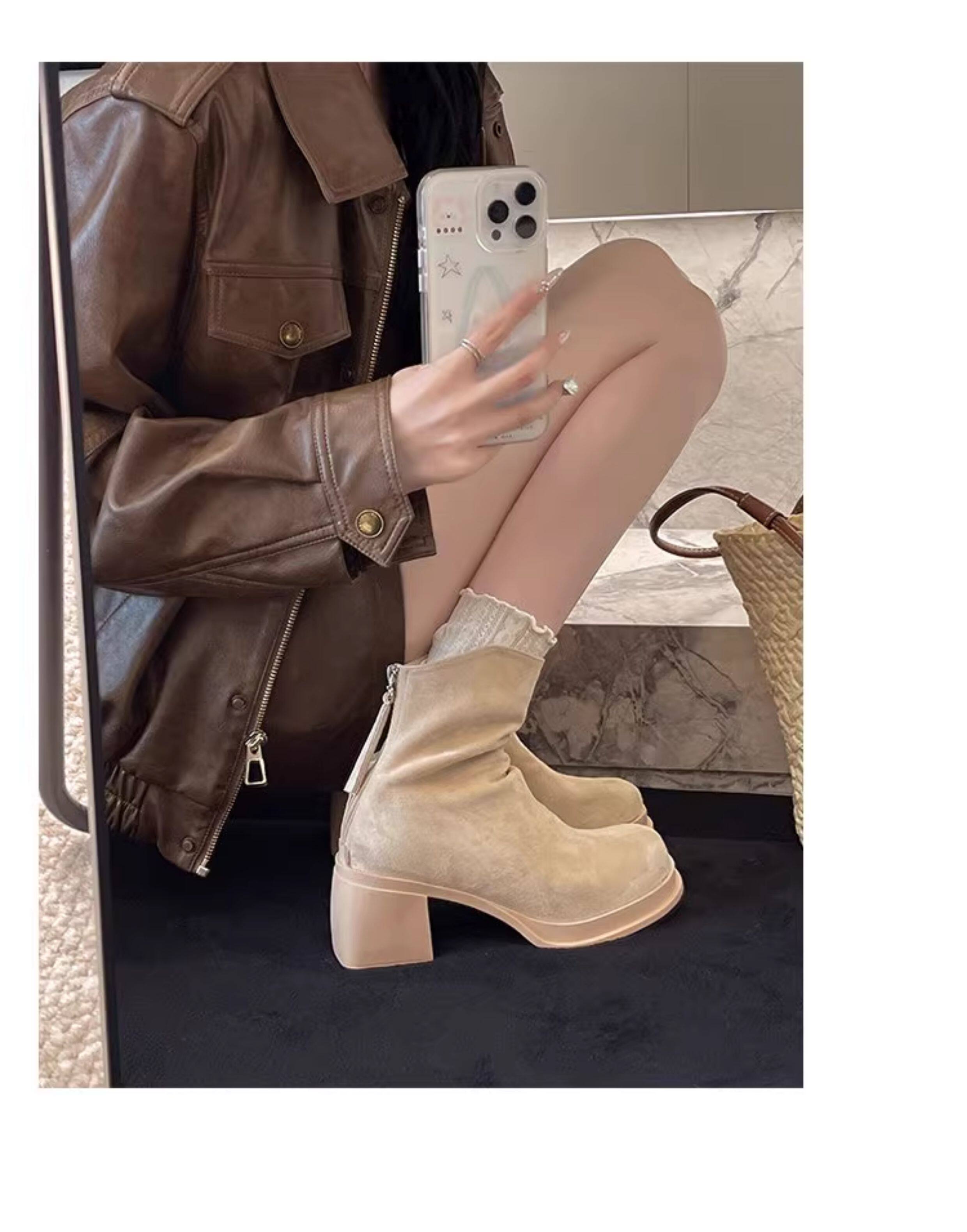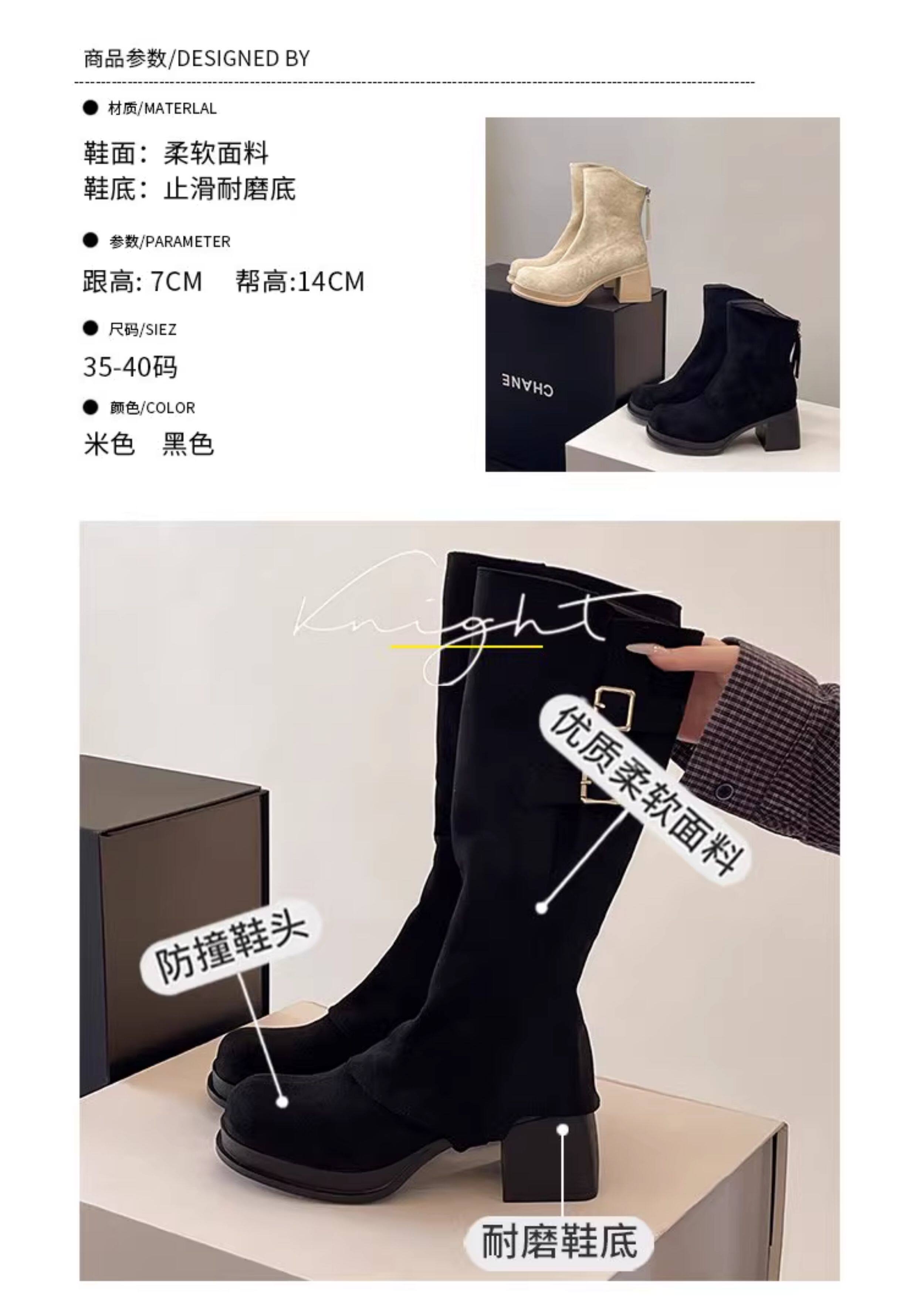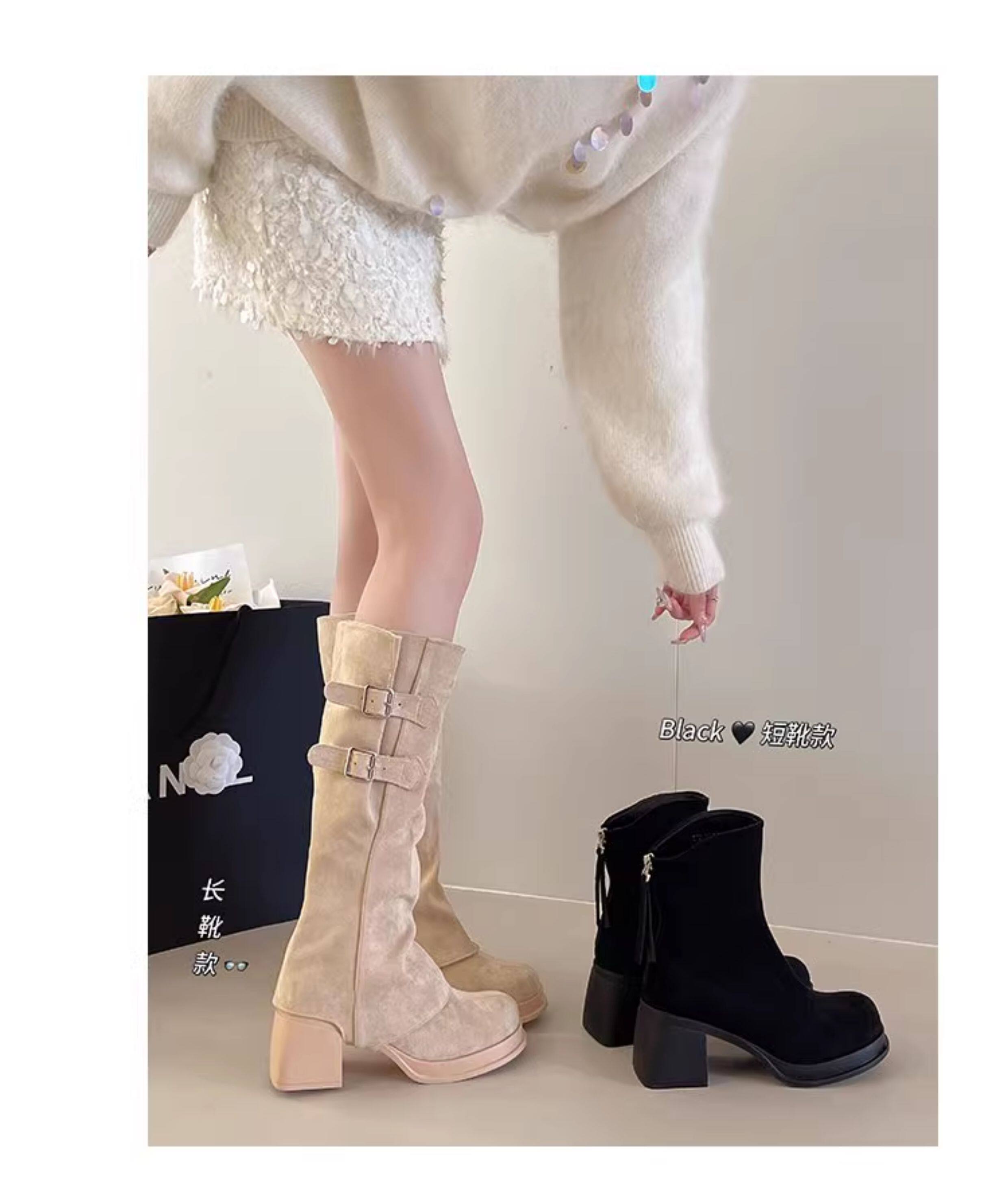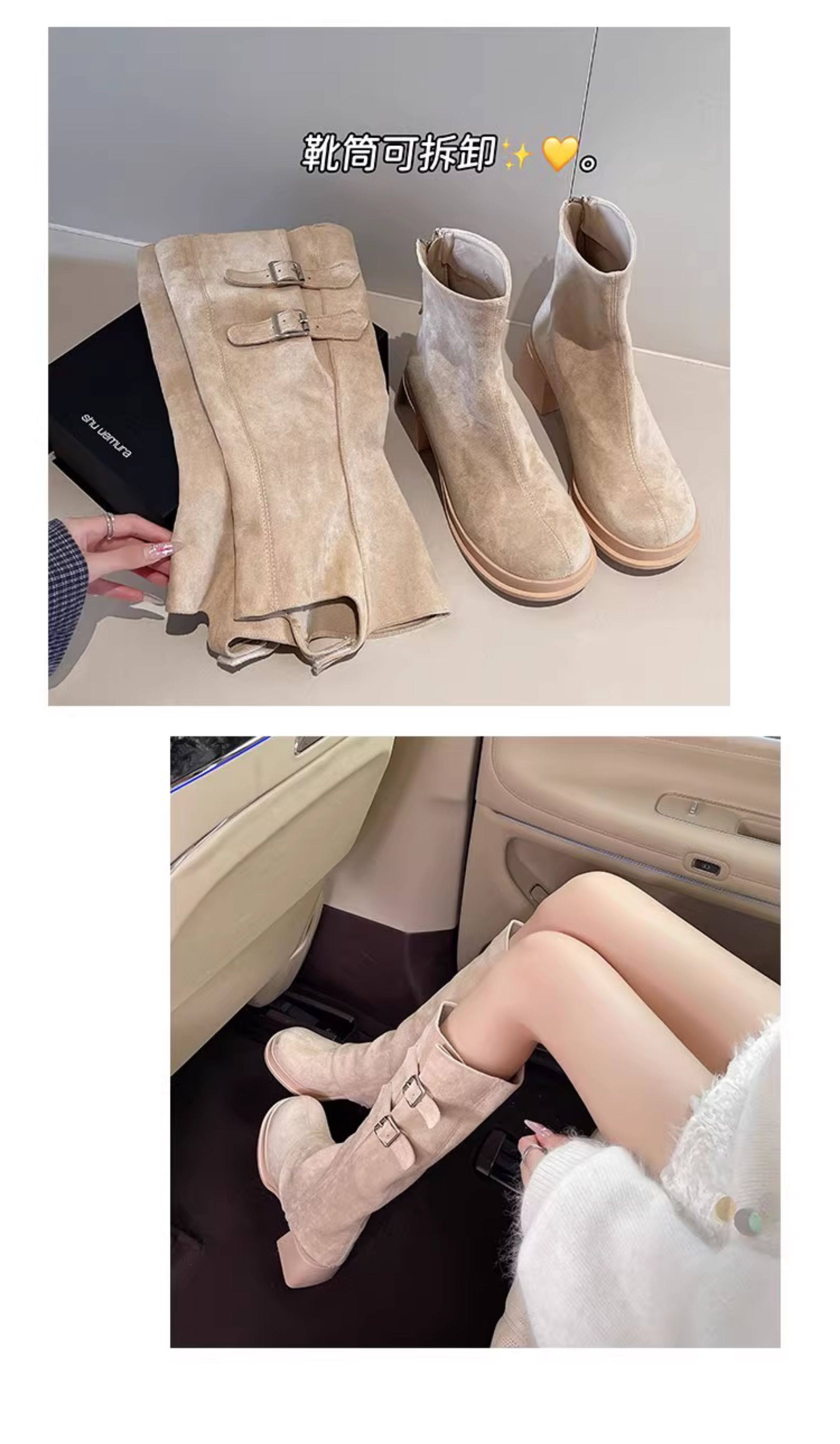 裸色高跟靴子女秋冬季長靴2025新款爆款高筒可拆卸兩穿短靴瘦瘦靴