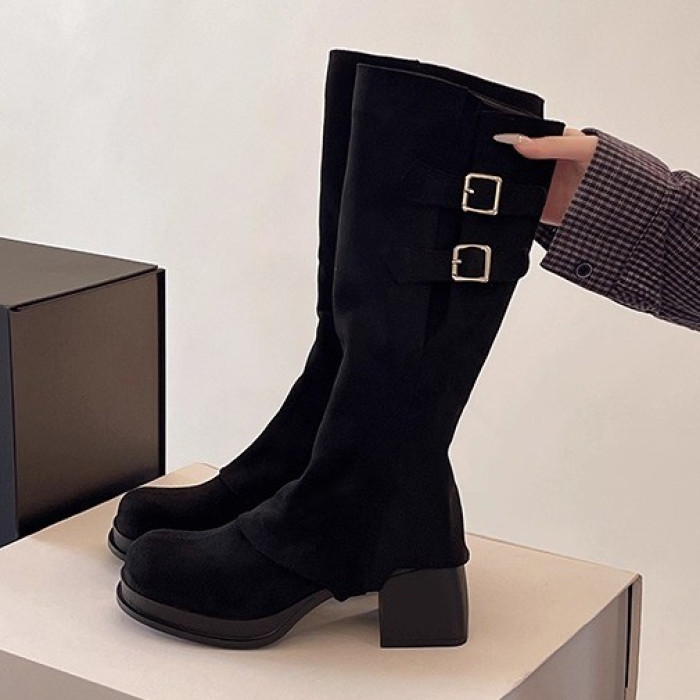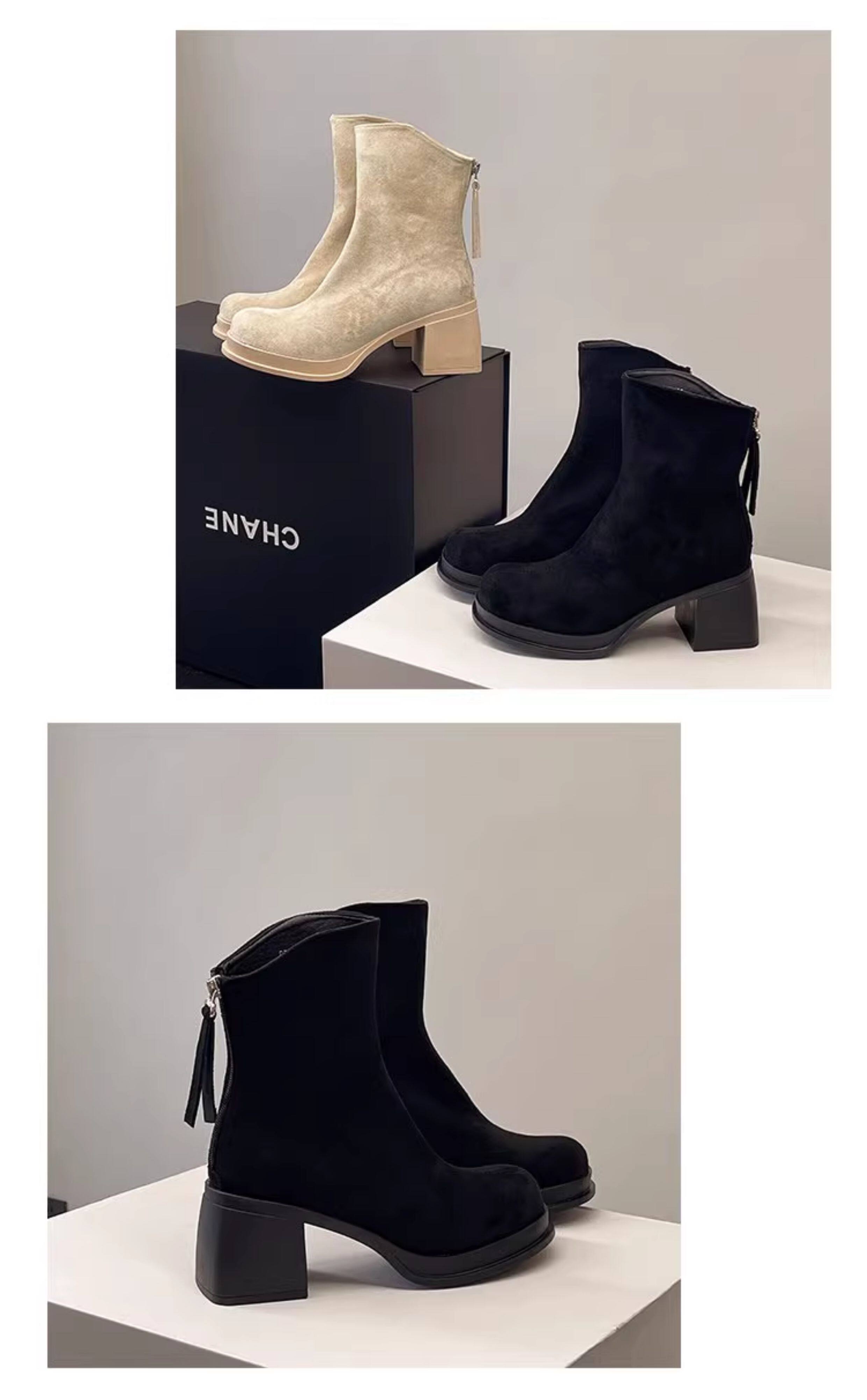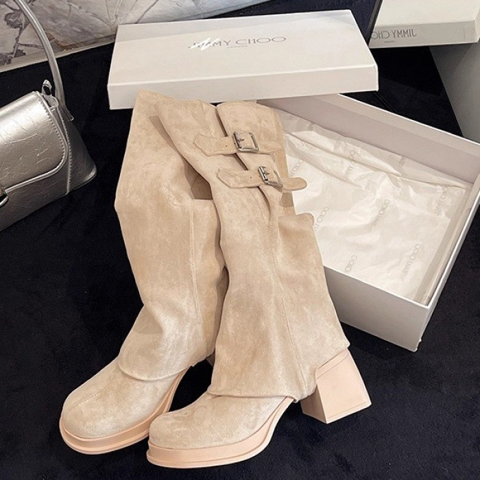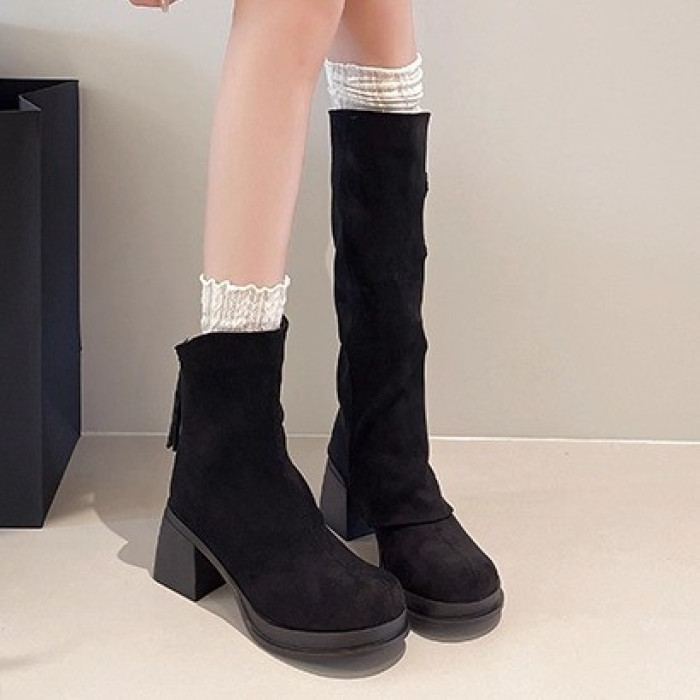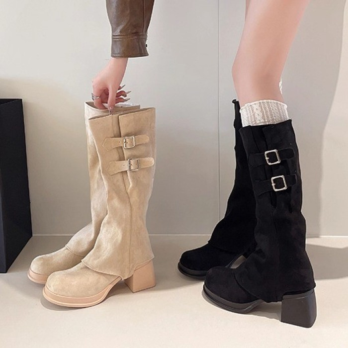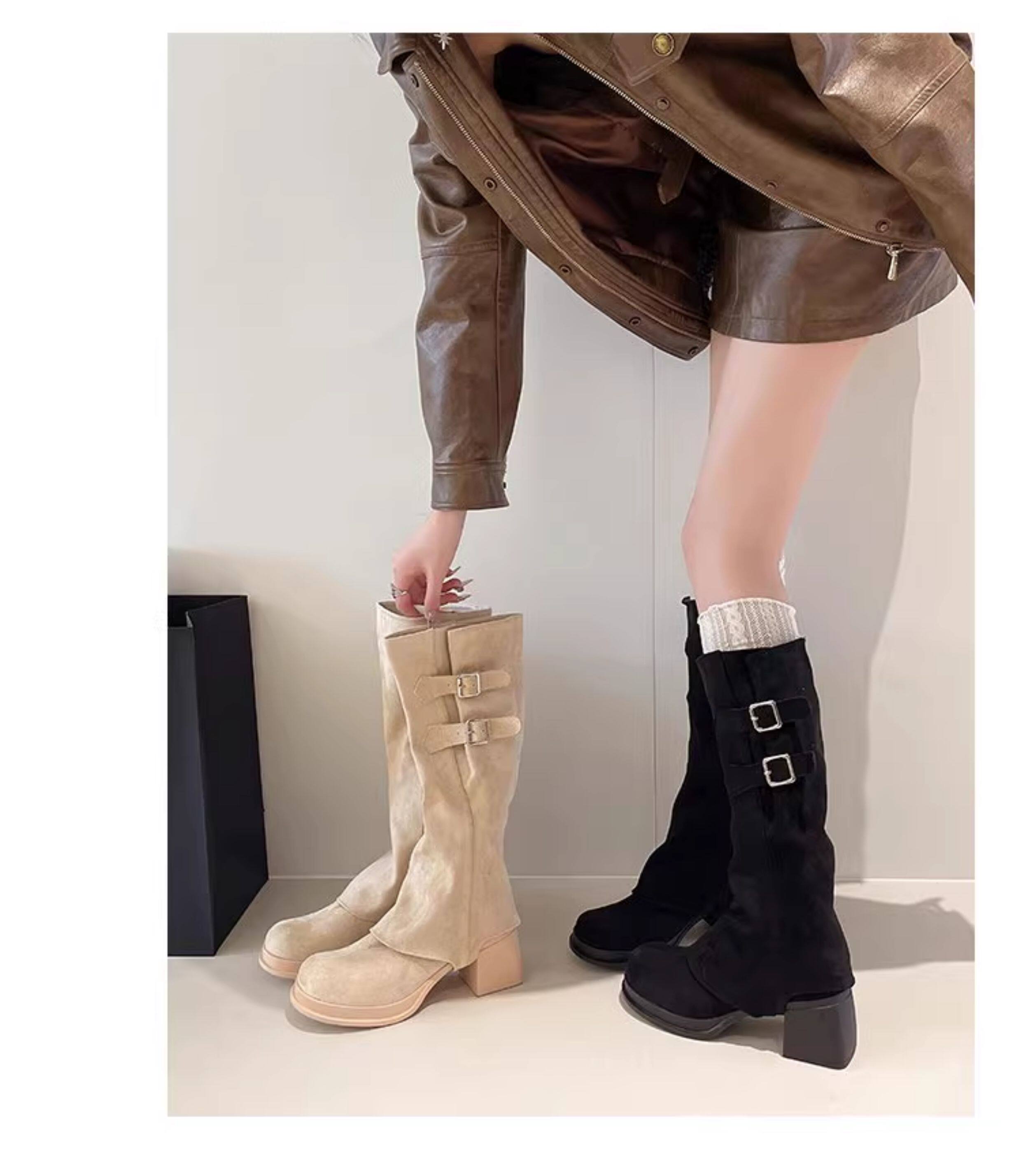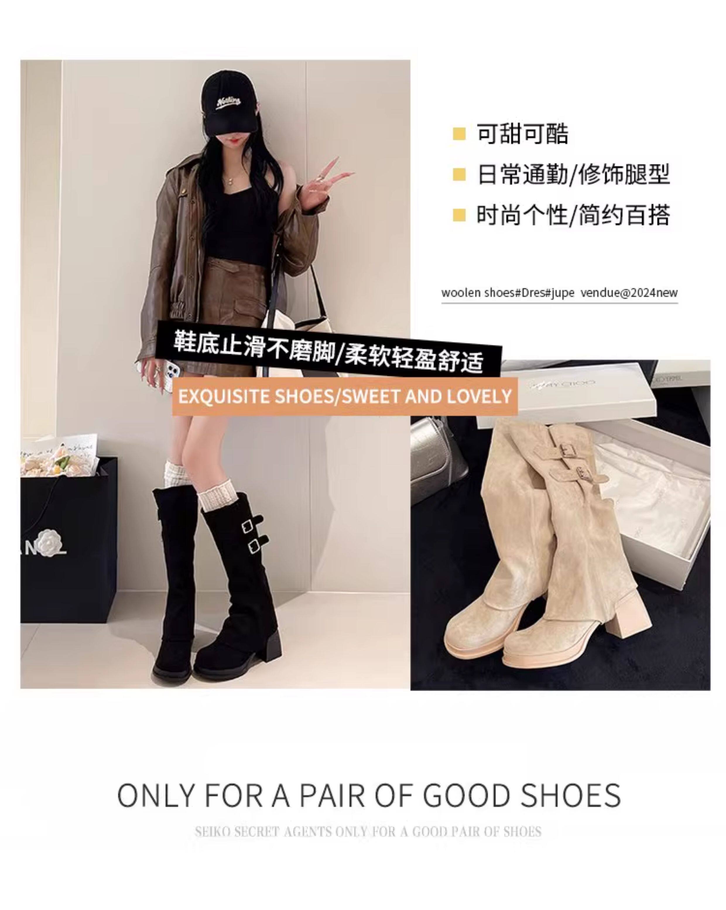 裸色高跟靴子女秋冬季長靴2025新款爆款高筒可拆卸兩穿短靴瘦瘦靴