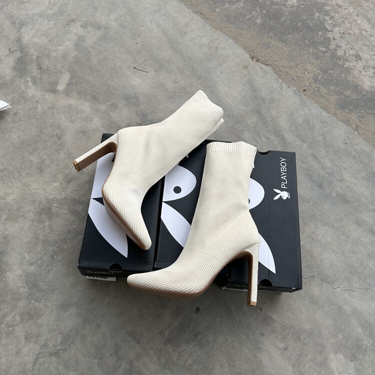 方頭高跟襪靴2025網紅瘦瘦靴短靴女細跟彈力靴春秋針織中筒單靴子