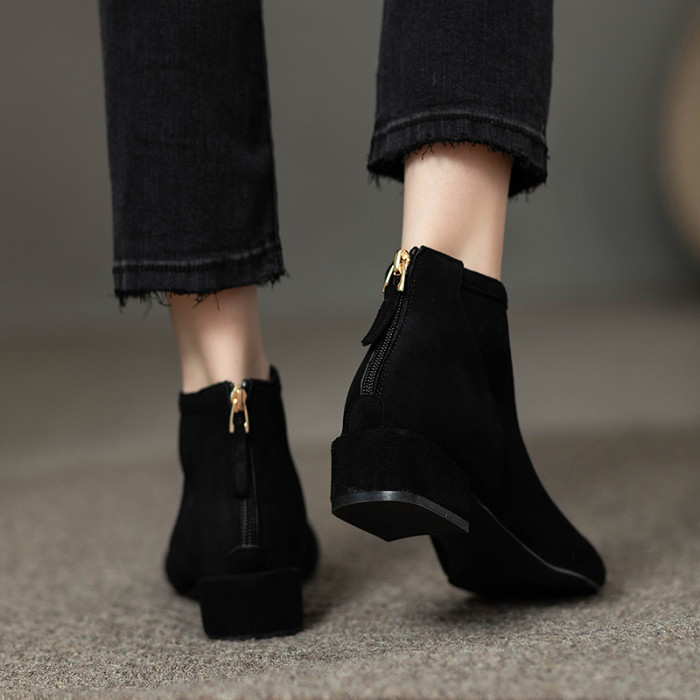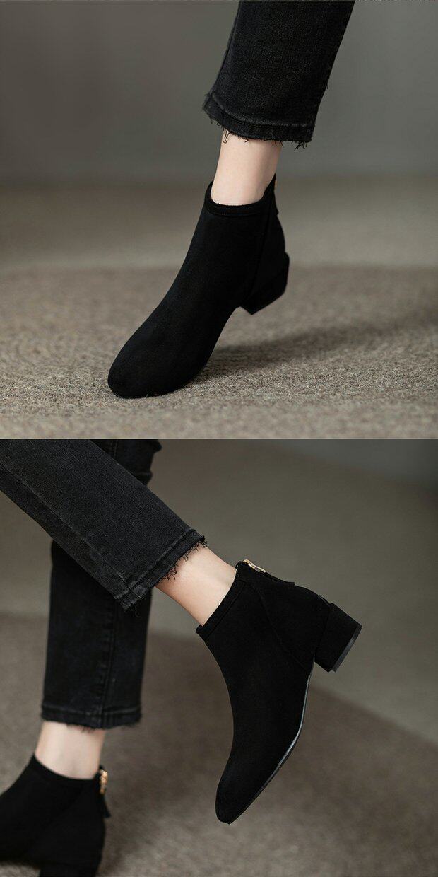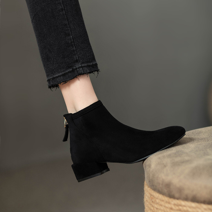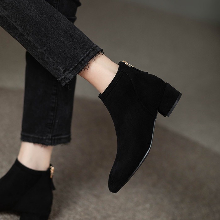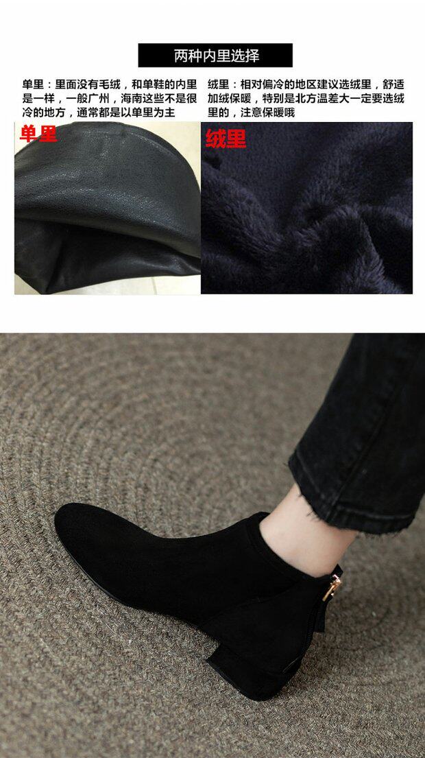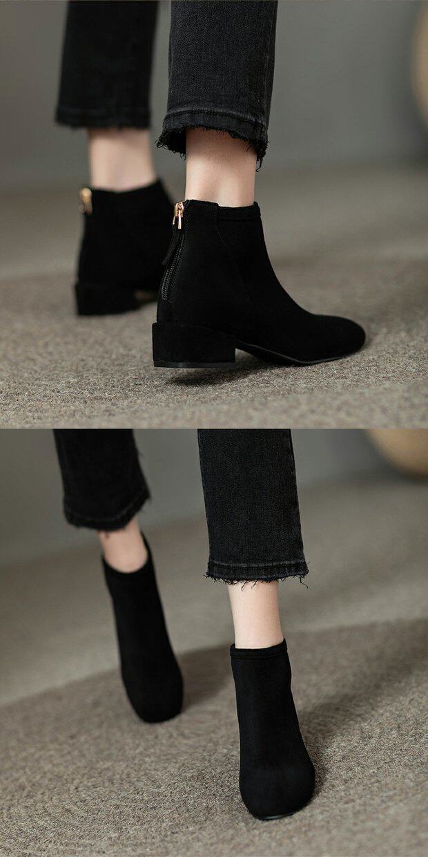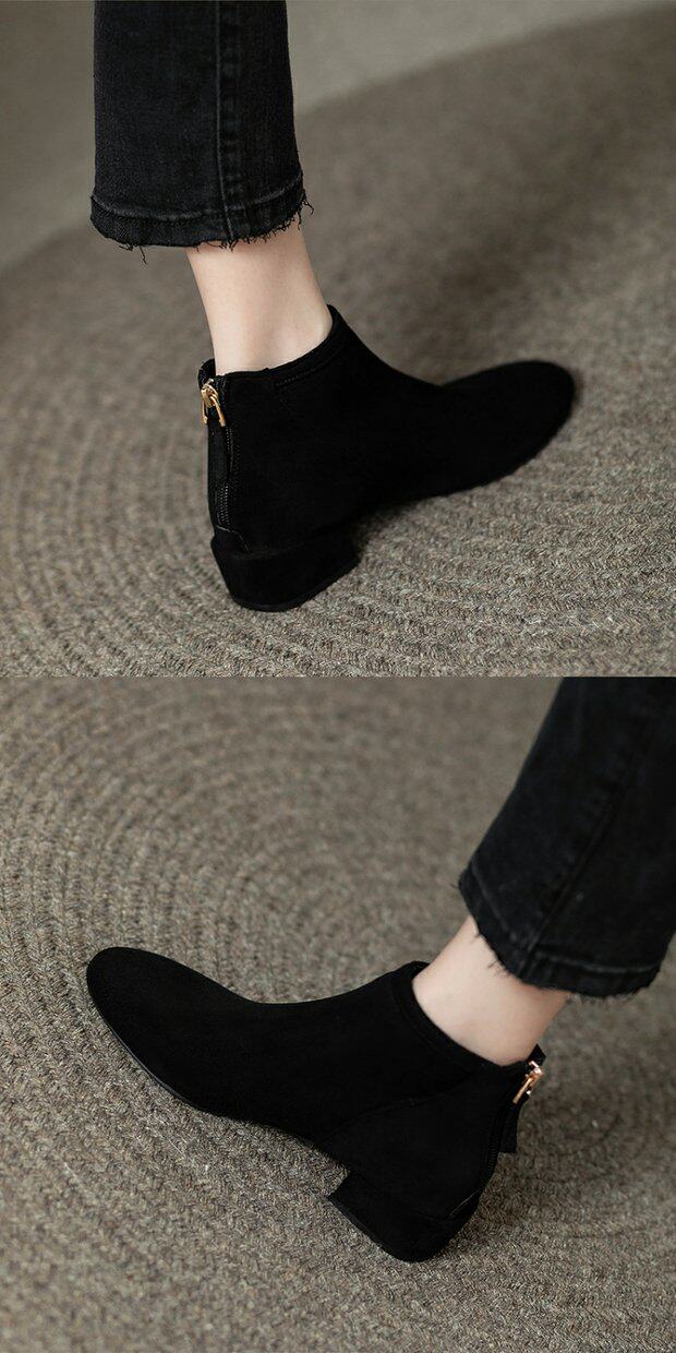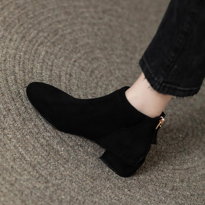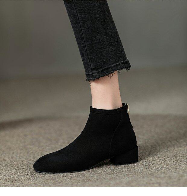 女鞋秋冬2026新款歐貨低跟圓頭後拉鍊方跟顯瘦時尚短靴女短筒平跟