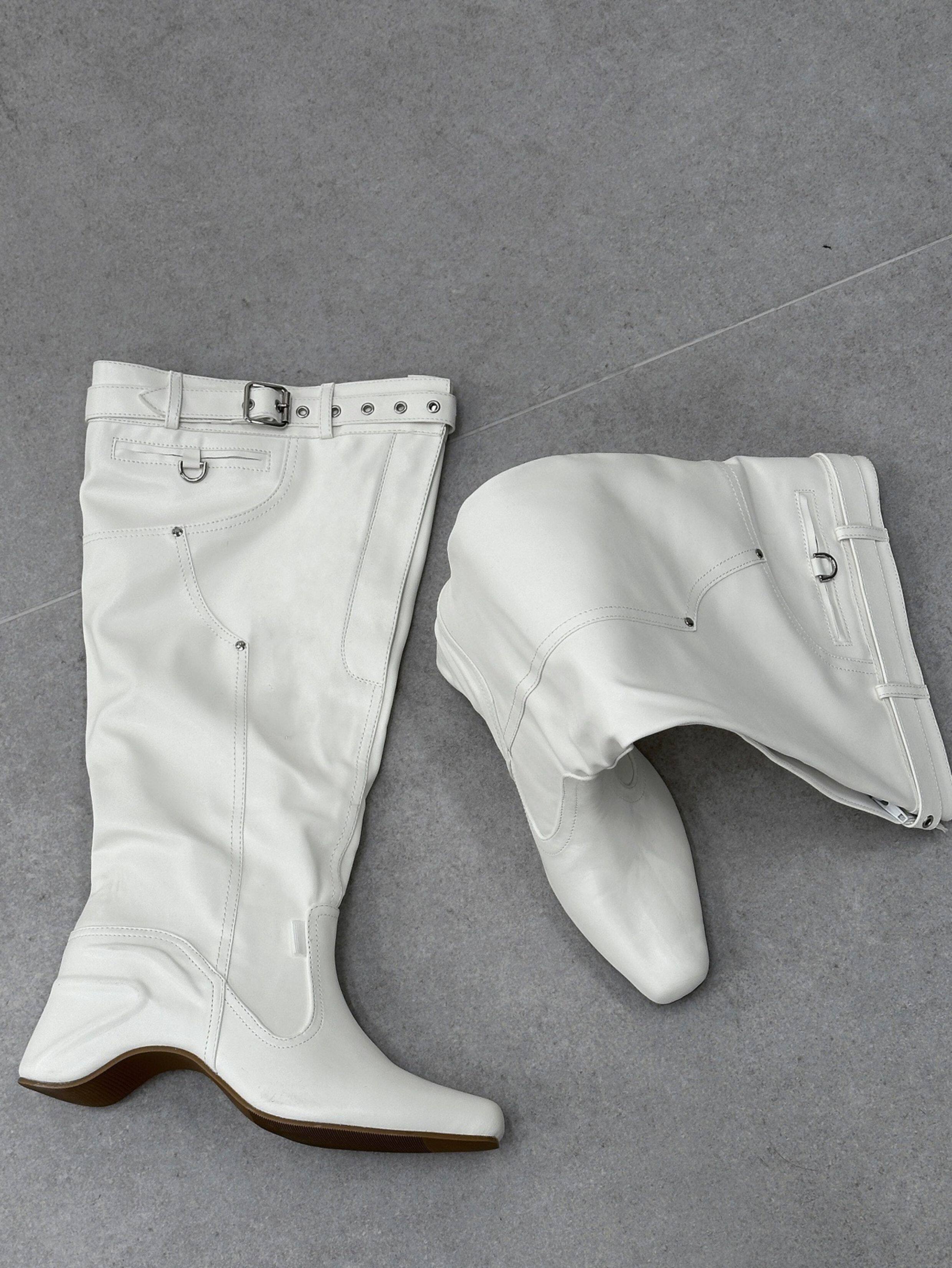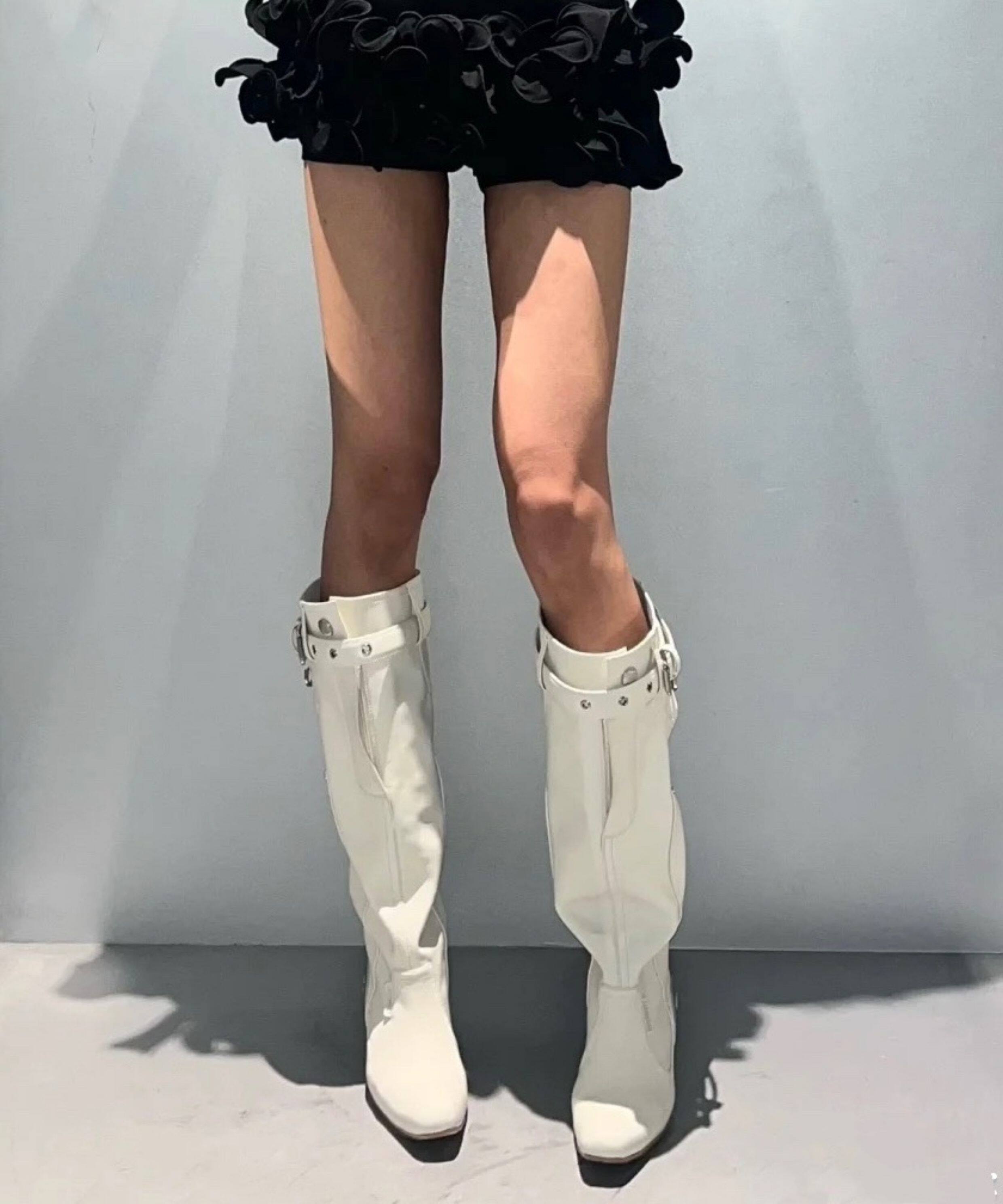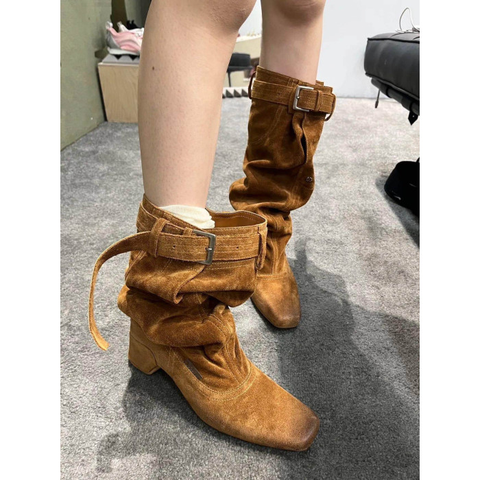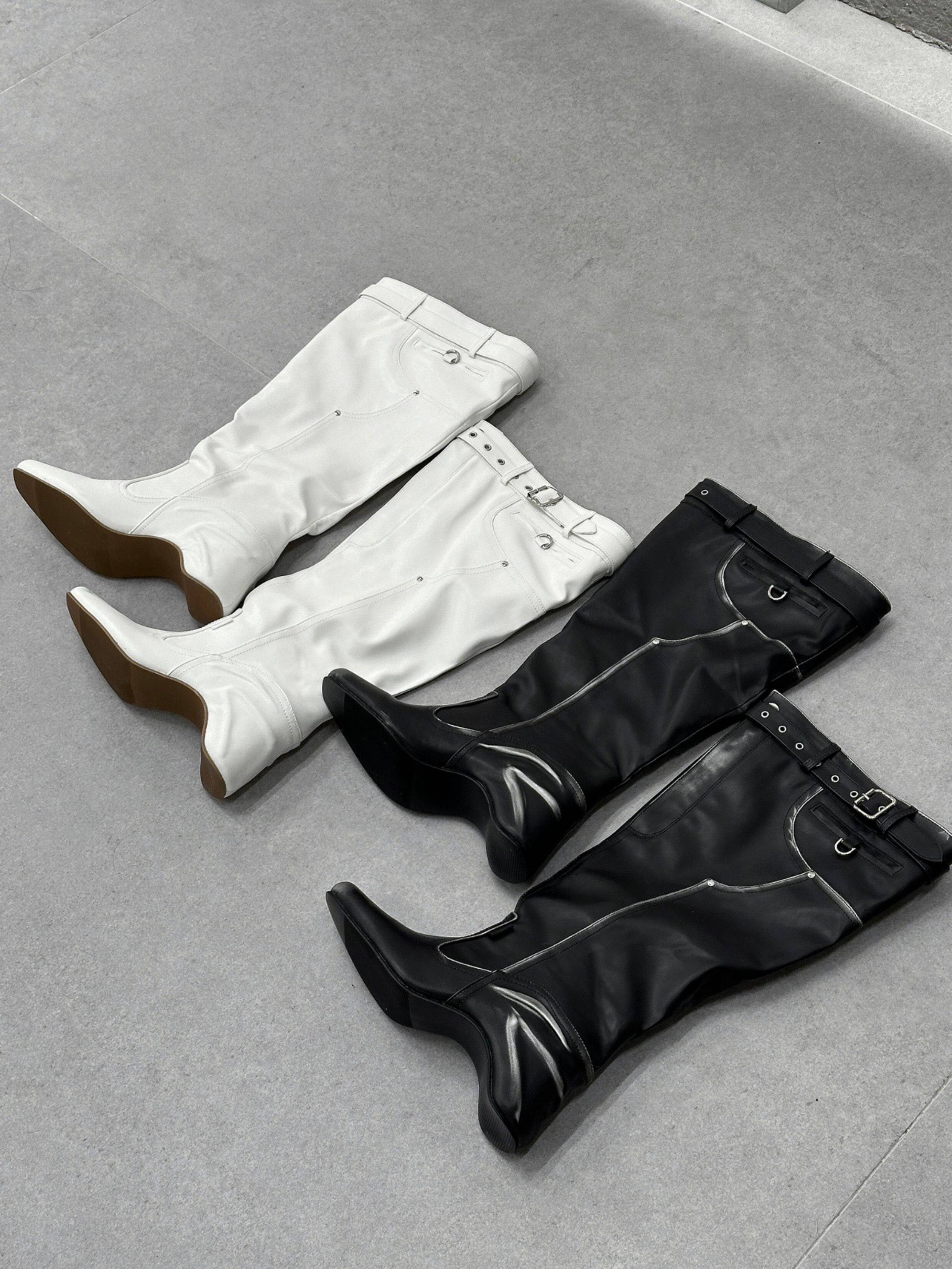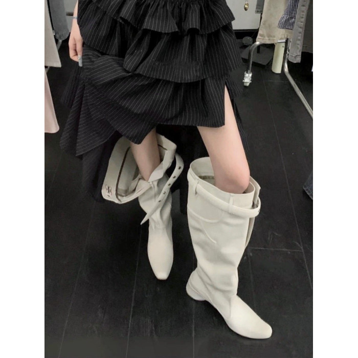 時髦感大筒圍褶皺堆堆靴復古西部牛仔靴異型跟騎士靴辣妹長筒靴女