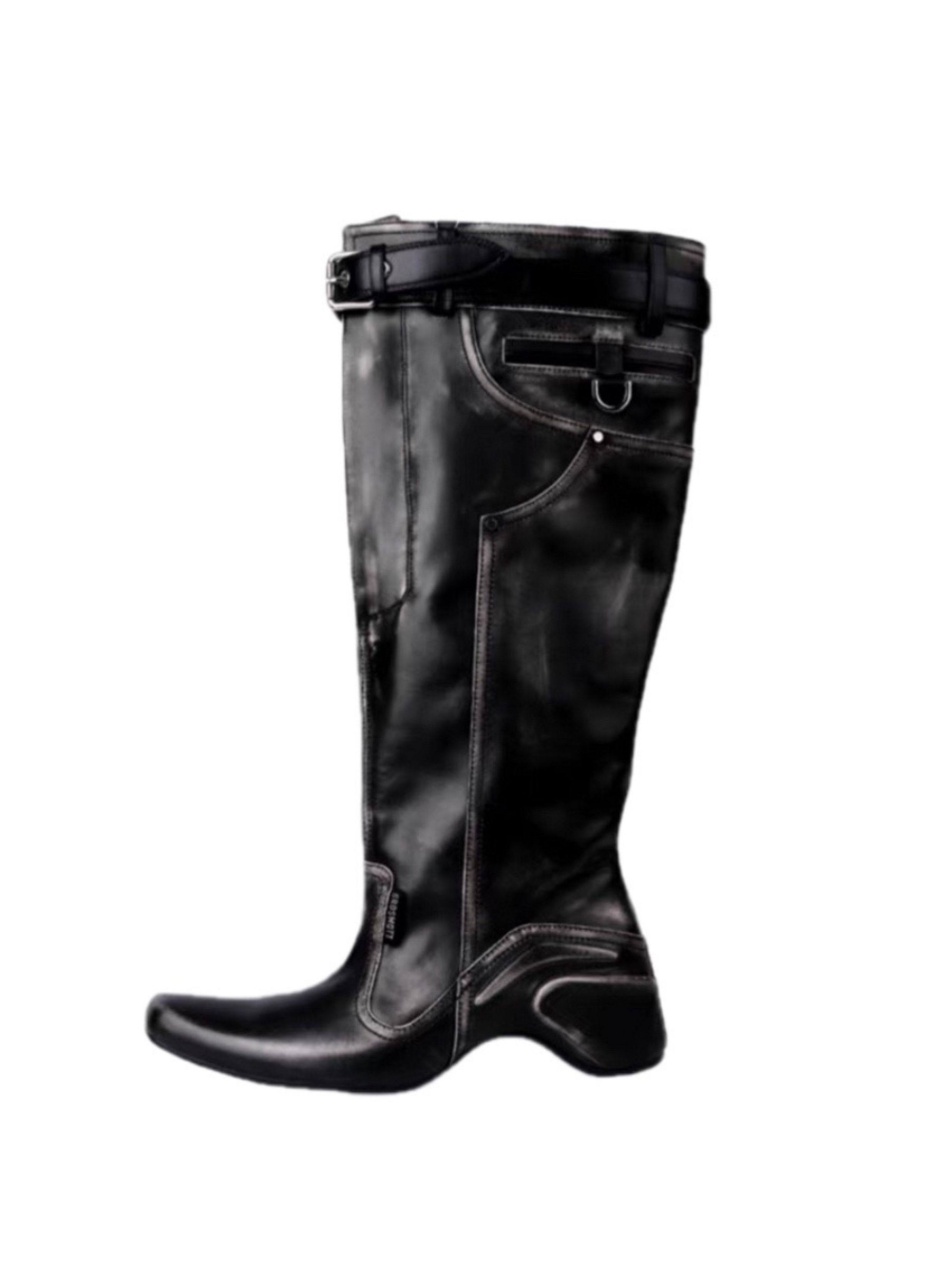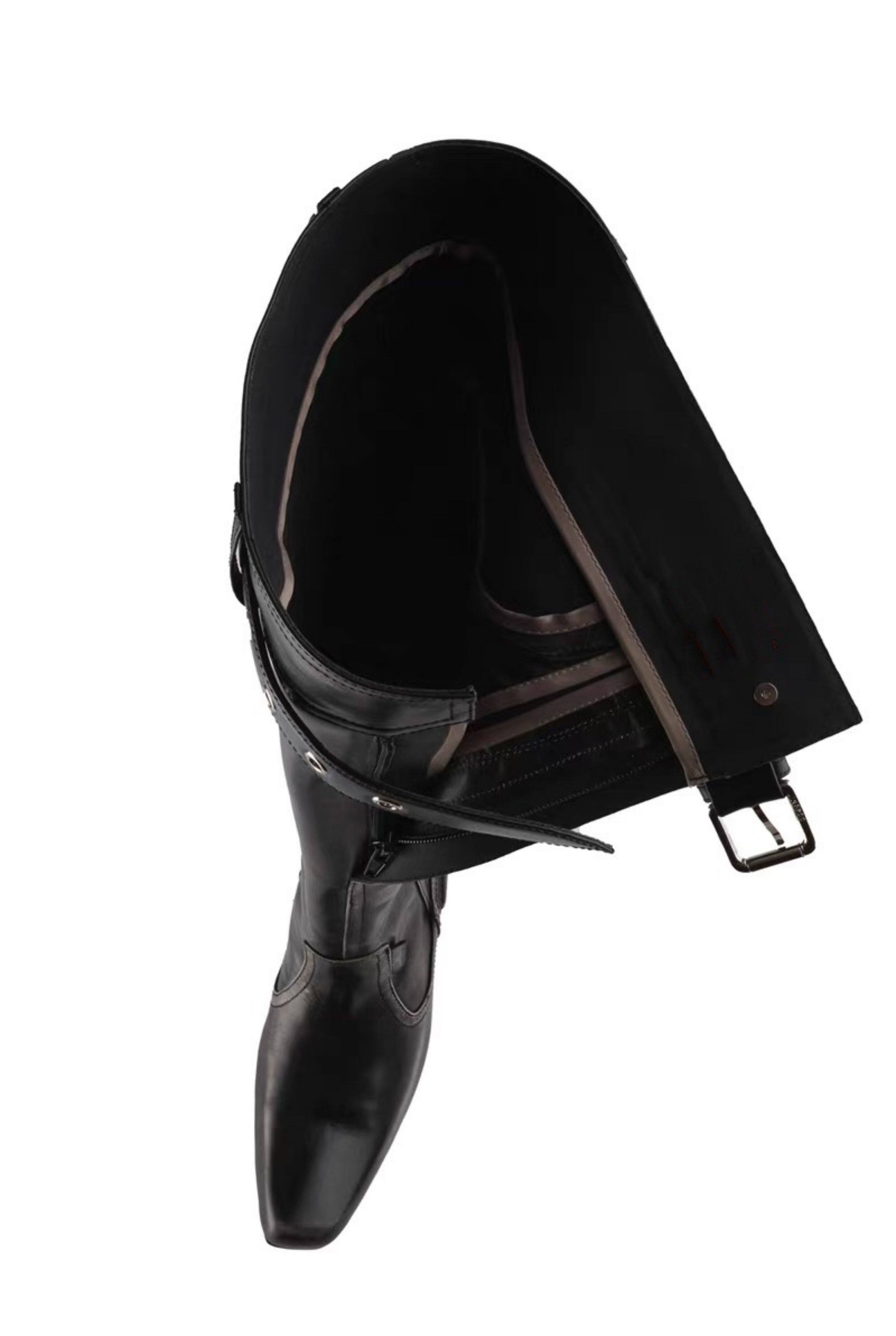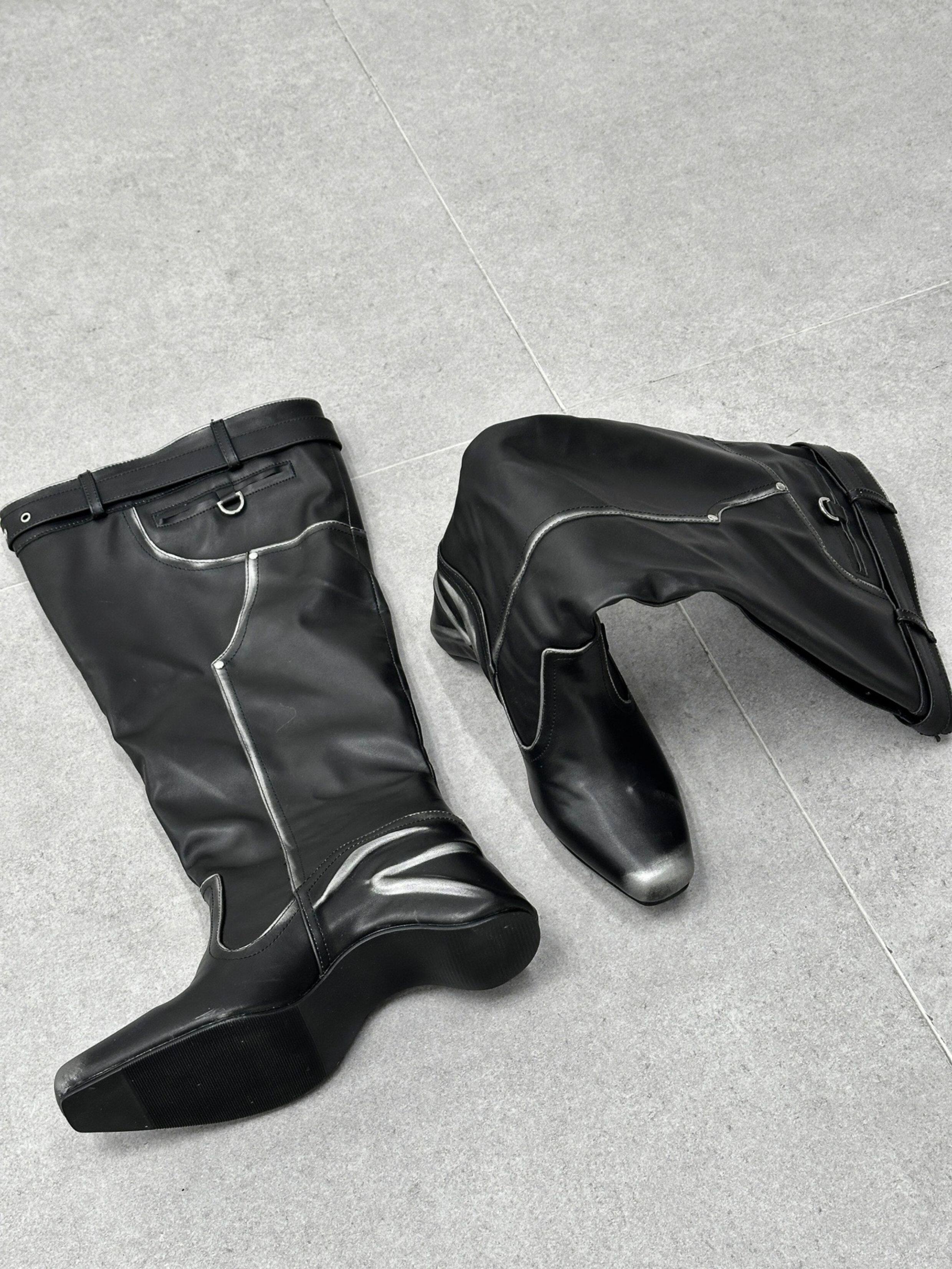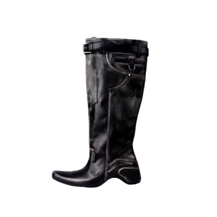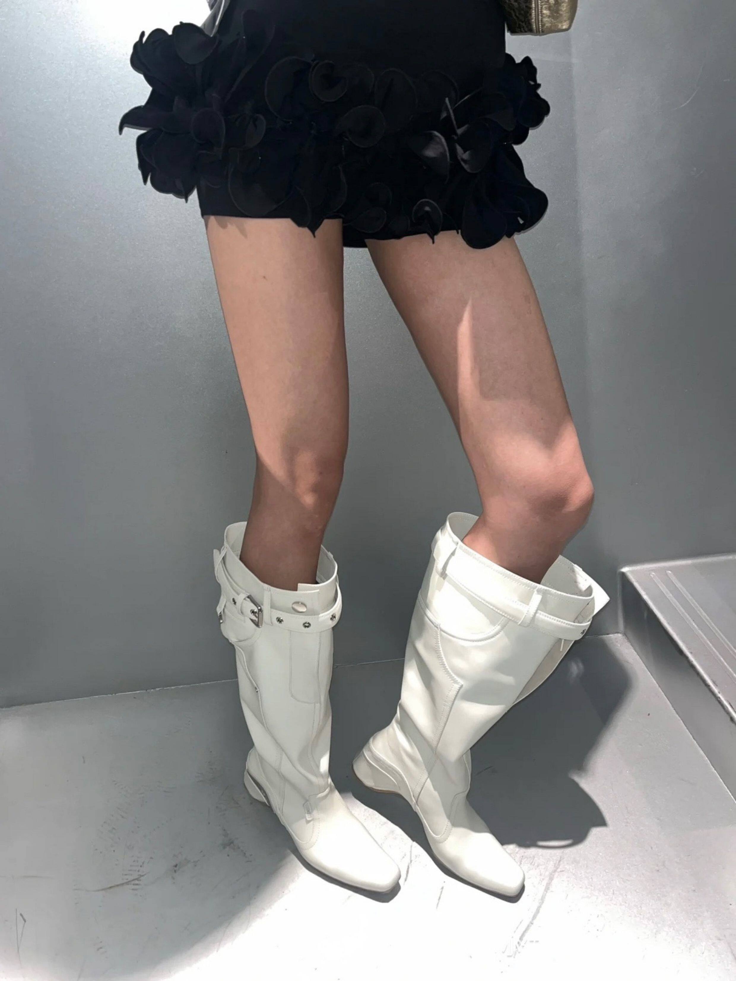 時髦感大筒圍褶皺堆堆靴復古西部牛仔靴異型跟騎士靴辣妹長筒靴女