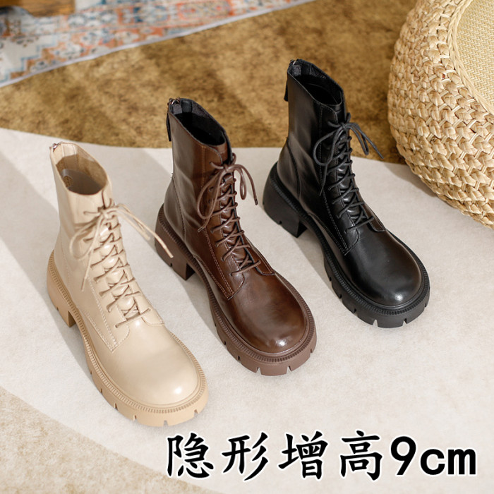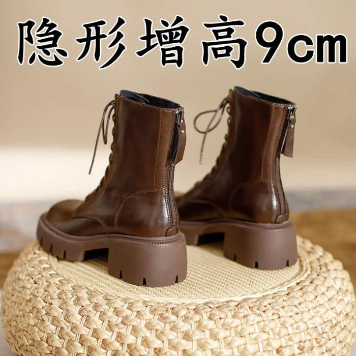 真皮小個子棕色加絨馬丁靴子女2025秋冬新款炸街內增高瘦瘦靴短靴
