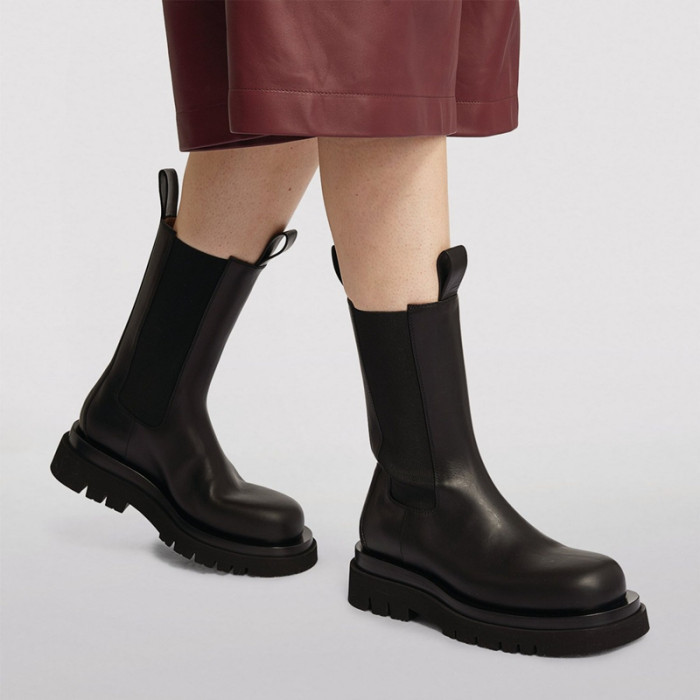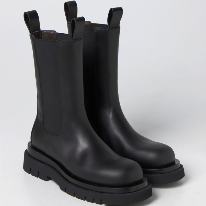 高定寬邊版2023春秋新款中筒靴圓頭厚底切爾西靴馬丁靴女菸筒靴