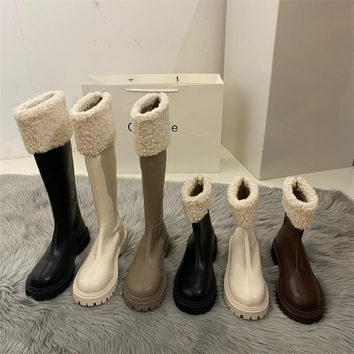 網紅騎士長筒靴女2026年新款秋冬季加絨毛毛冬鞋雪地靴馬丁短靴子
