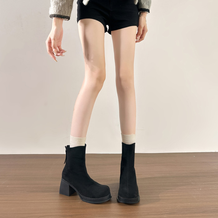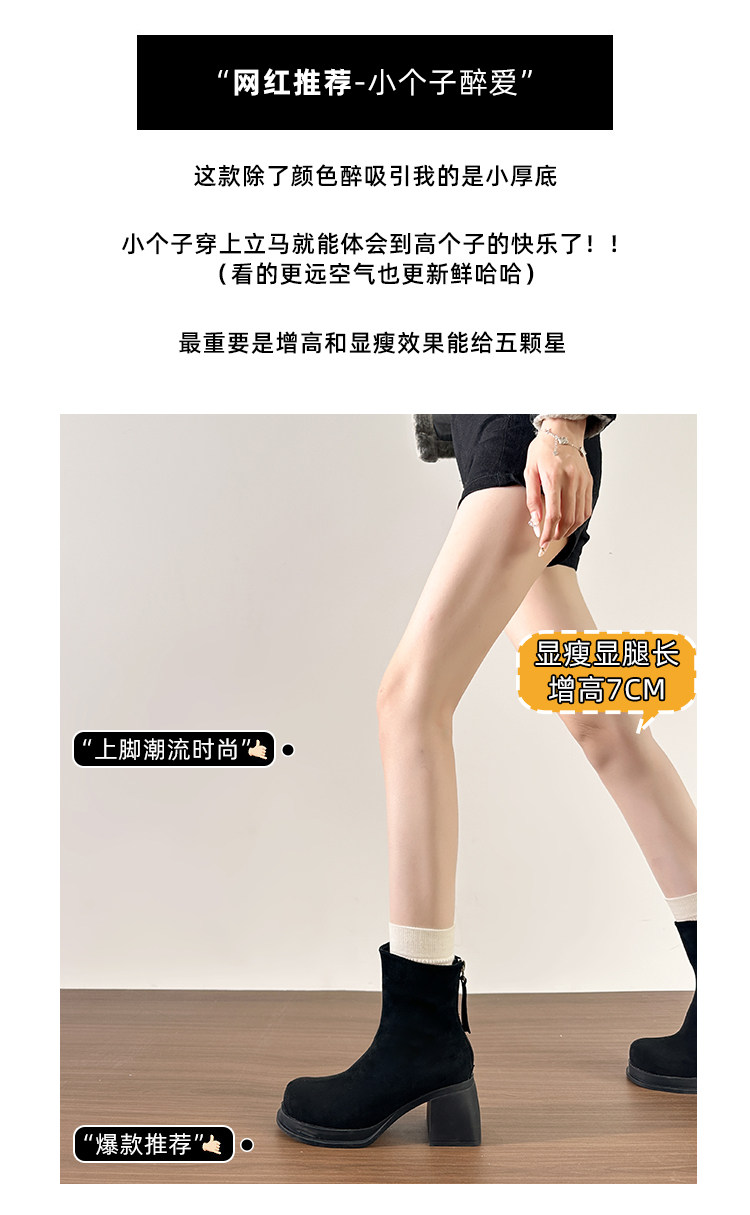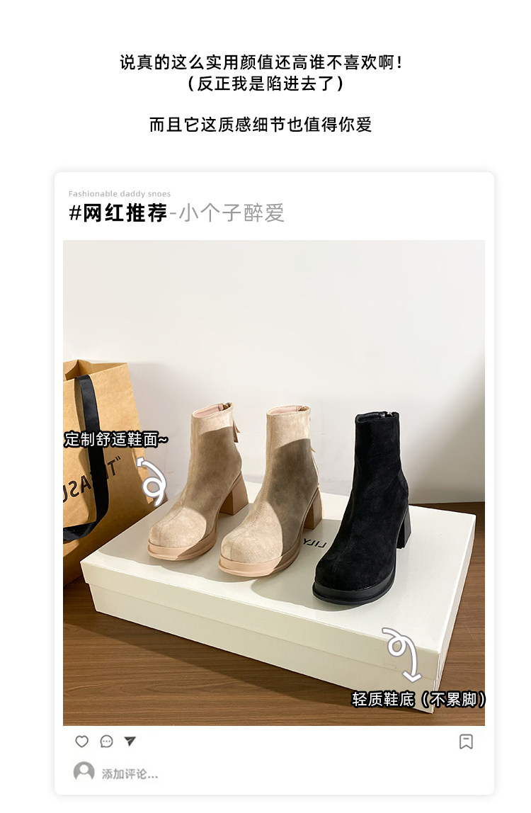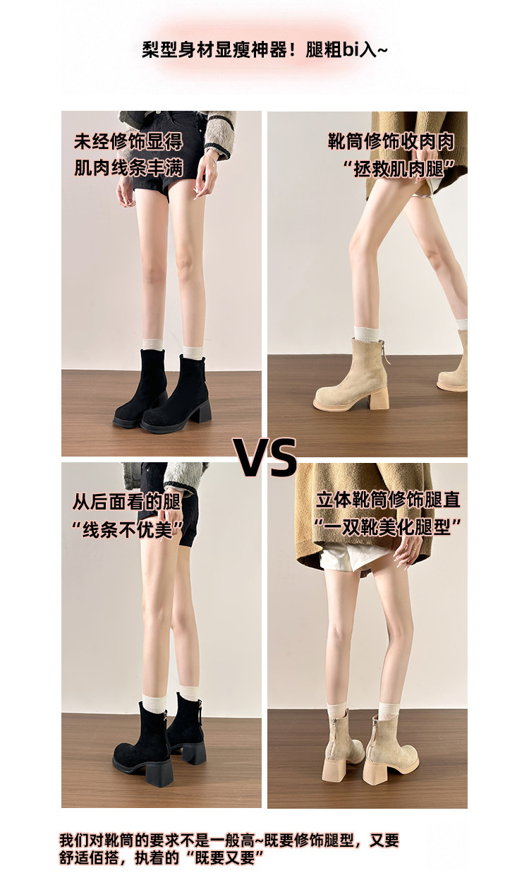 牛皮版~粗腿短靴女大筒圍加絨馬丁靴厚底高跟菸筒靴胖mm大碼靴子