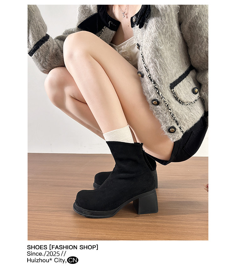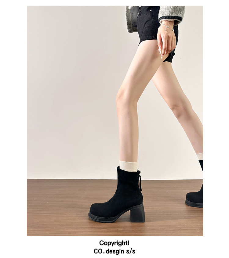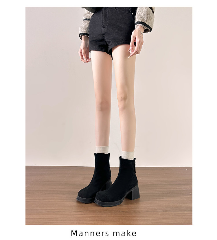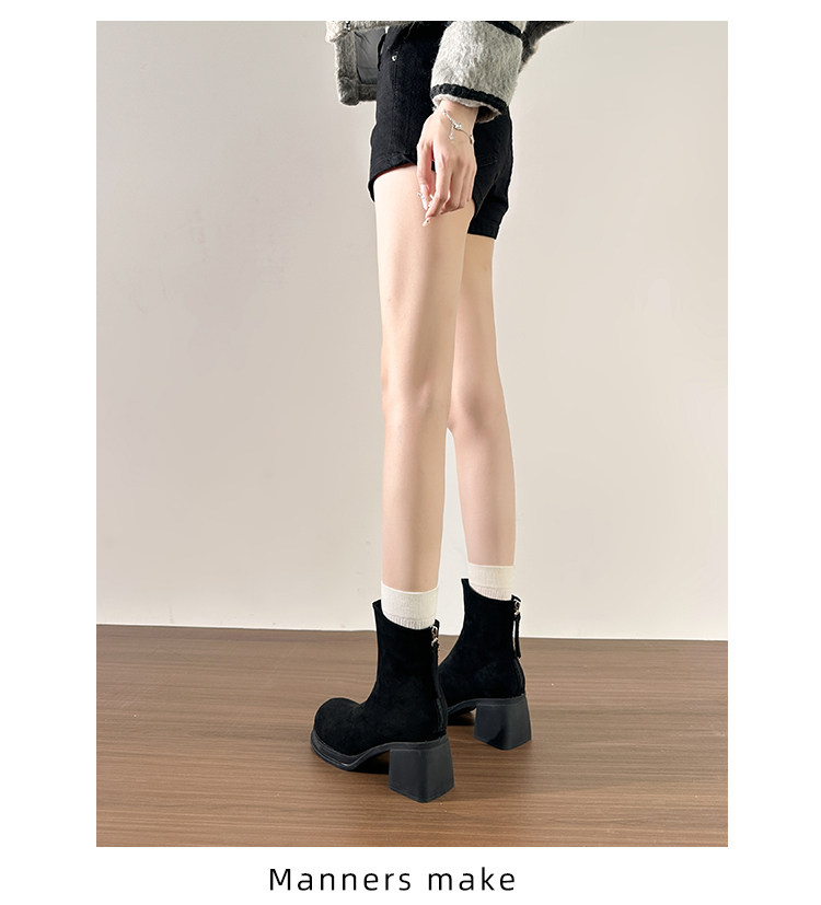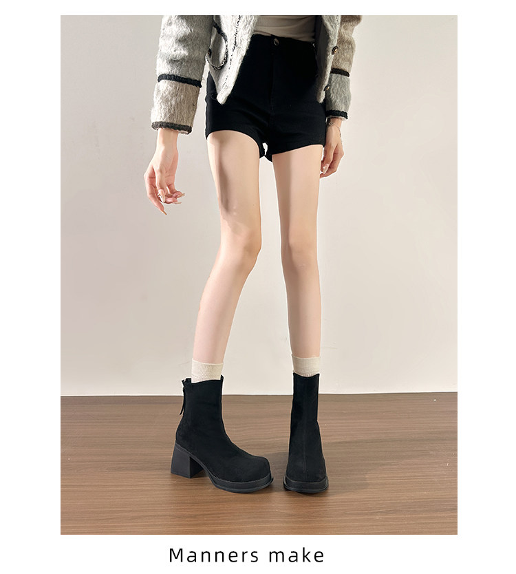 牛皮版~粗腿短靴女大筒圍加絨馬丁靴厚底高跟菸筒靴胖mm大碼靴子