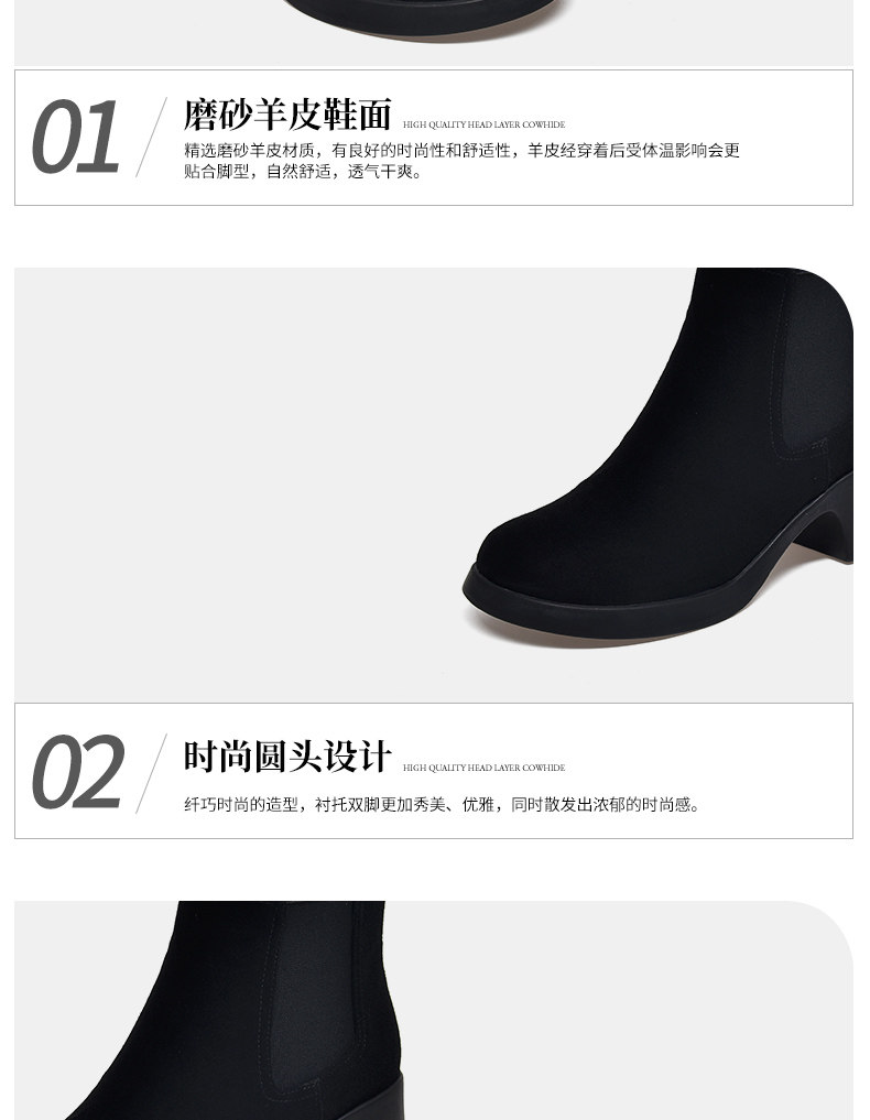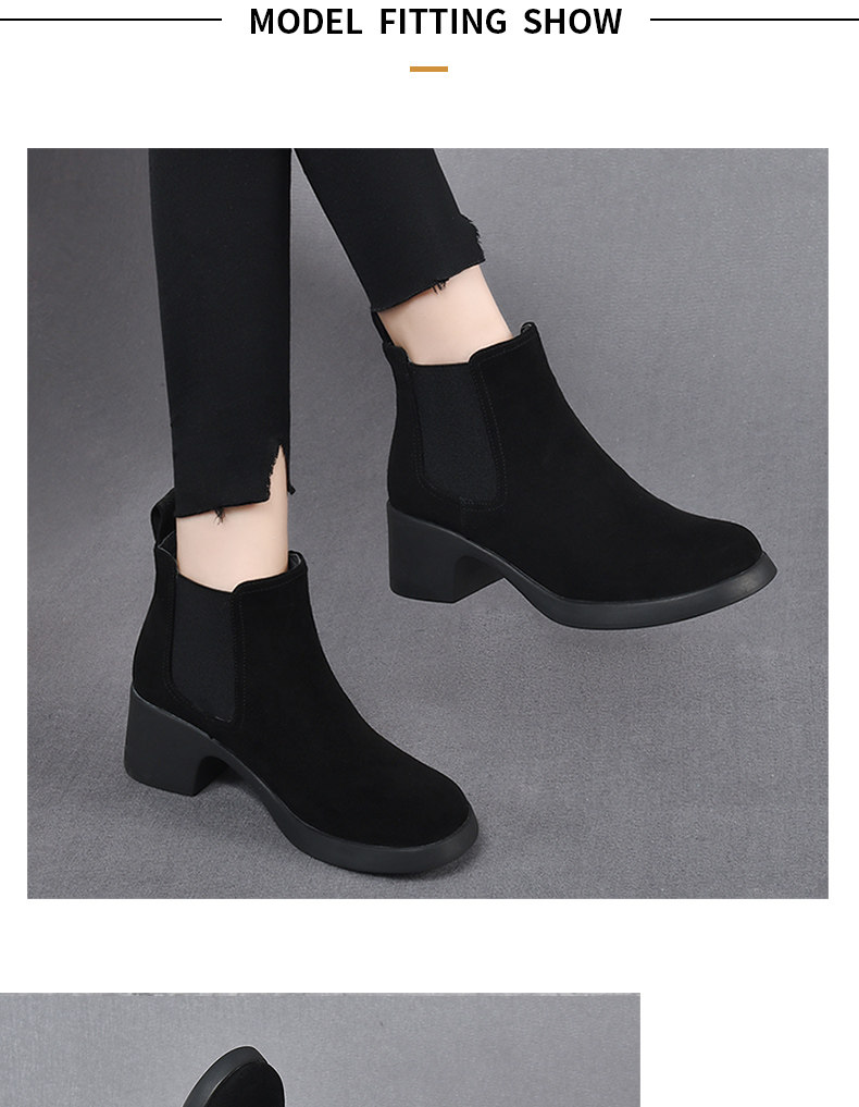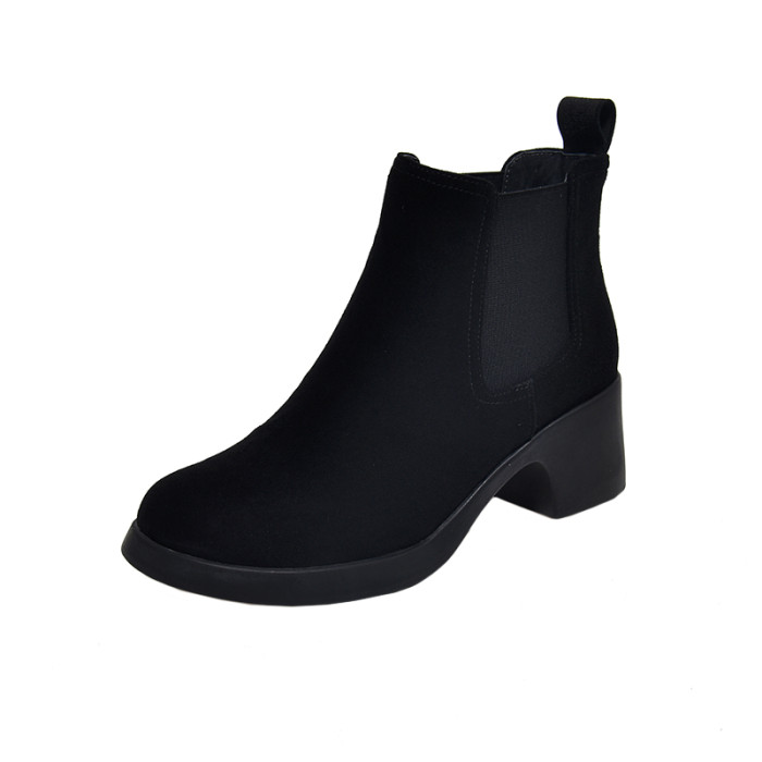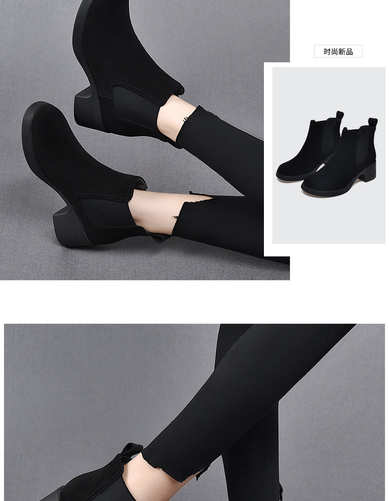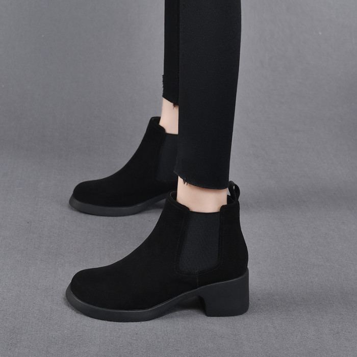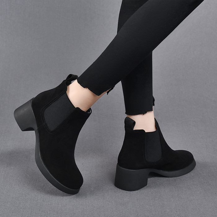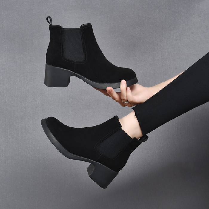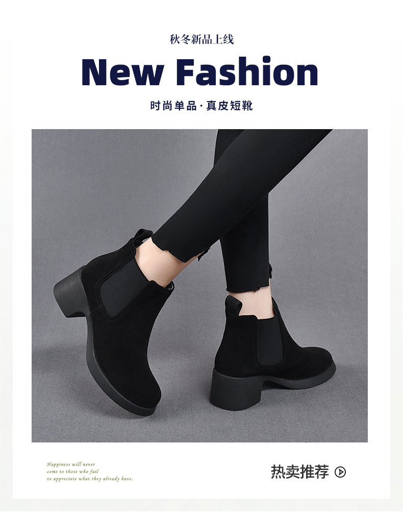 真皮切爾西短靴女春秋單靴粗跟2026新款高跟菸筒靴女英倫風馬丁靴
