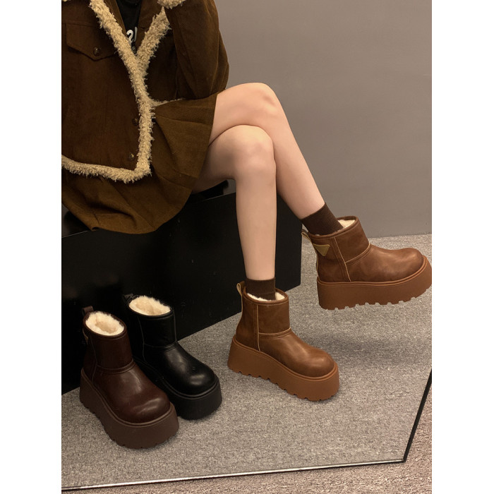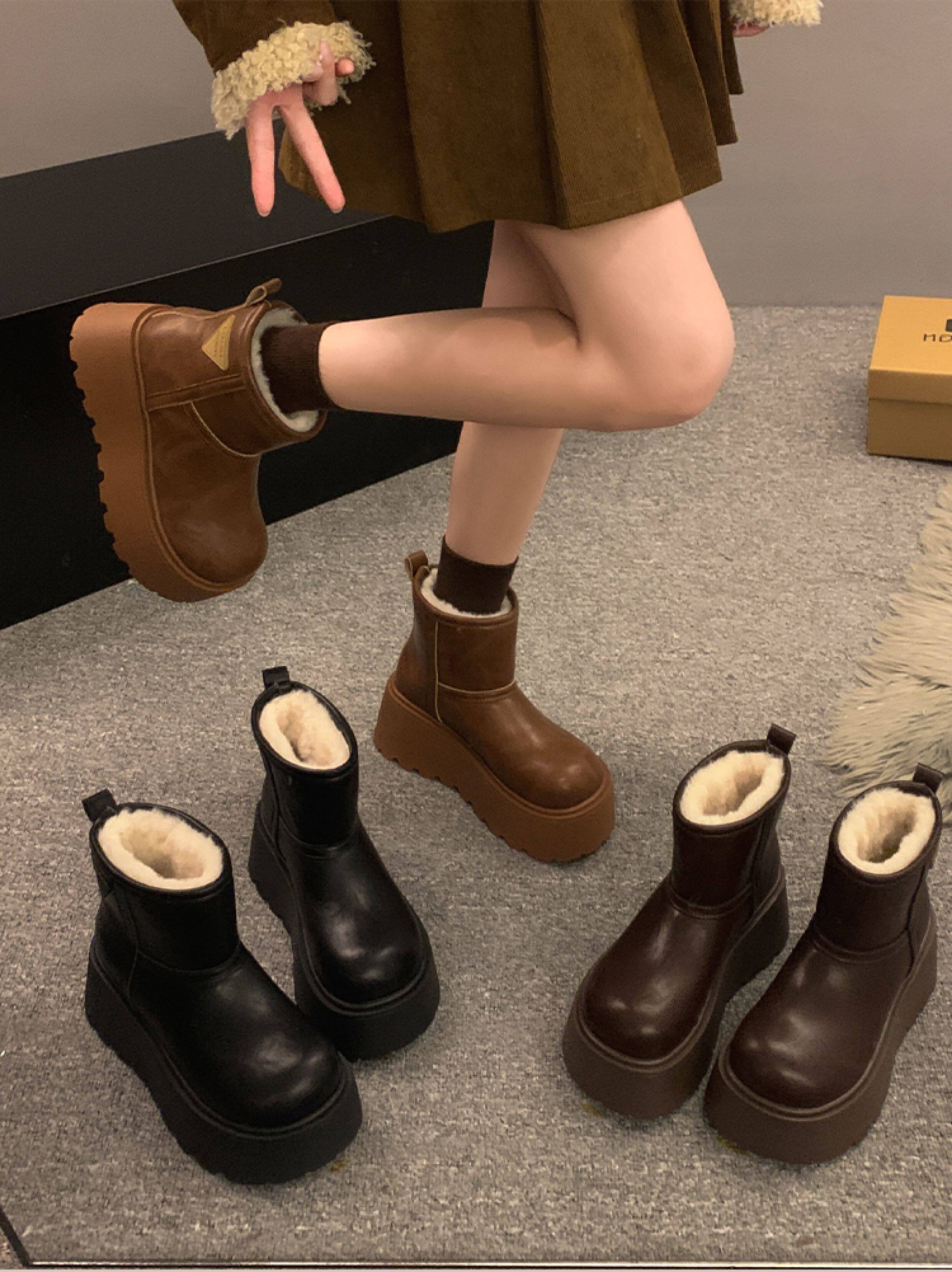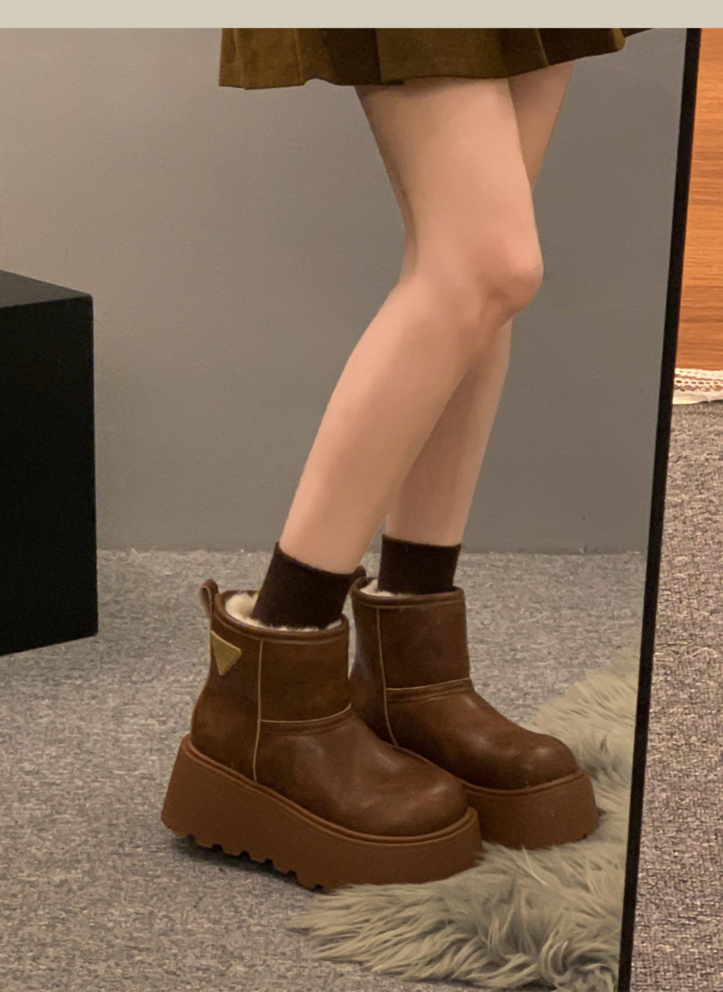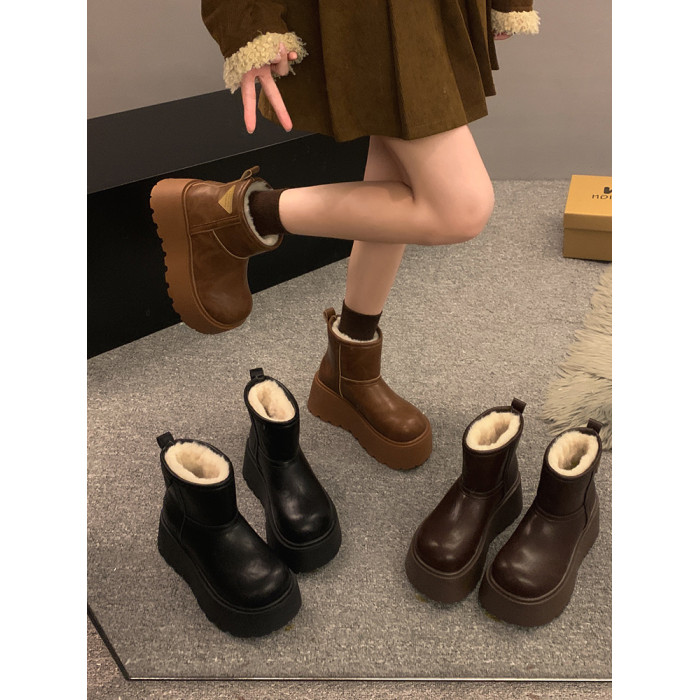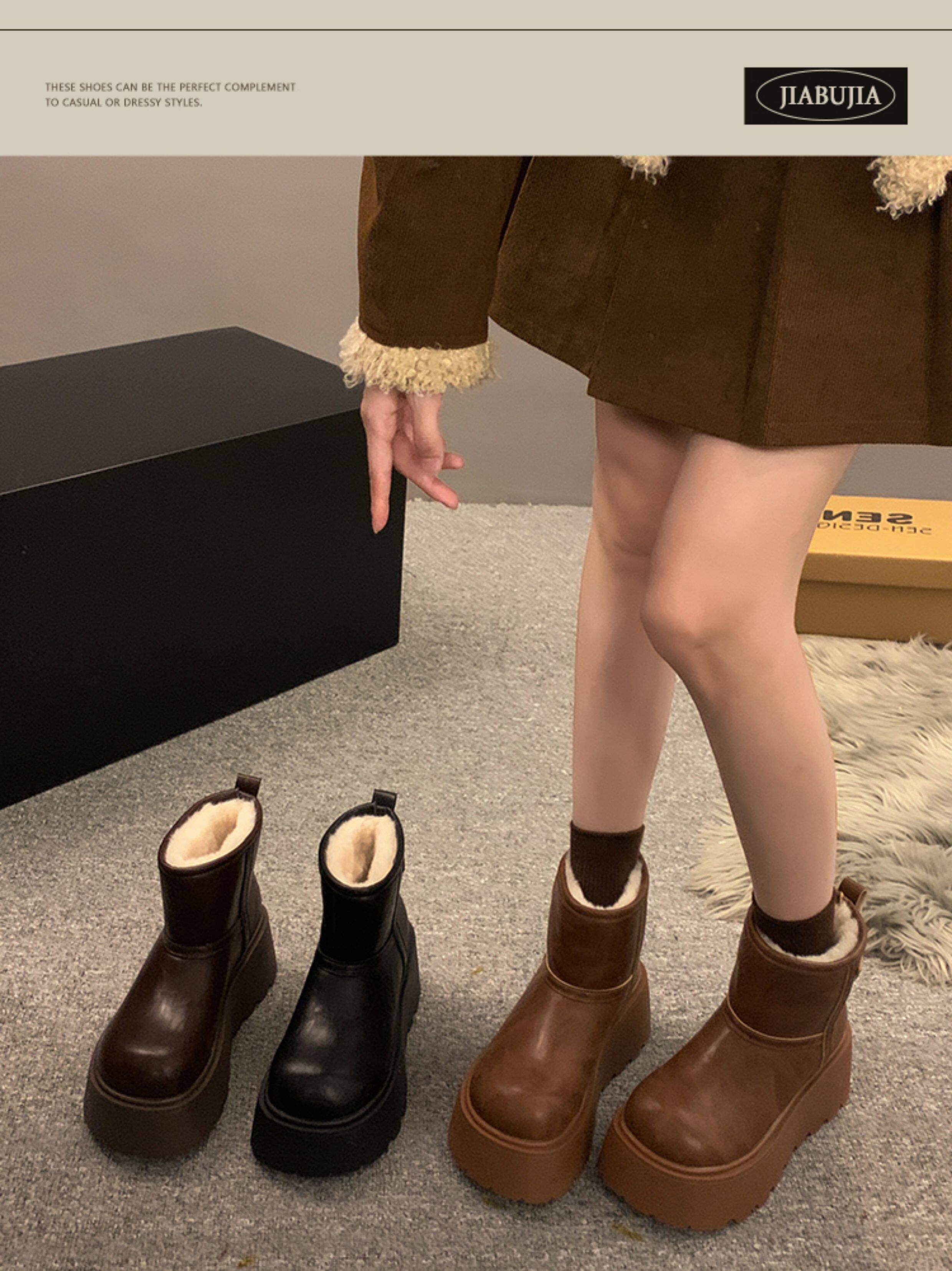 賈不假雪地靴女2026春季新款小個子皮毛一體厚底短靴增高保暖棉靴