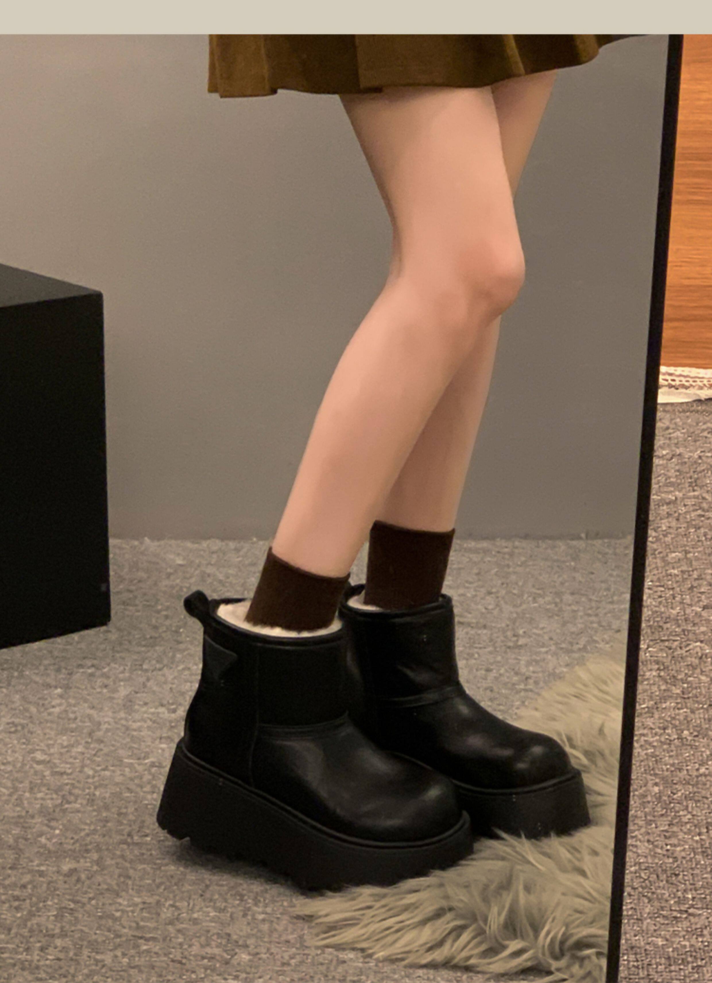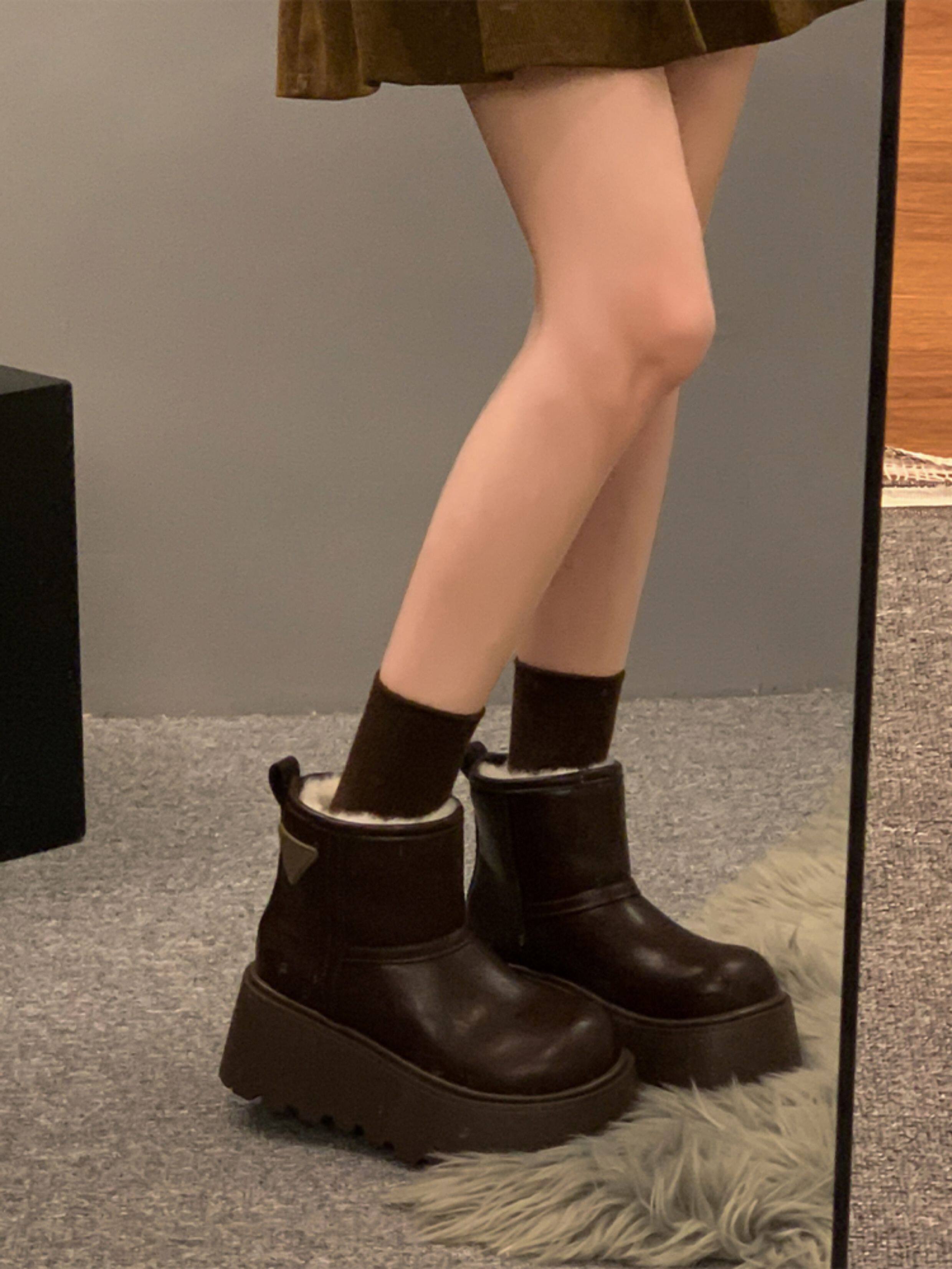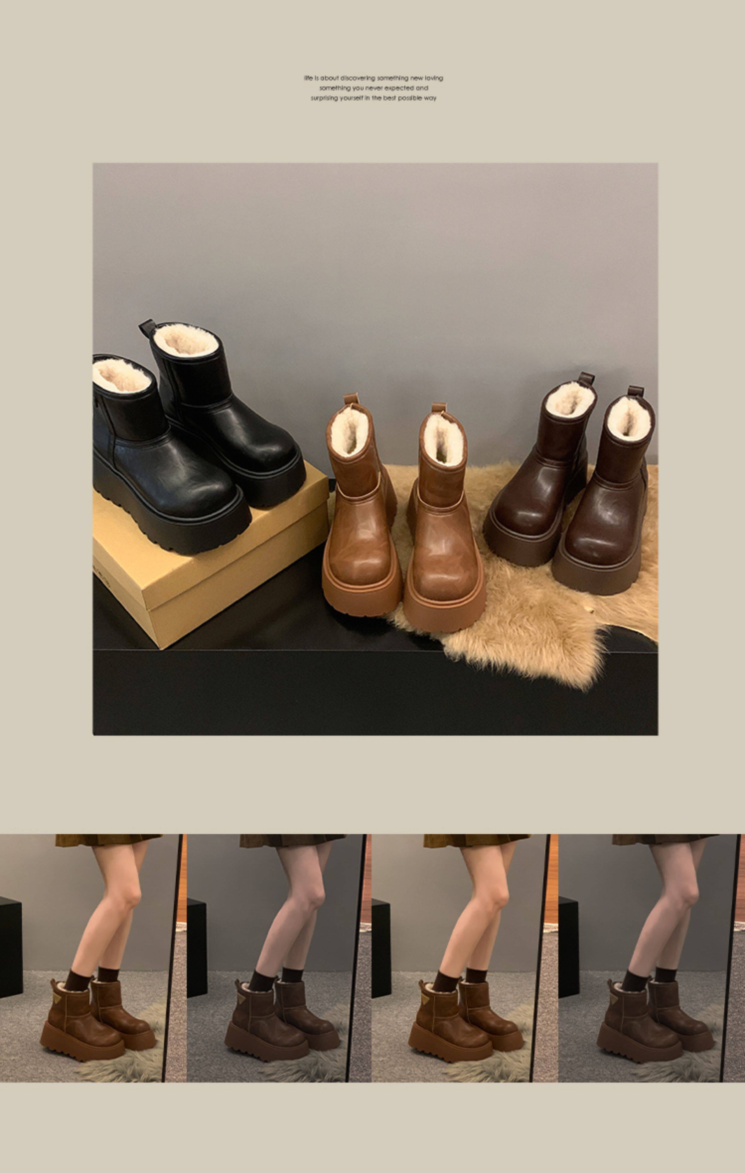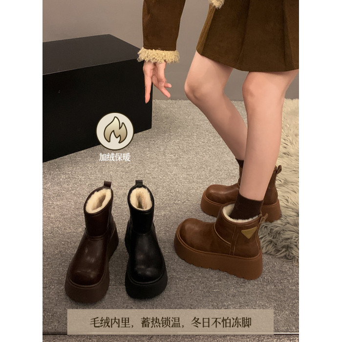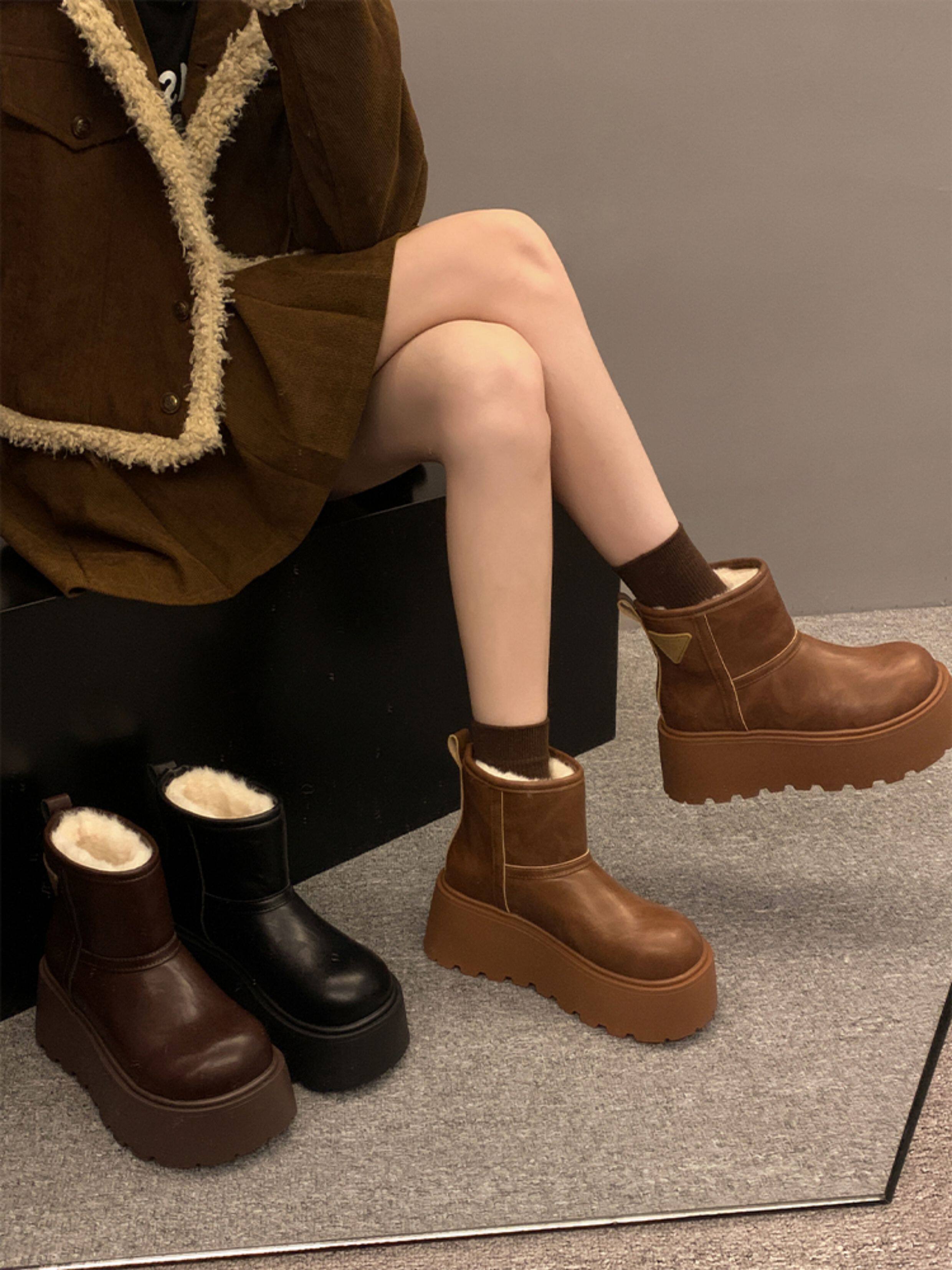 賈不假雪地靴女2026春季新款小個子皮毛一體厚底短靴增高保暖棉靴