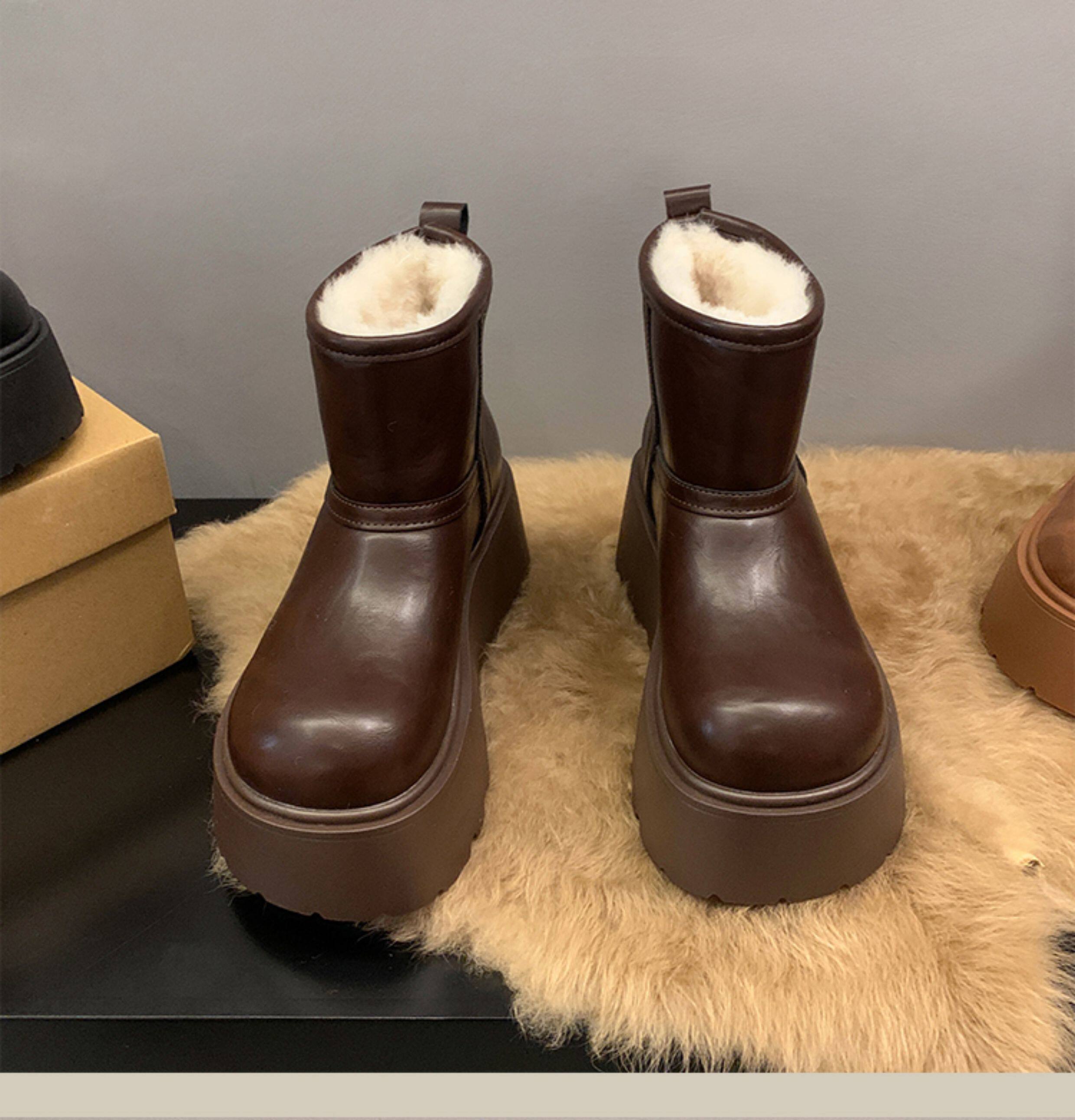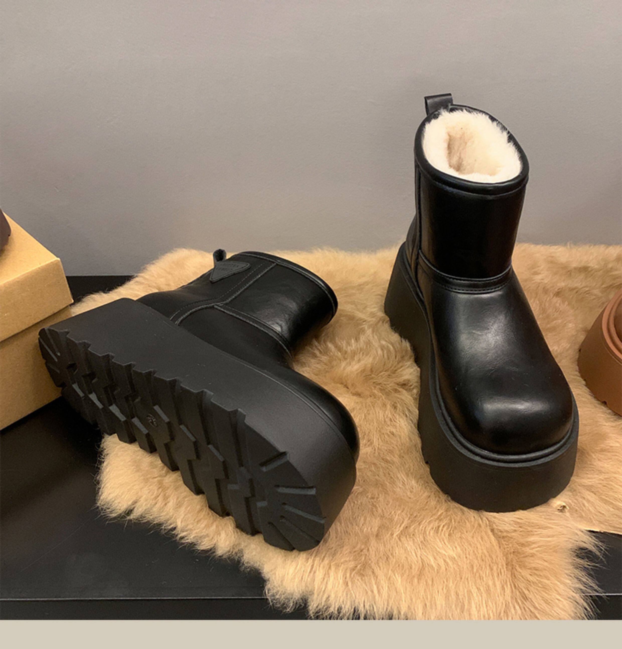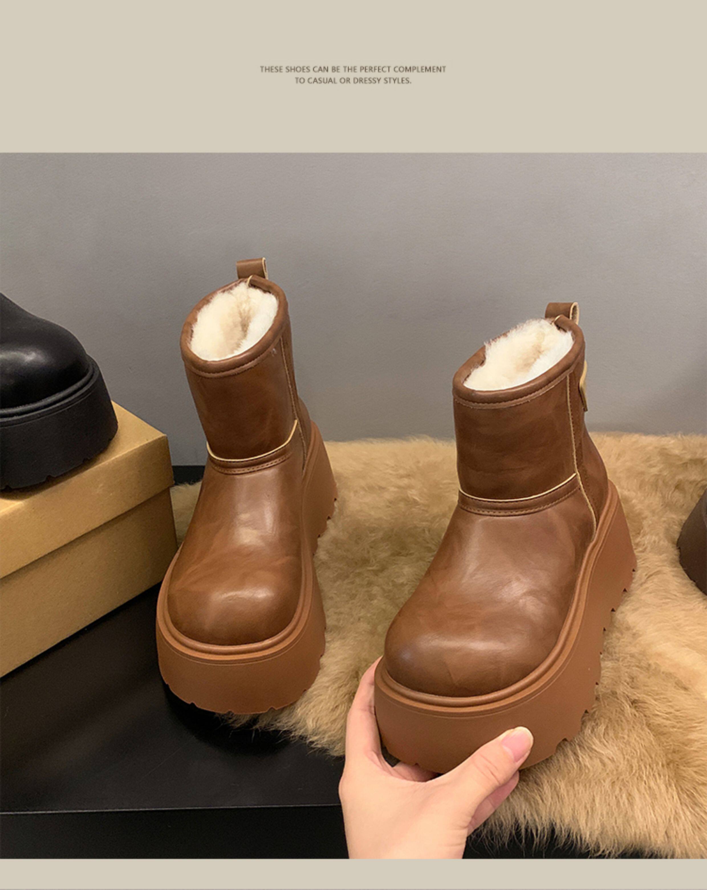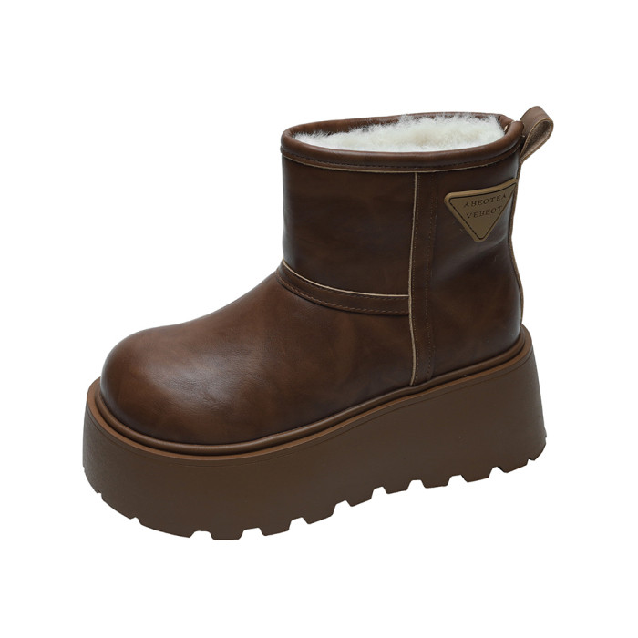 賈不假雪地靴女2026春季新款小個子皮毛一體厚底短靴增高保暖棉靴