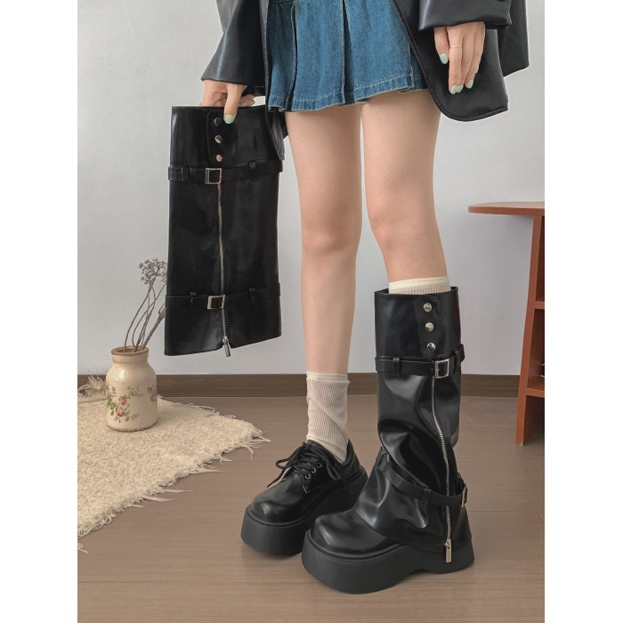 黑色復古英倫風厚底長筒靴女款2025新款秋冬百搭配裙子增高長靴子