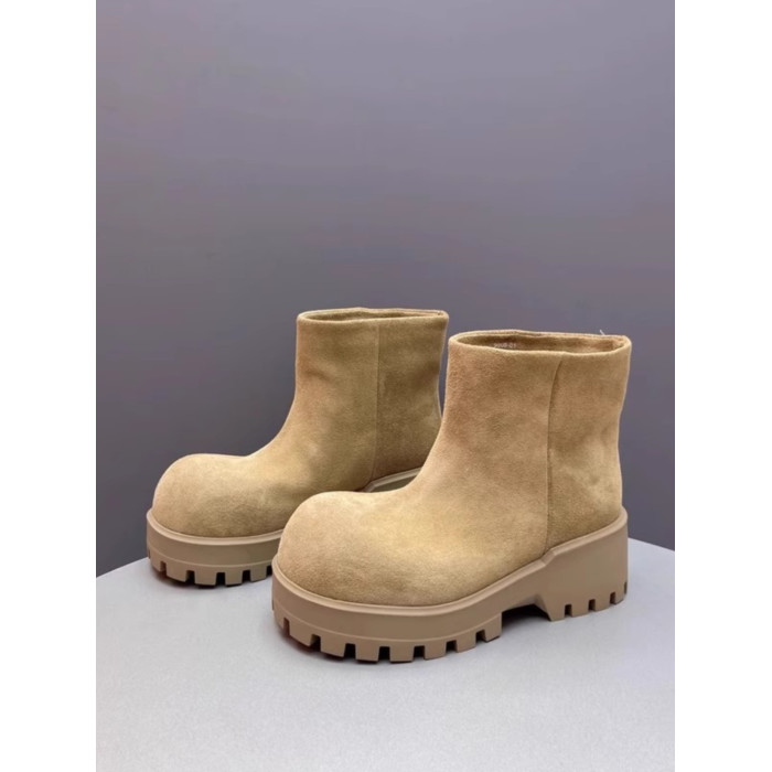 大頭復古切爾西短靴女2026新款真皮厚底增高菸筒靴炸街松糕馬丁靴