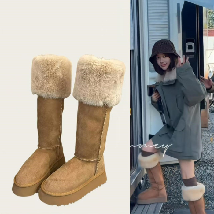 趙露思同款厚底冬天雪地靴長筒高筒長靴女2025新款顯高顯瘦長筒靴