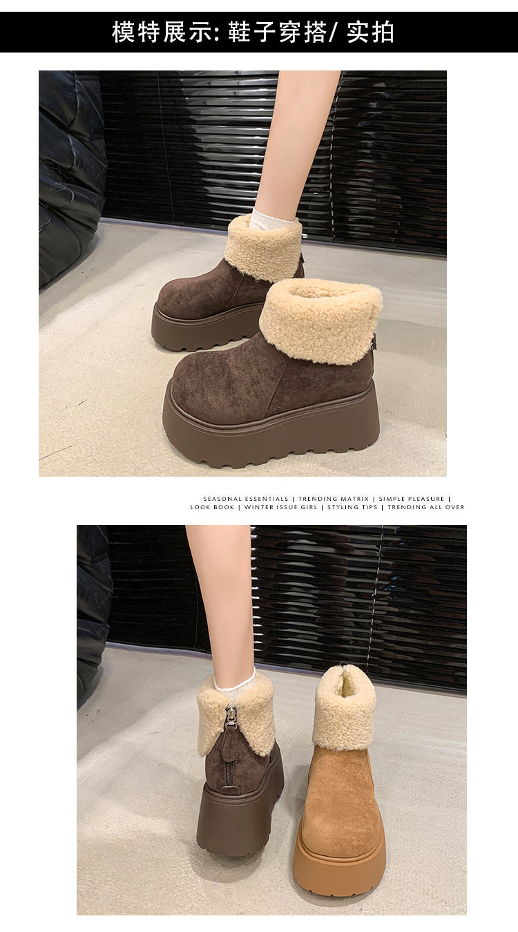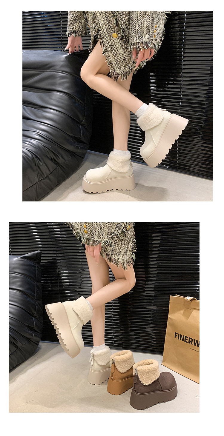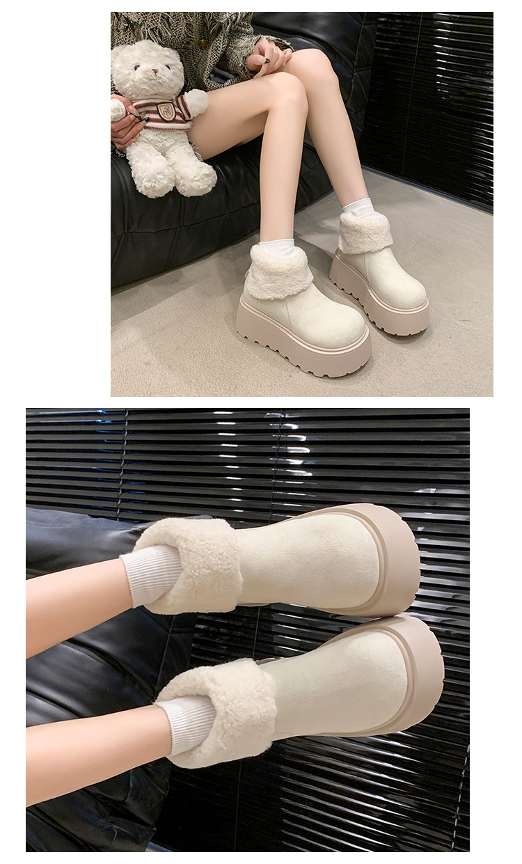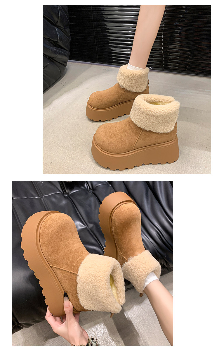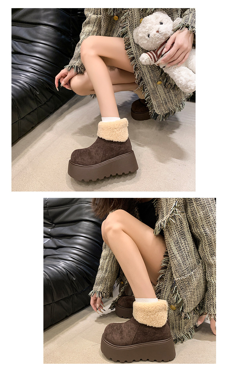厚底增高雪地靴女2026新款冬季加絨保暖毛毛短靴時尚醜萌大頭棉鞋