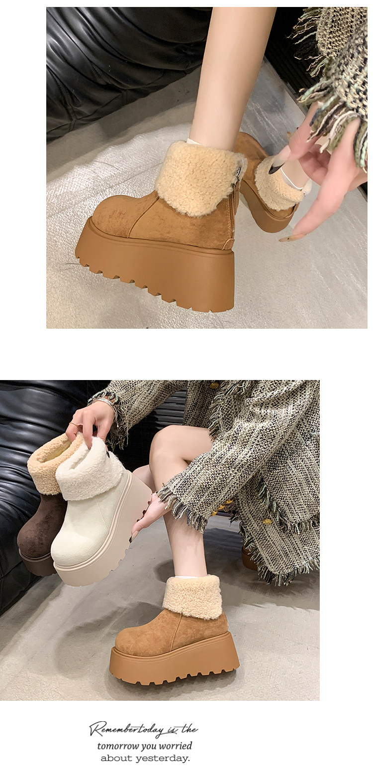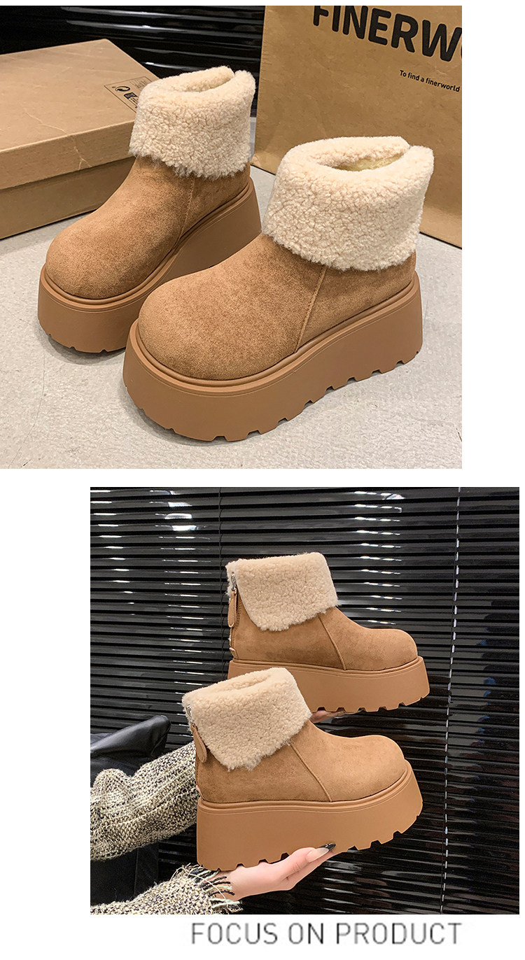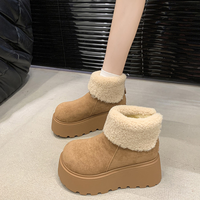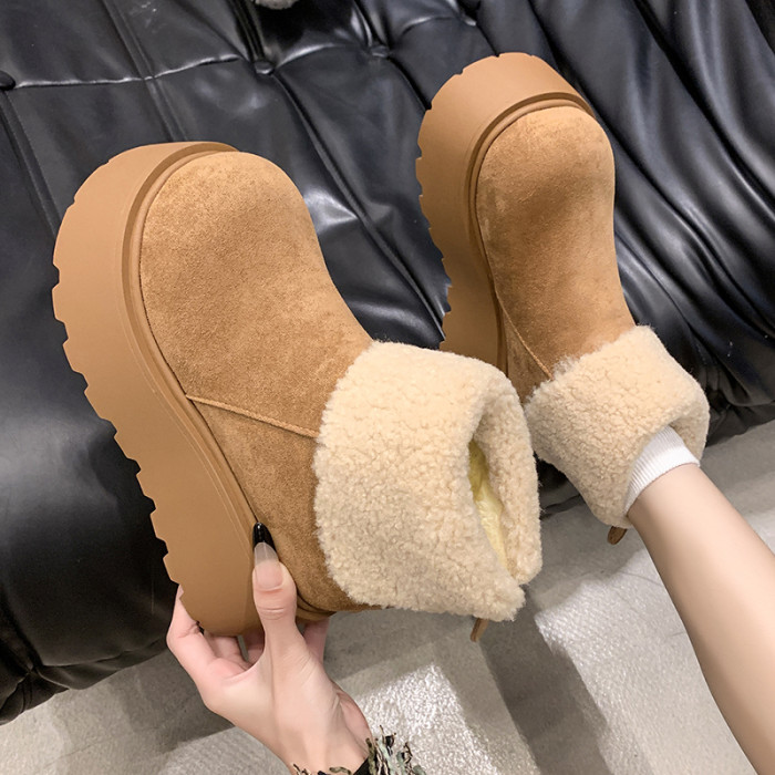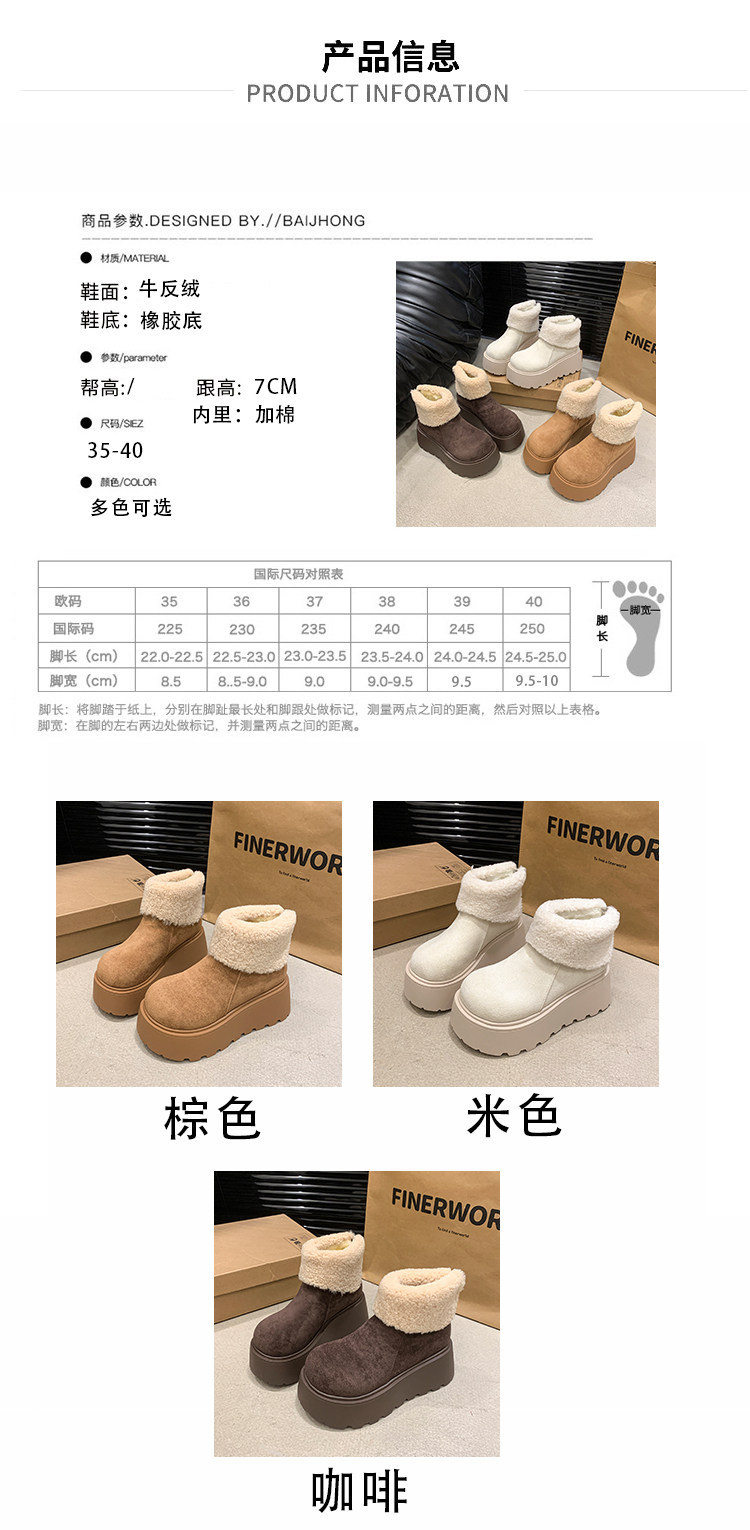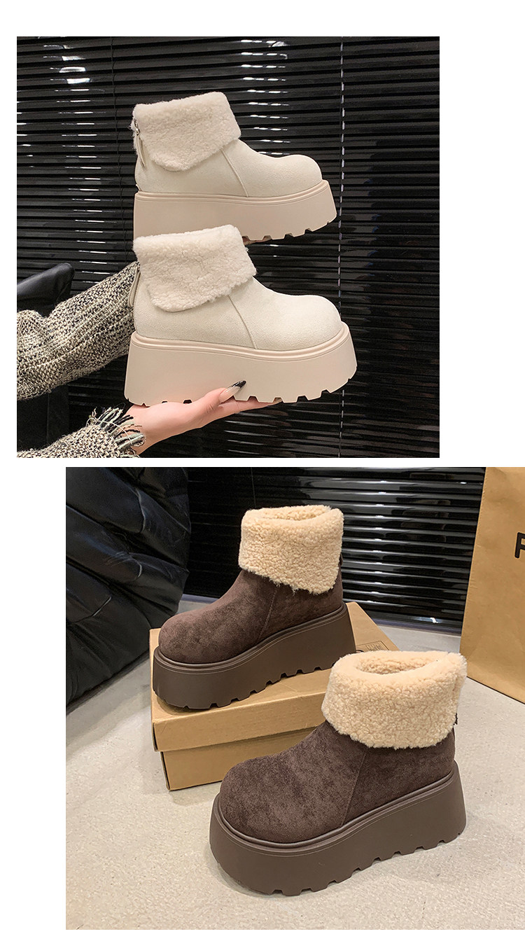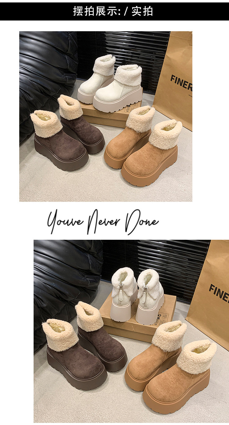 厚底增高雪地靴女2026新款冬季加絨保暖毛毛短靴時尚醜萌大頭棉鞋