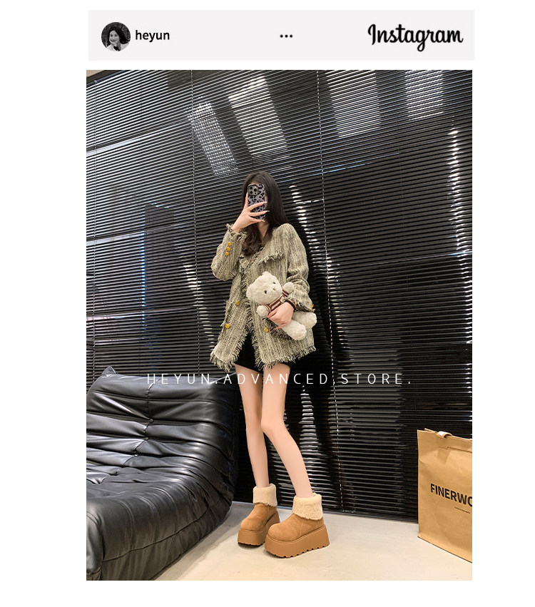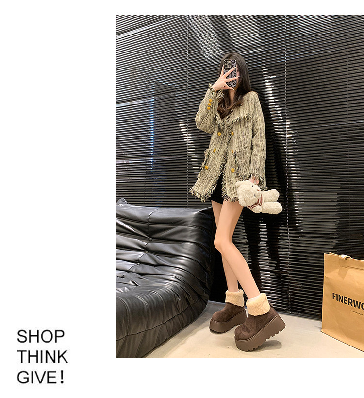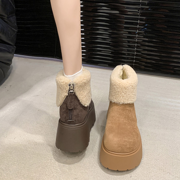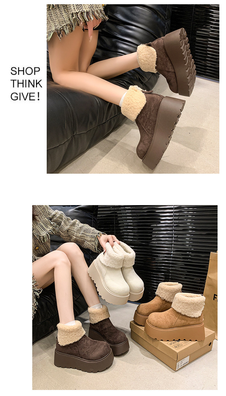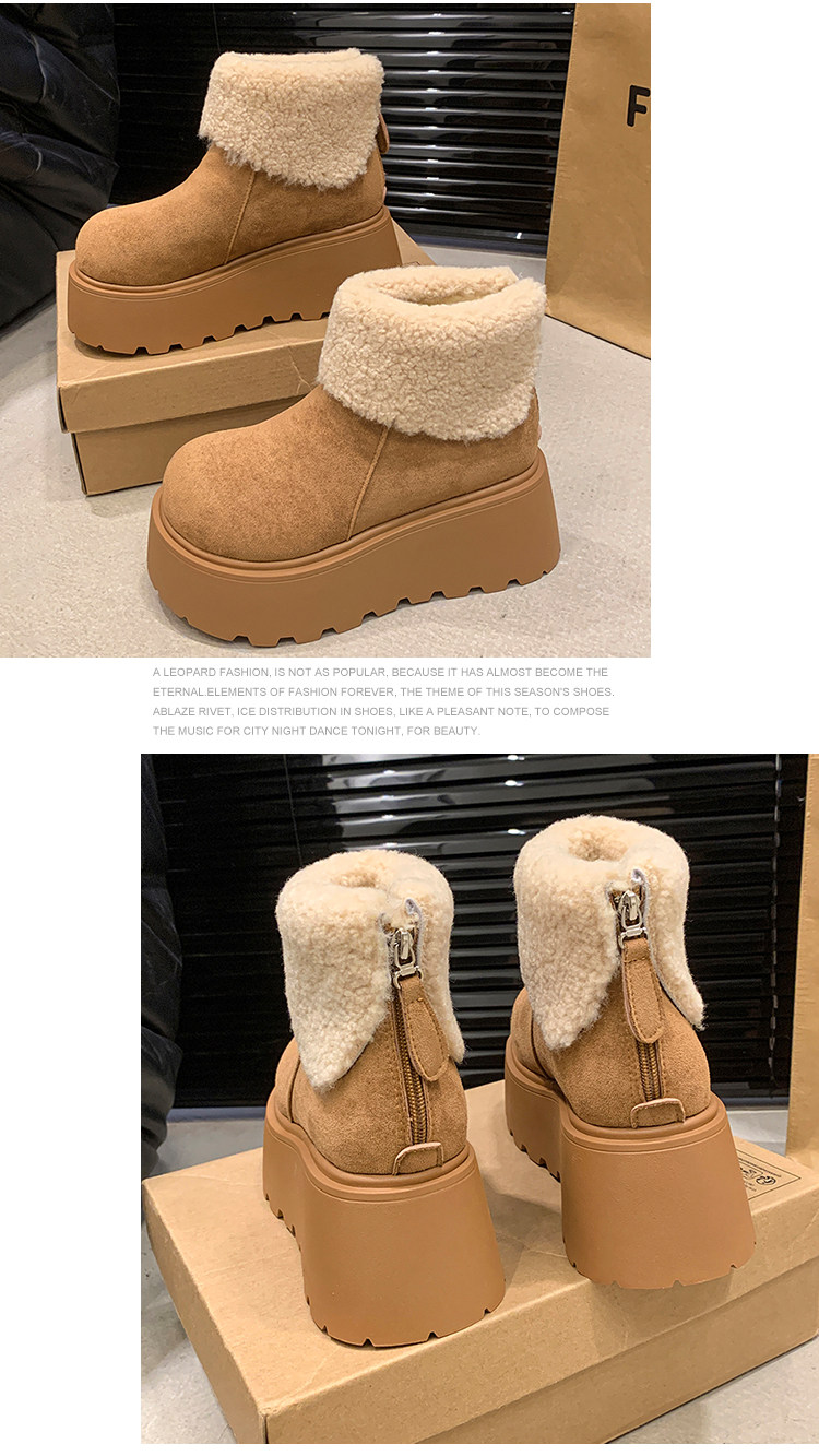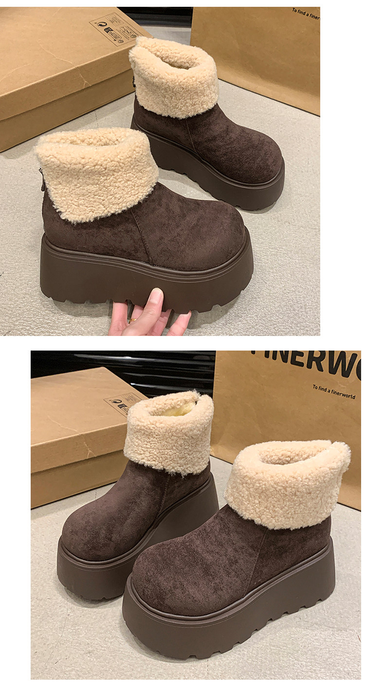 厚底增高雪地靴女2026新款冬季加絨保暖毛毛短靴時尚醜萌大頭棉鞋