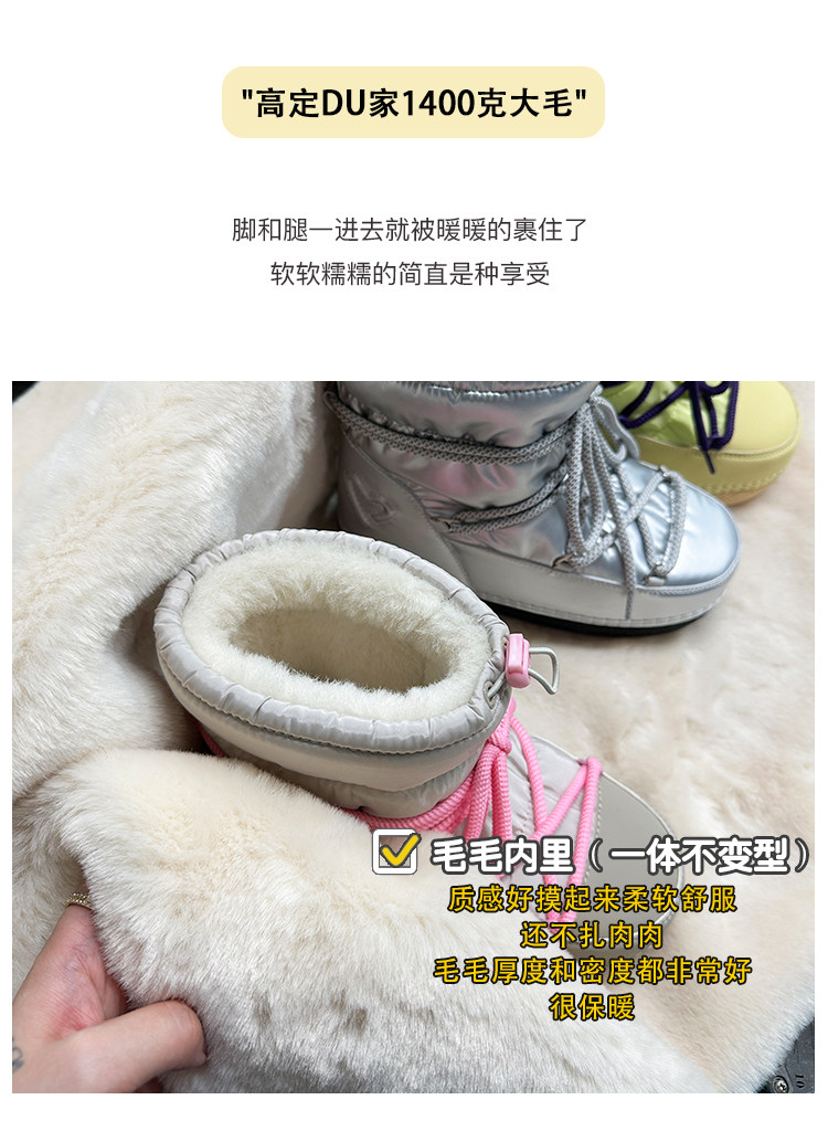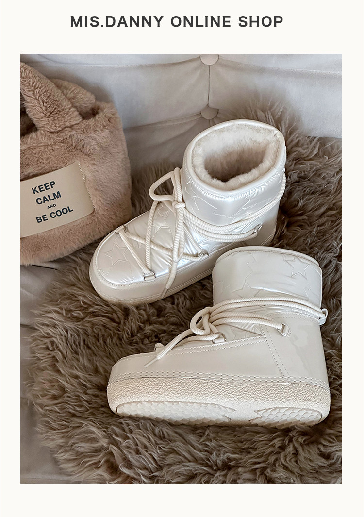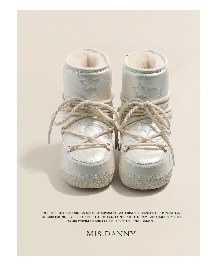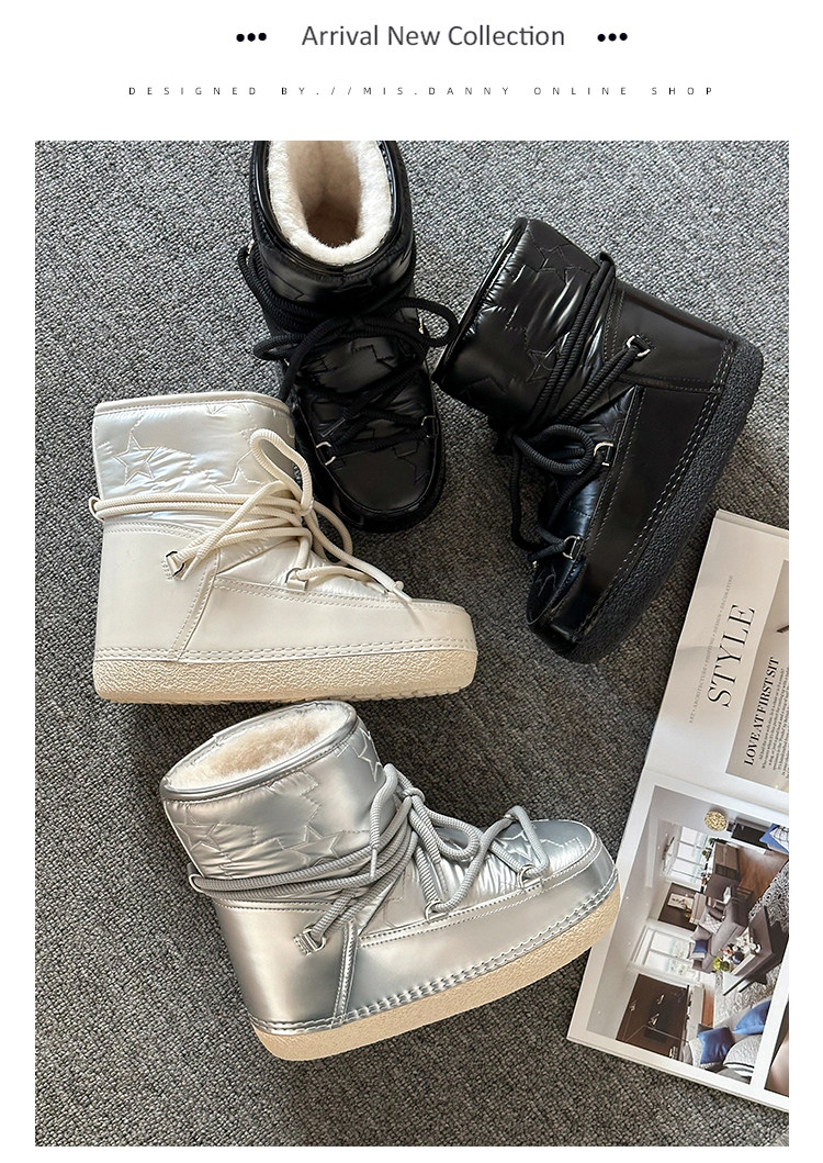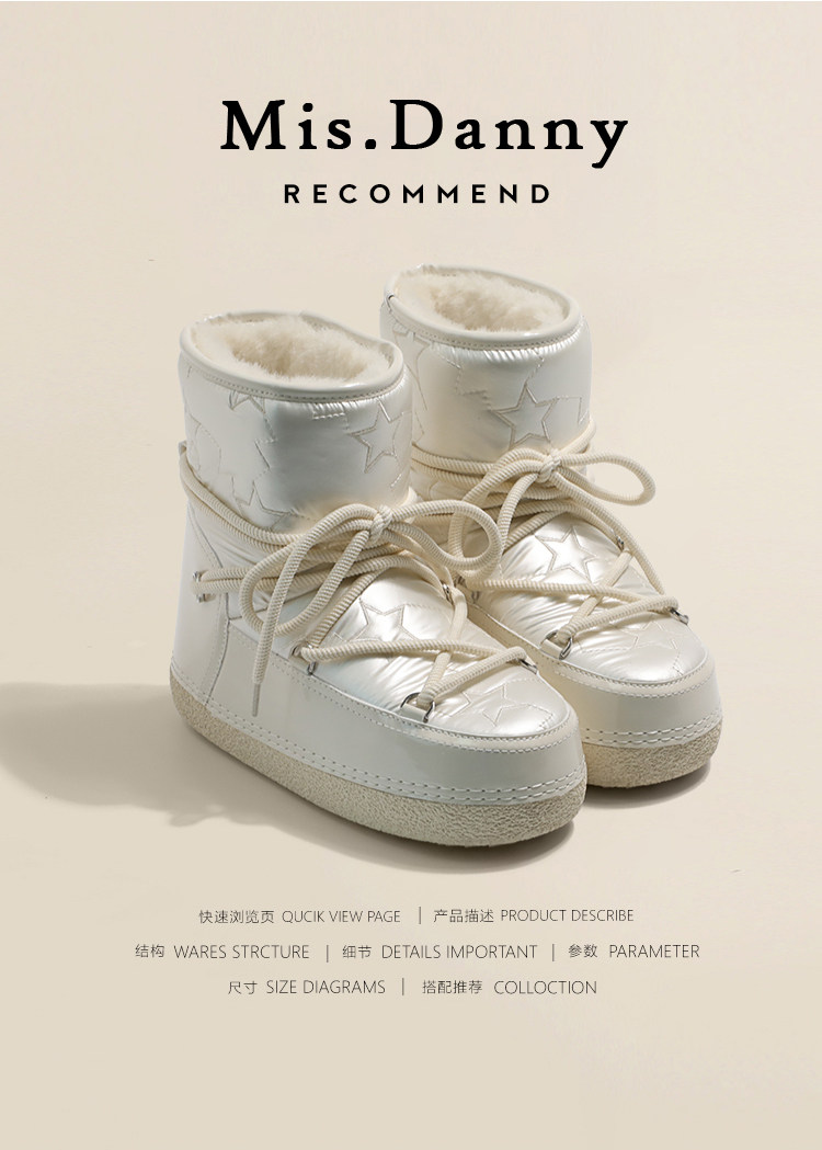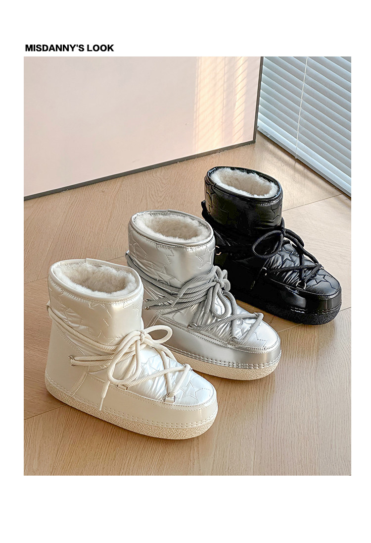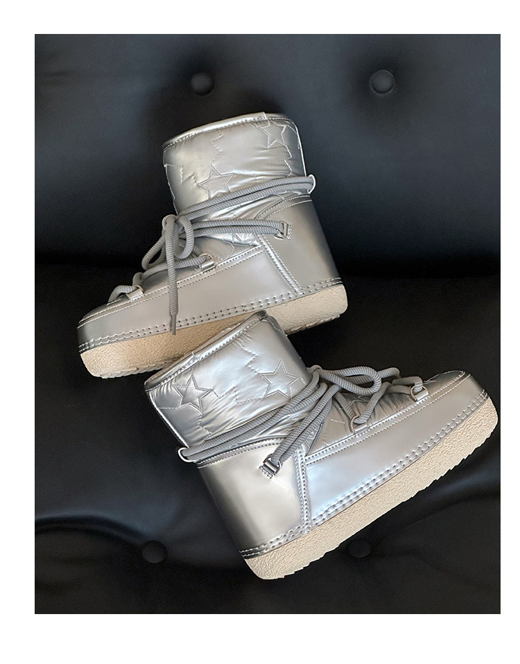 Misdanny~防水防滑雪地靴女2025冬軟底銀色月亮短靴加絨加厚棉鞋