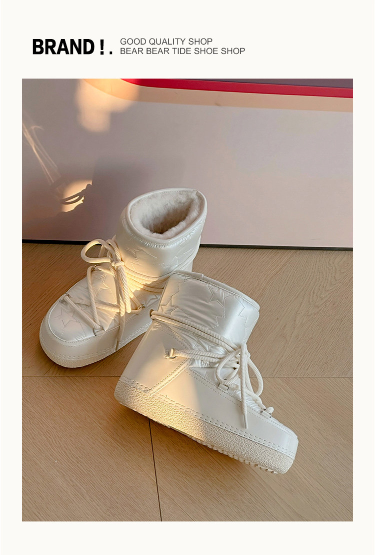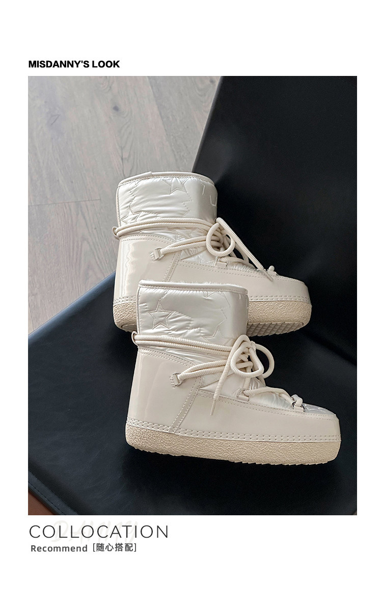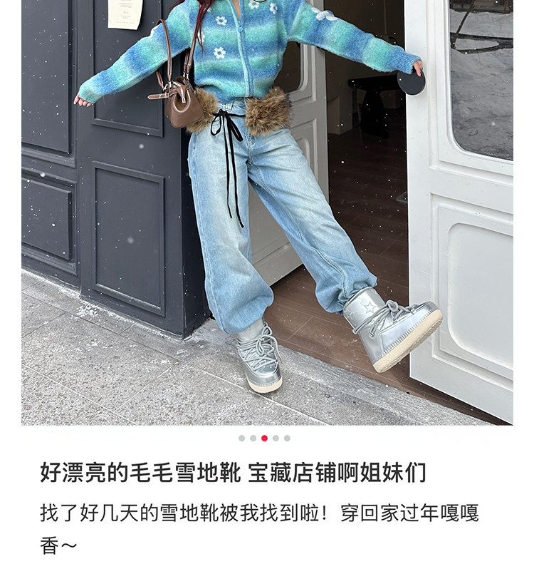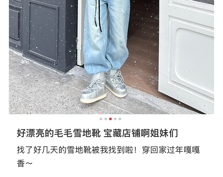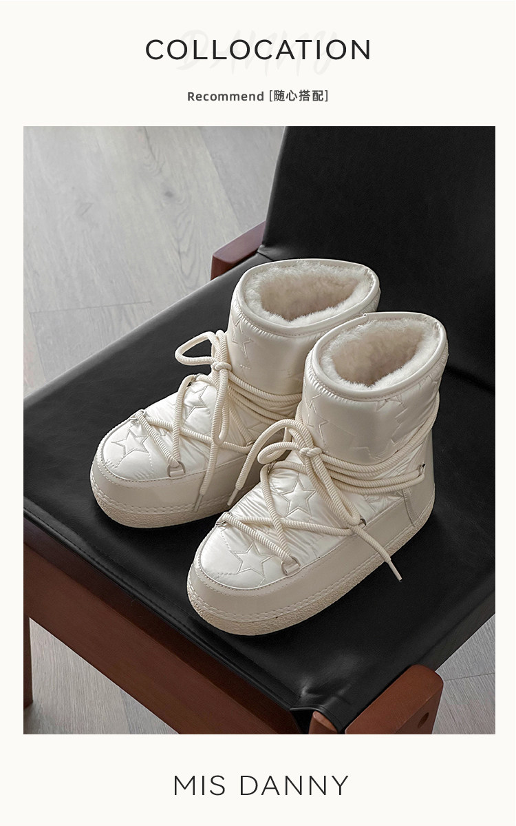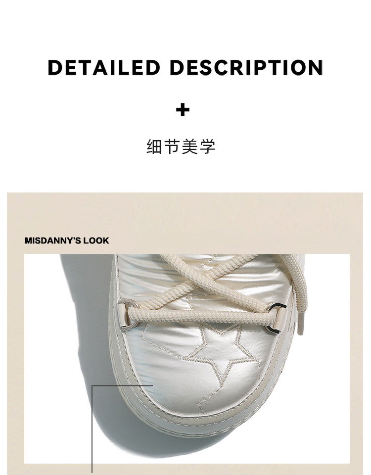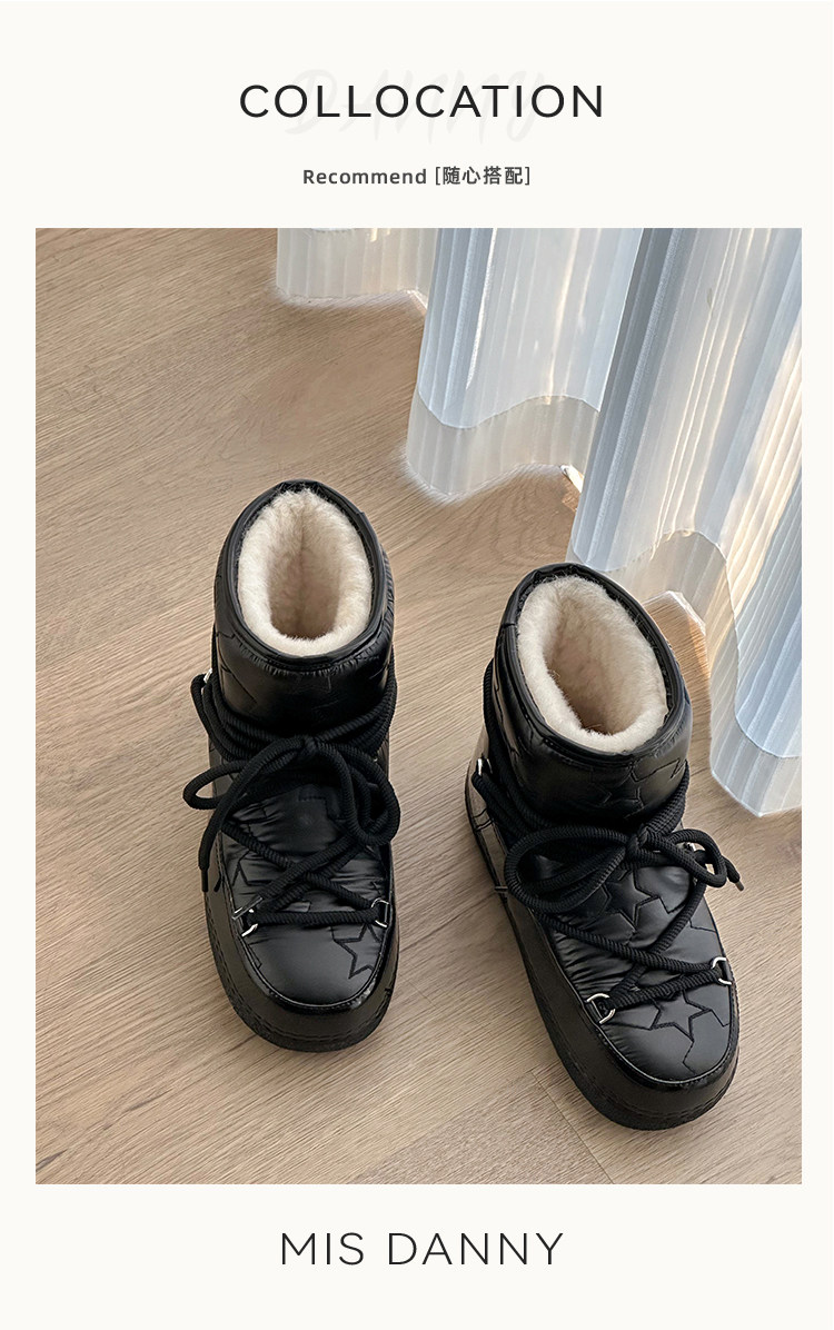 Misdanny~防水防滑雪地靴女2025冬軟底銀色月亮短靴加絨加厚棉鞋