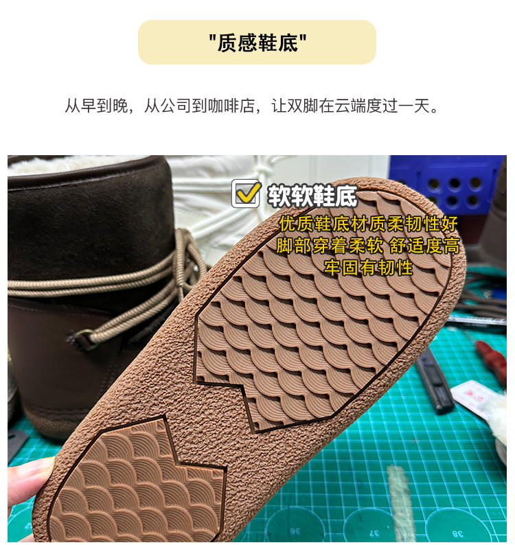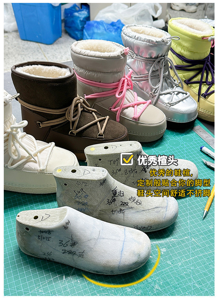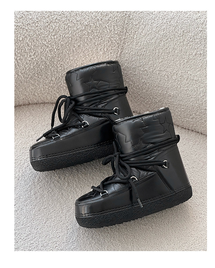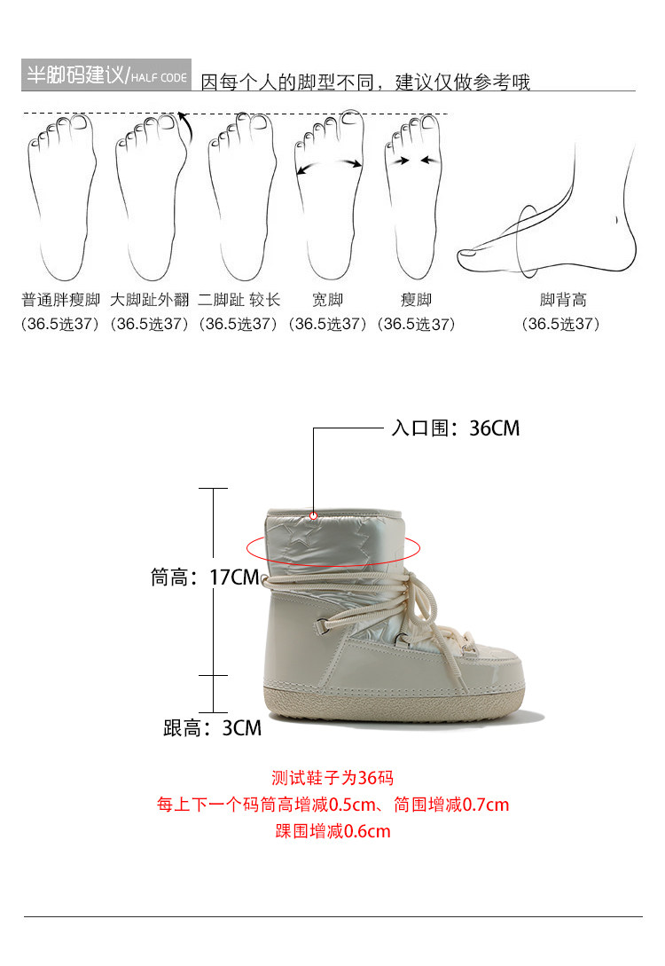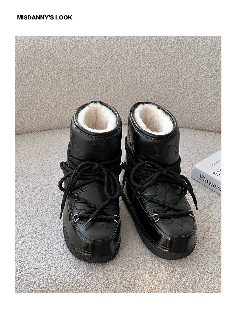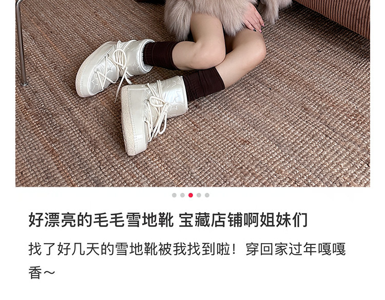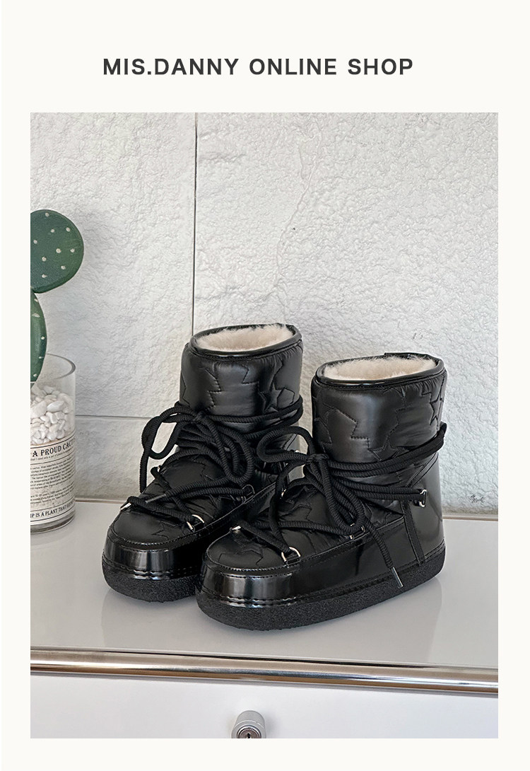 Misdanny~防水防滑雪地靴女2025冬軟底銀色月亮短靴加絨加厚棉鞋