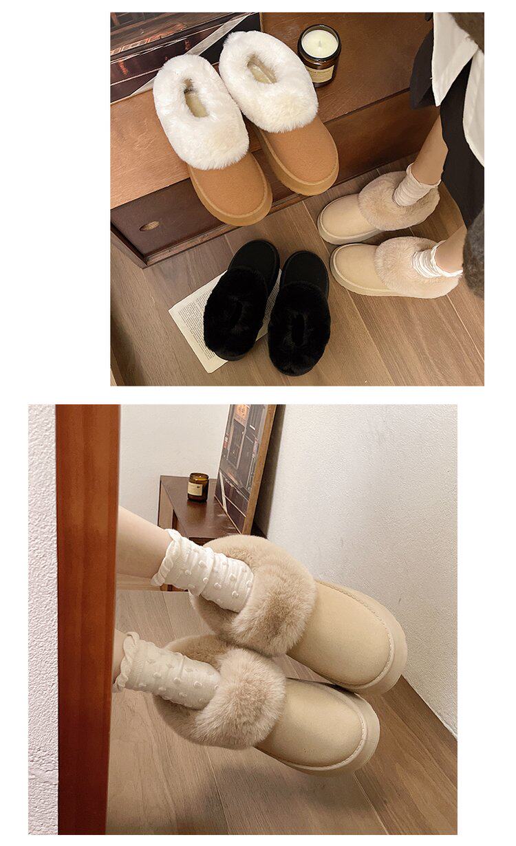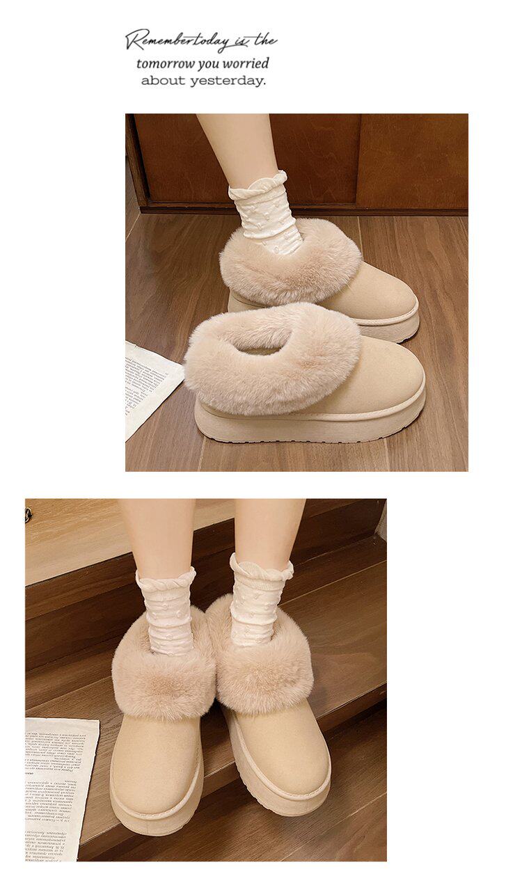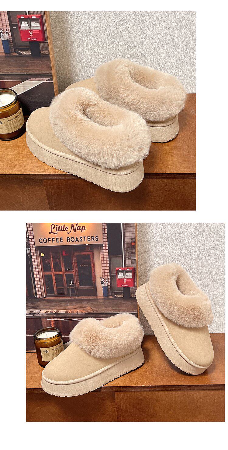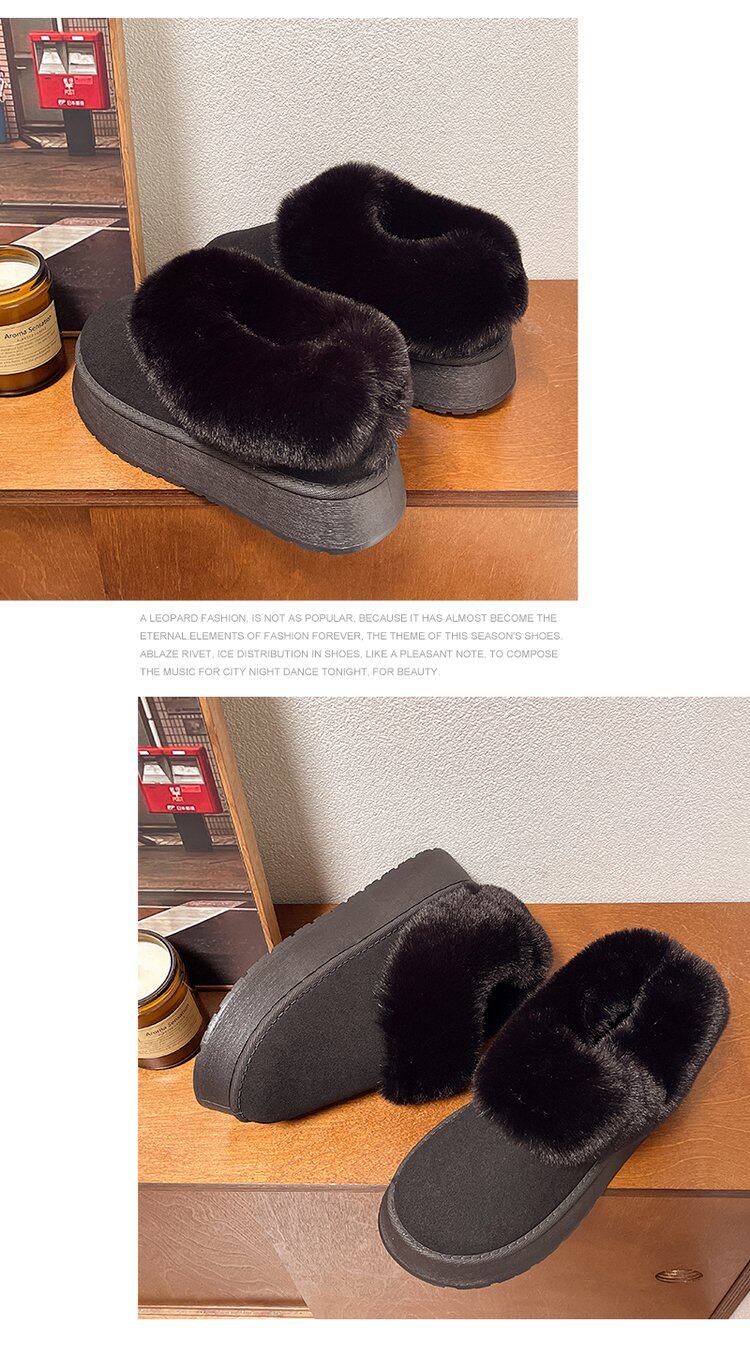 毛毛雪地靴女冬加絨加厚皮毛一體短靴厚底一腳蹬居家保暖麵包棉鞋