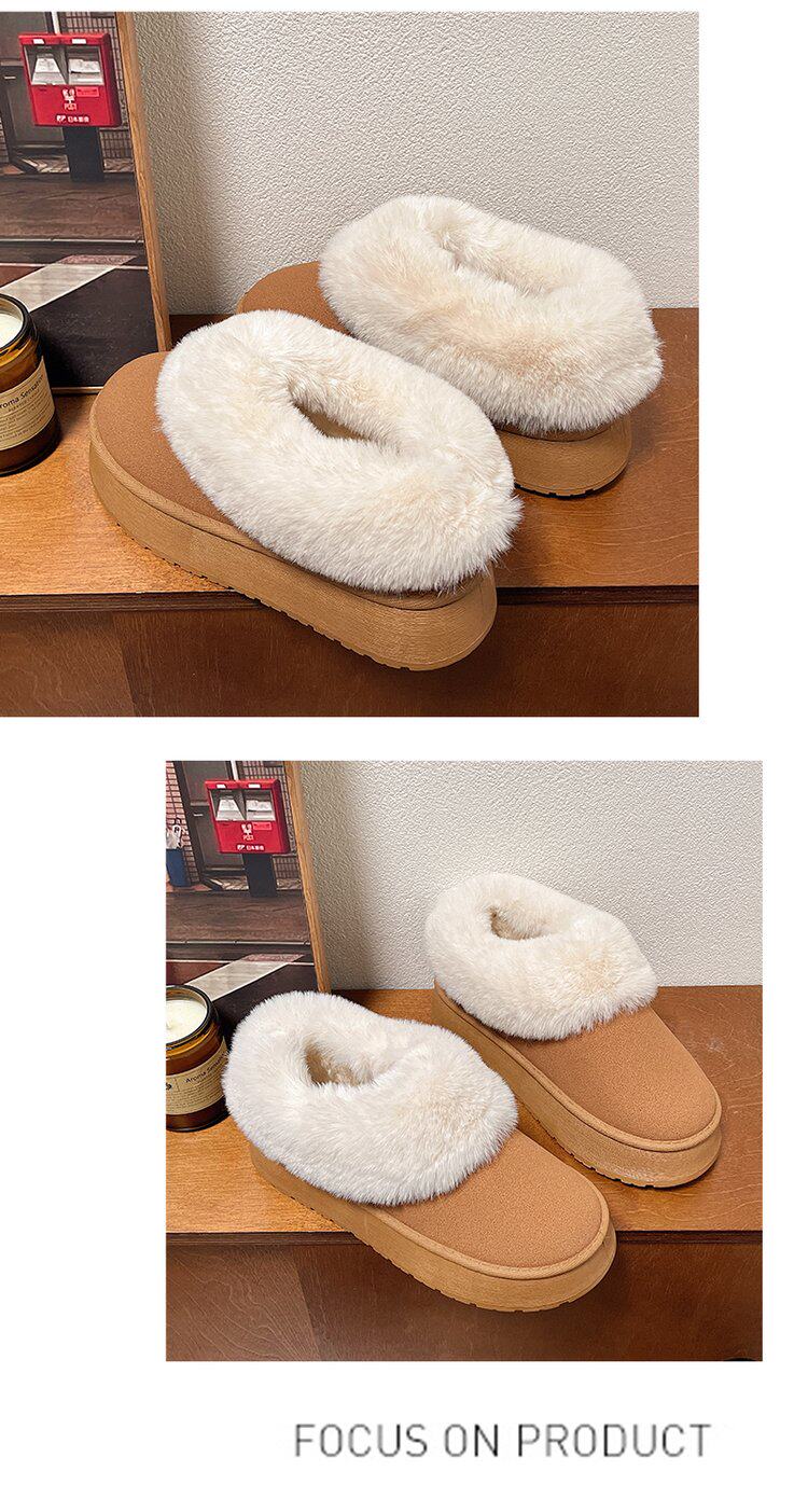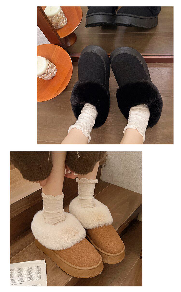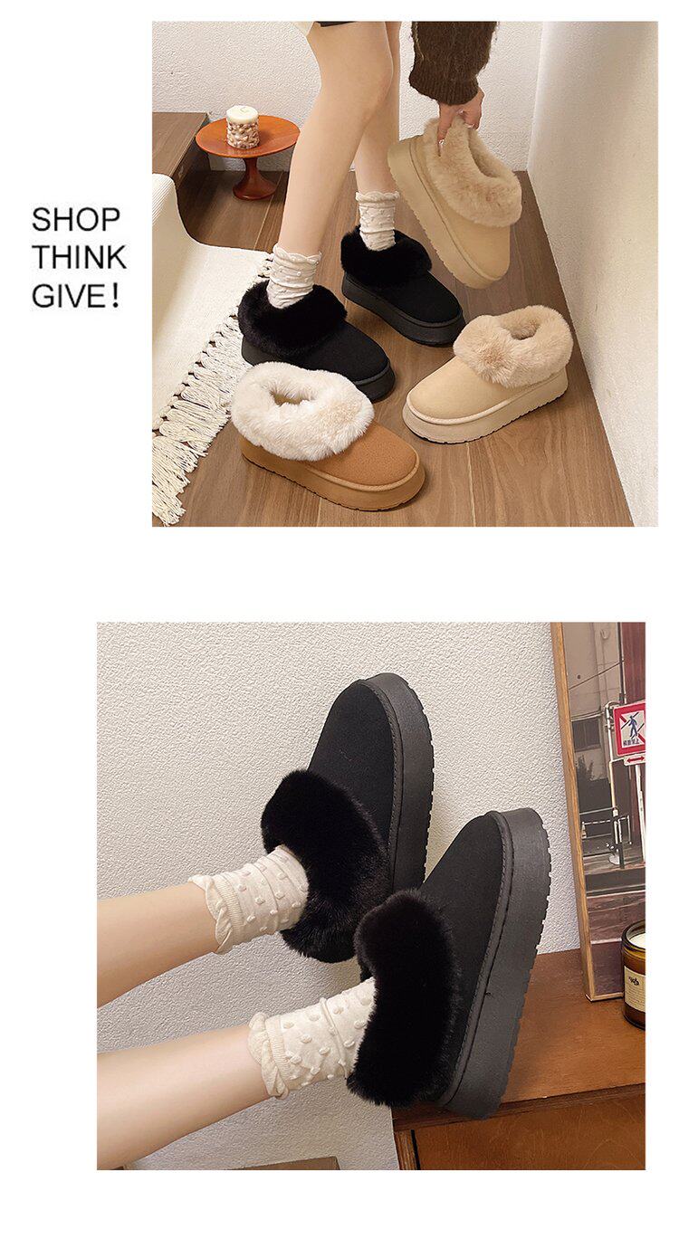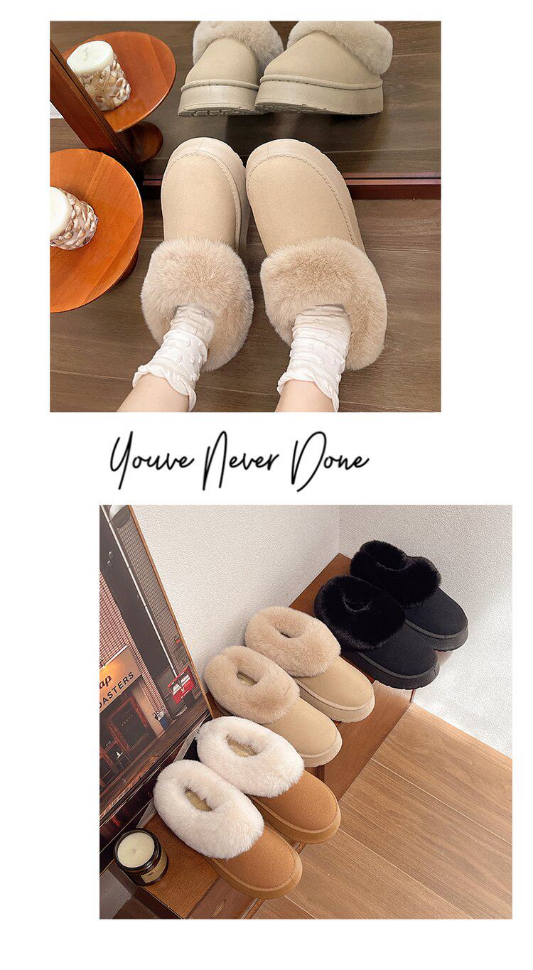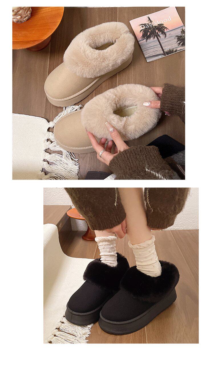 毛毛雪地靴女冬加絨加厚皮毛一體短靴厚底一腳蹬居家保暖麵包棉鞋
