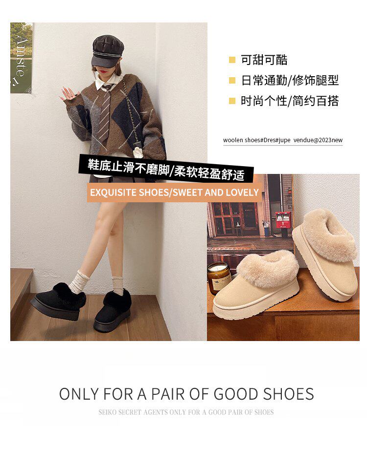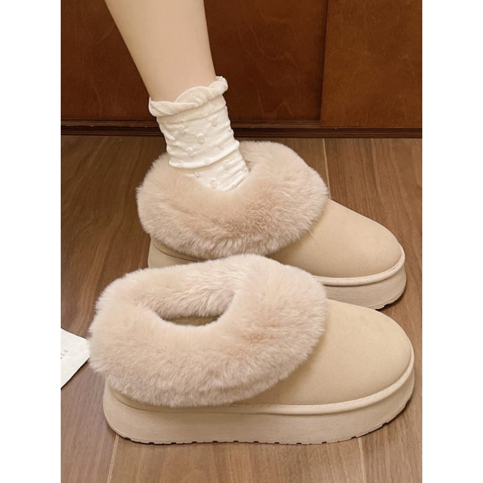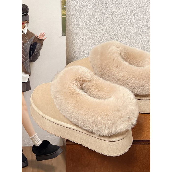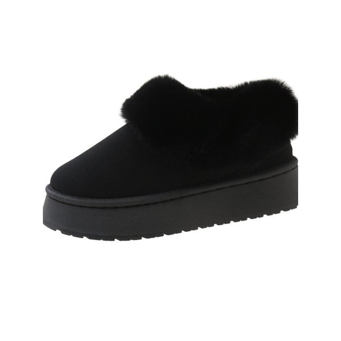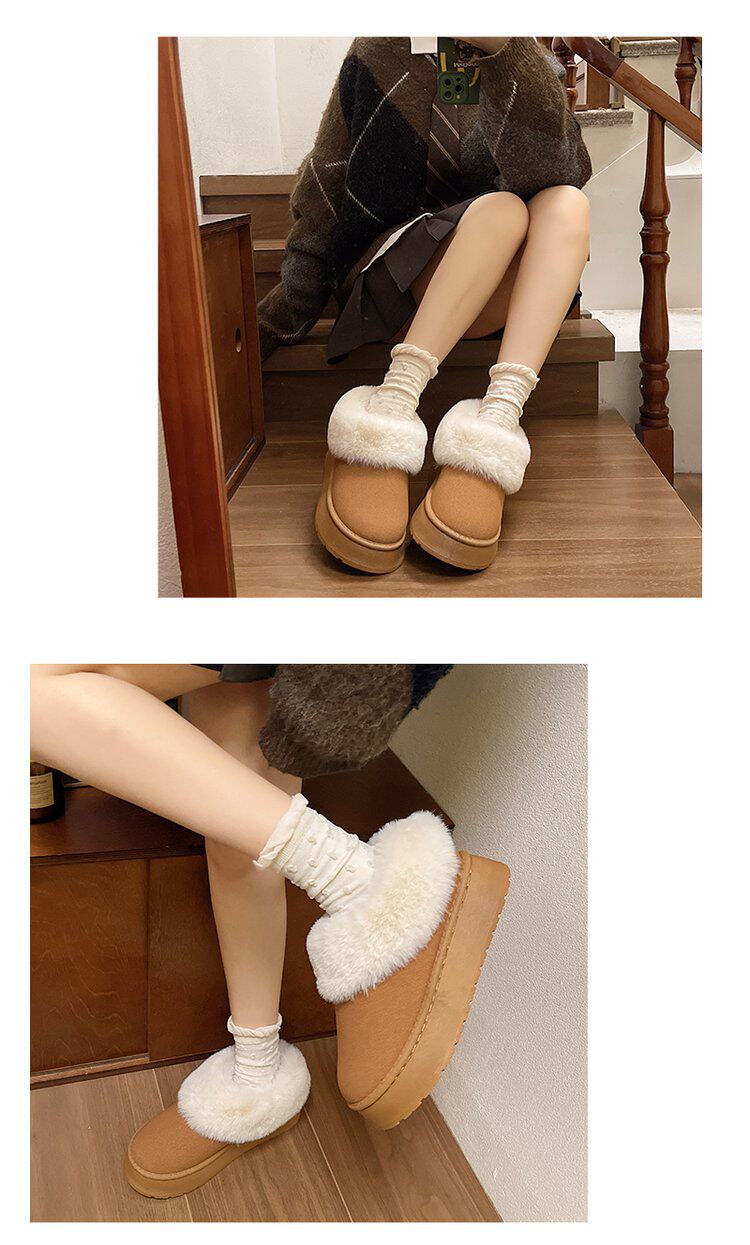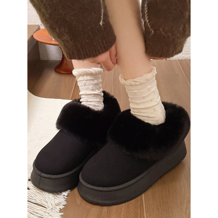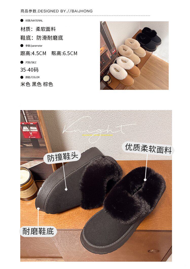 毛毛雪地靴女冬加絨加厚皮毛一體短靴厚底一腳蹬居家保暖麵包棉鞋