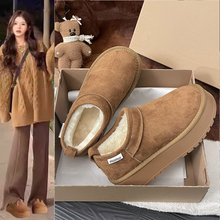 周冬雨同款雪地靴女冬2025新款加絨加厚保暖短靴厚底防滑東北棉鞋