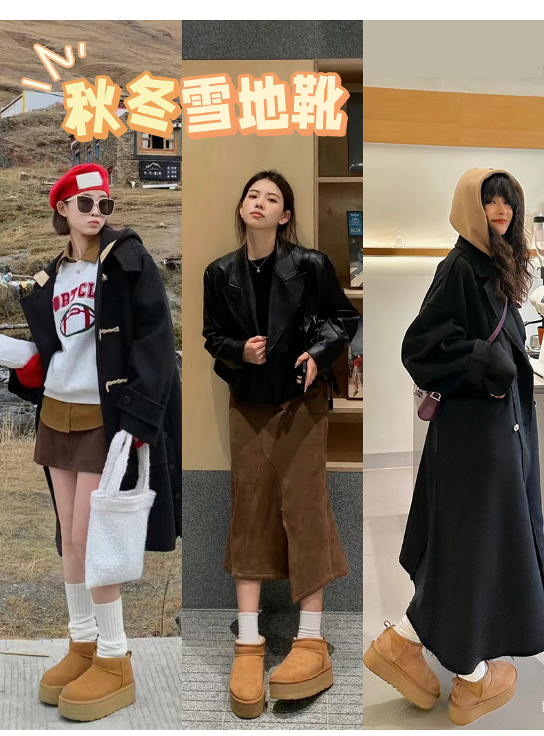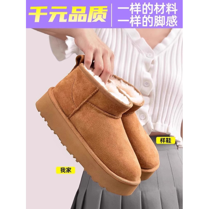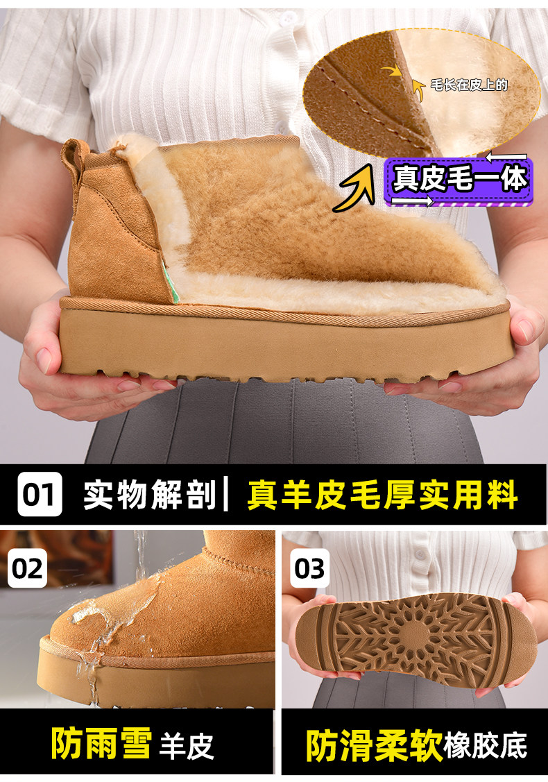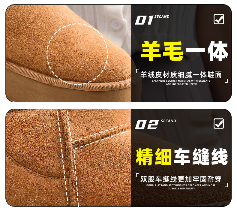咖啡色厚底雪地靴女2026新款冬季加絨加厚桑坡皮毛一體保暖棉鞋男