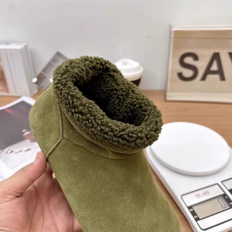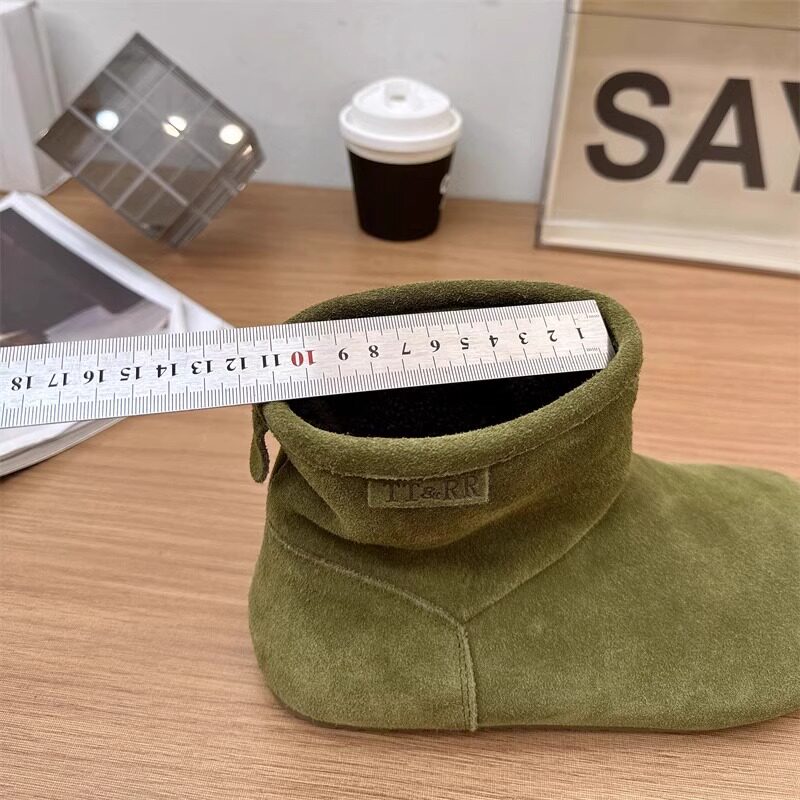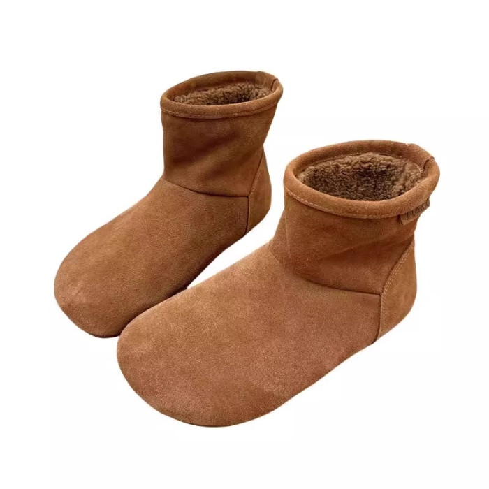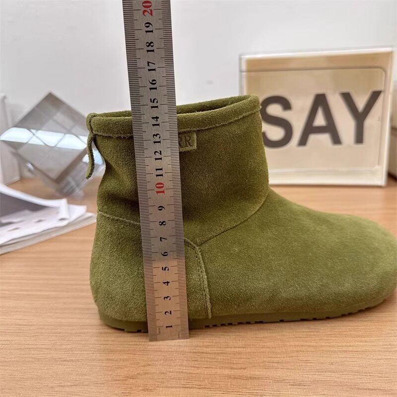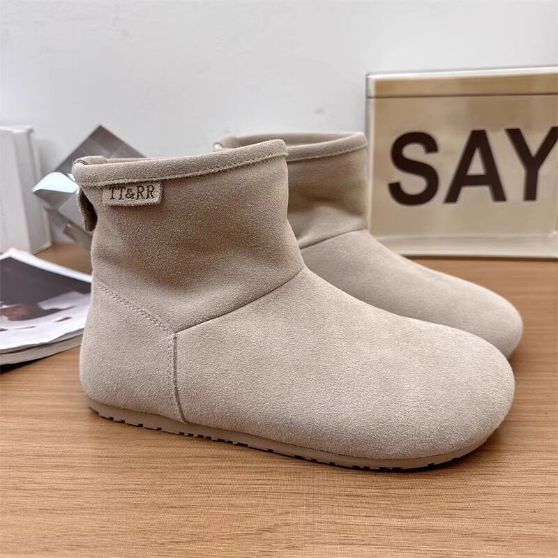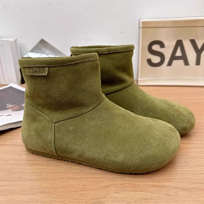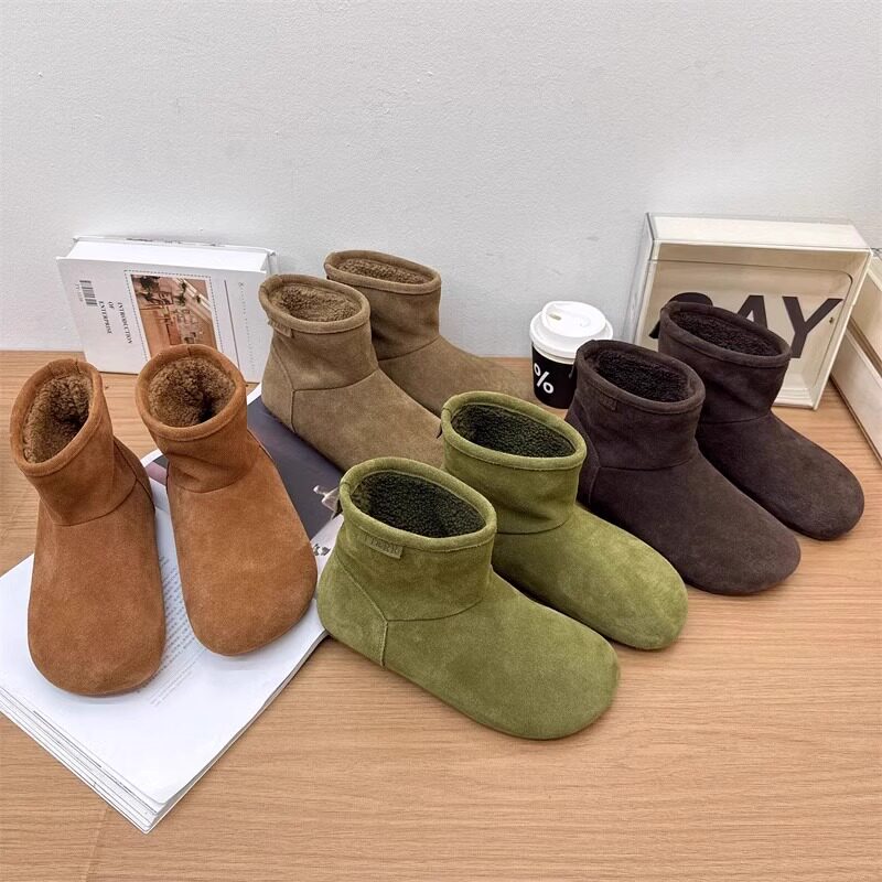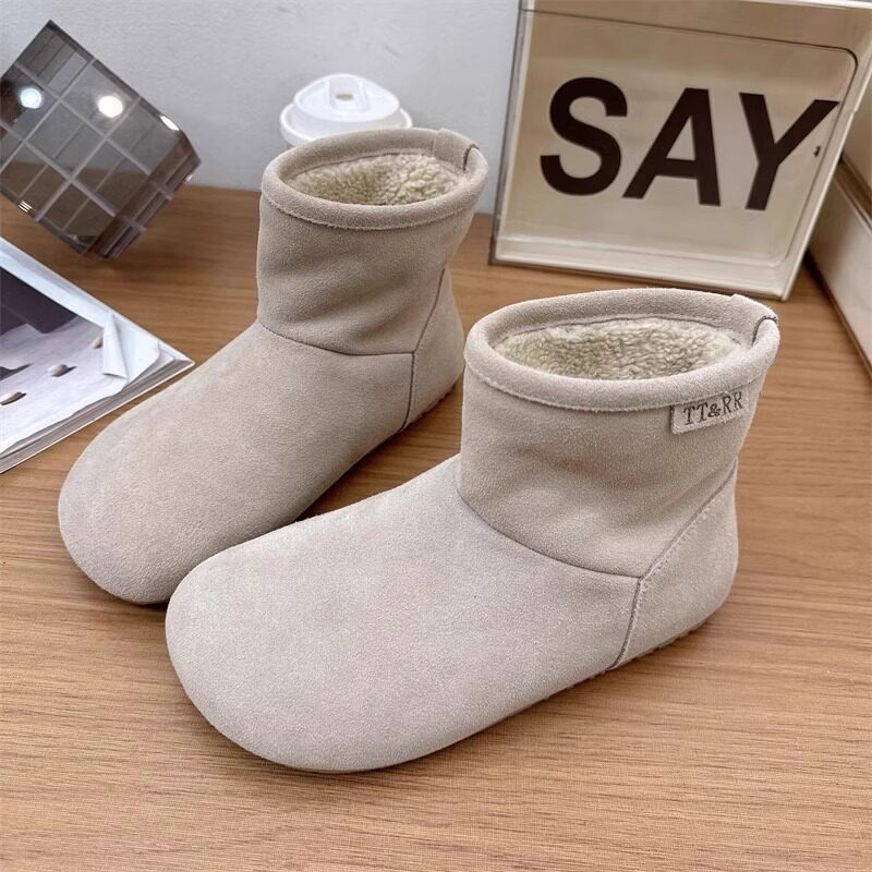 2025冬季新款磨砂真皮平底復古馬丁靴女加絨保暖醜萌大頭雪地棉靴