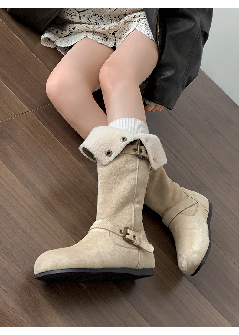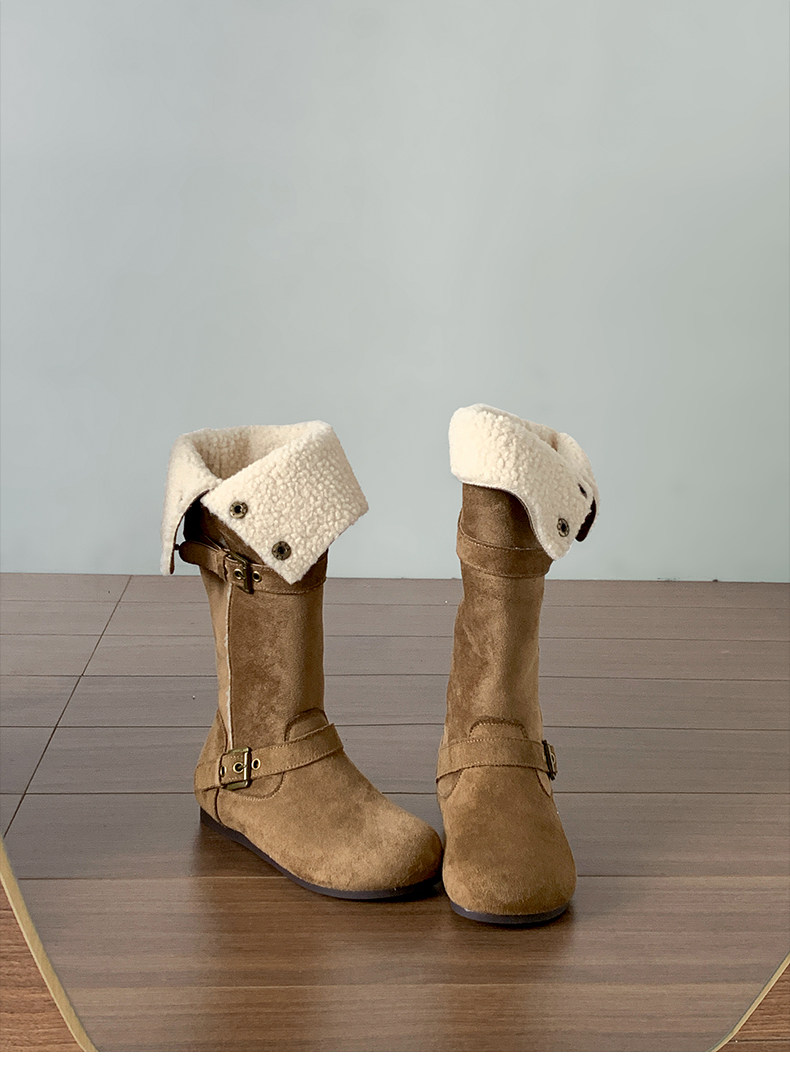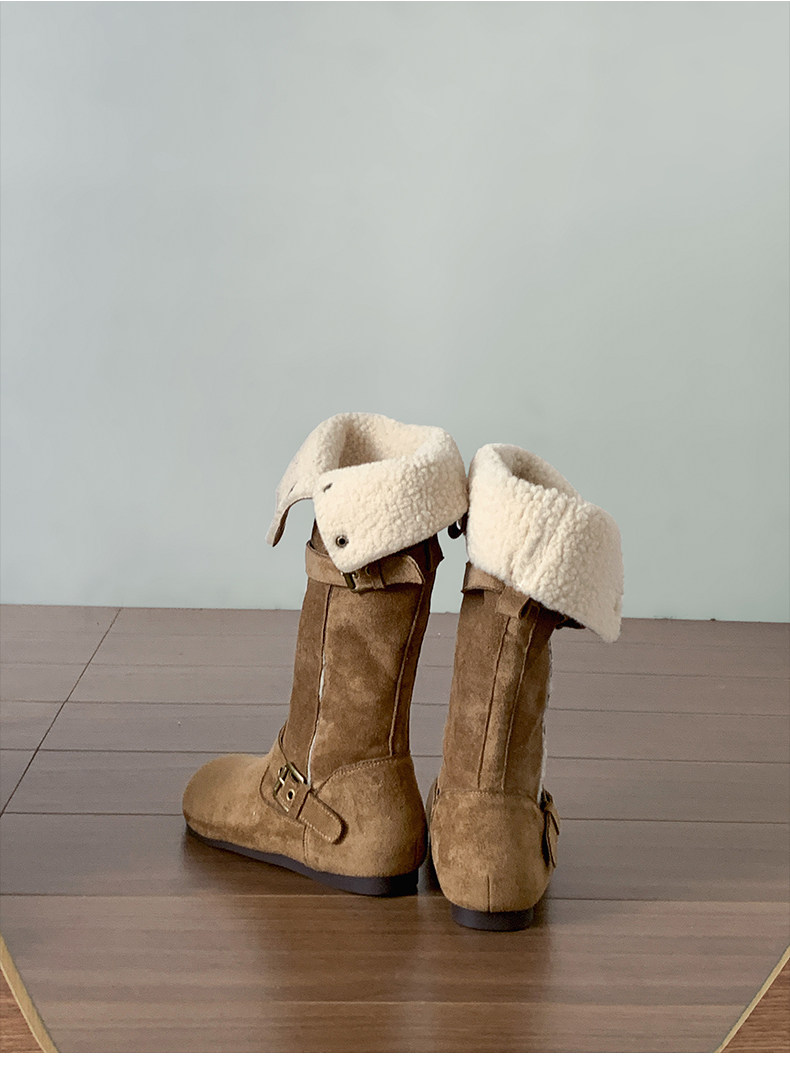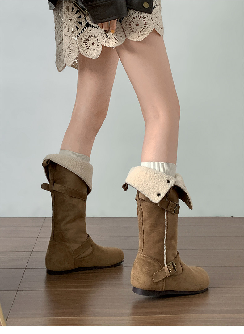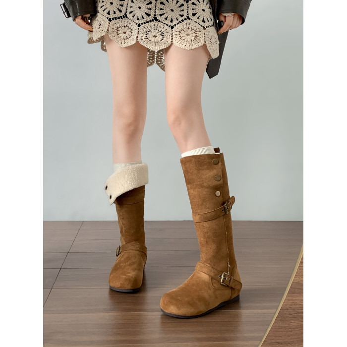 復古棕色厚底靴子女長筒靴2026新款秋冬保暖顯瘦勃肯加絨雪地長靴