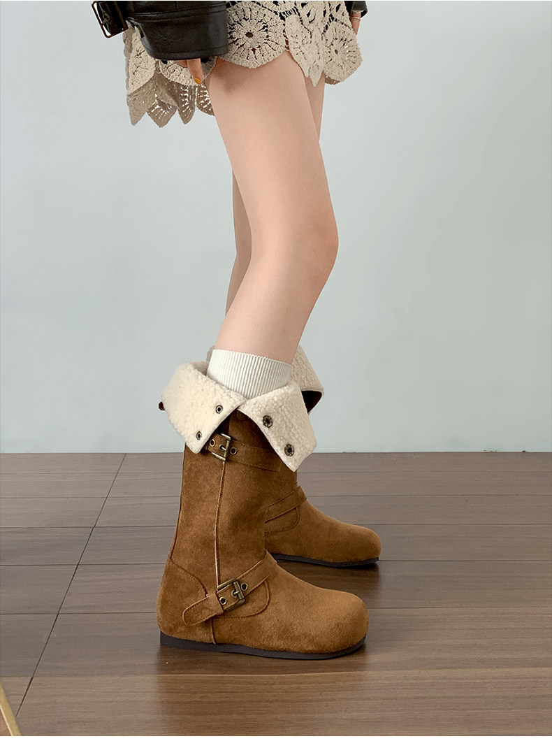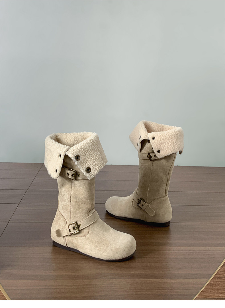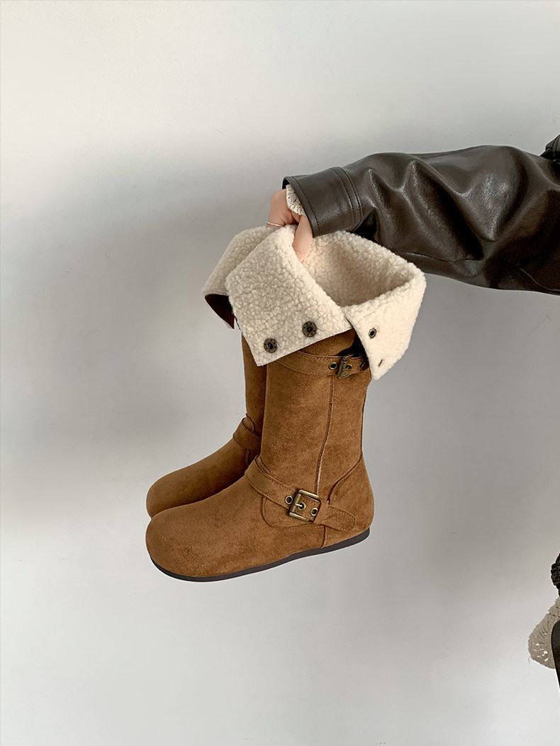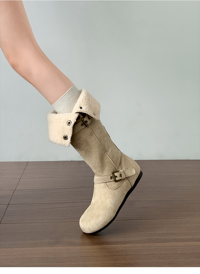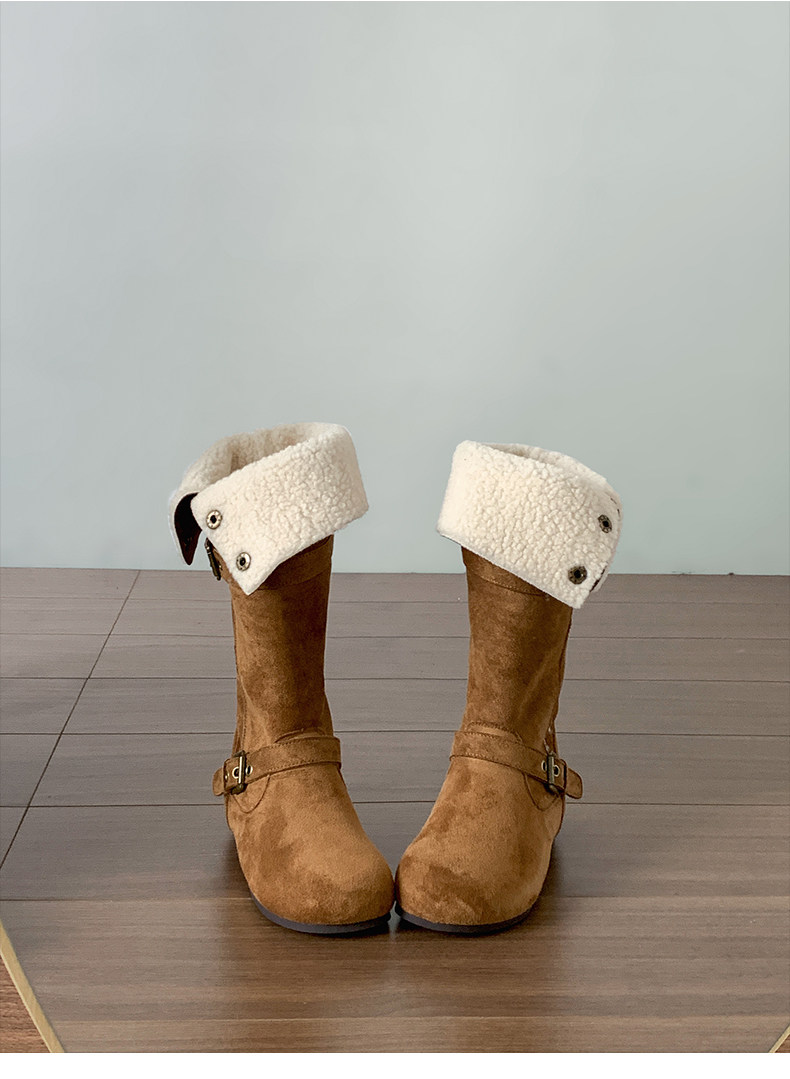 復古棕色厚底靴子女長筒靴2026新款秋冬保暖顯瘦勃肯加絨雪地長靴